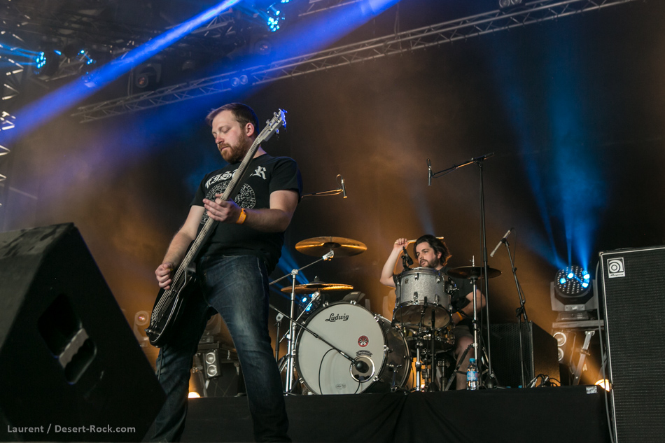 Cocorico ! Les frenchies de Mars Red Sky investissent la scène pour délivrer un set stoner psychédélique typiquement 70’s ! Le trio bordelais est là pour en découdre, et le public venu les applaudir se laisse happer par le déluge sonore qui les emmène planer dans les sphères aériennes. On sent qu’ils sont contents d’être là, et ils gratifient même le public clissonnais d’un nouveau titre.