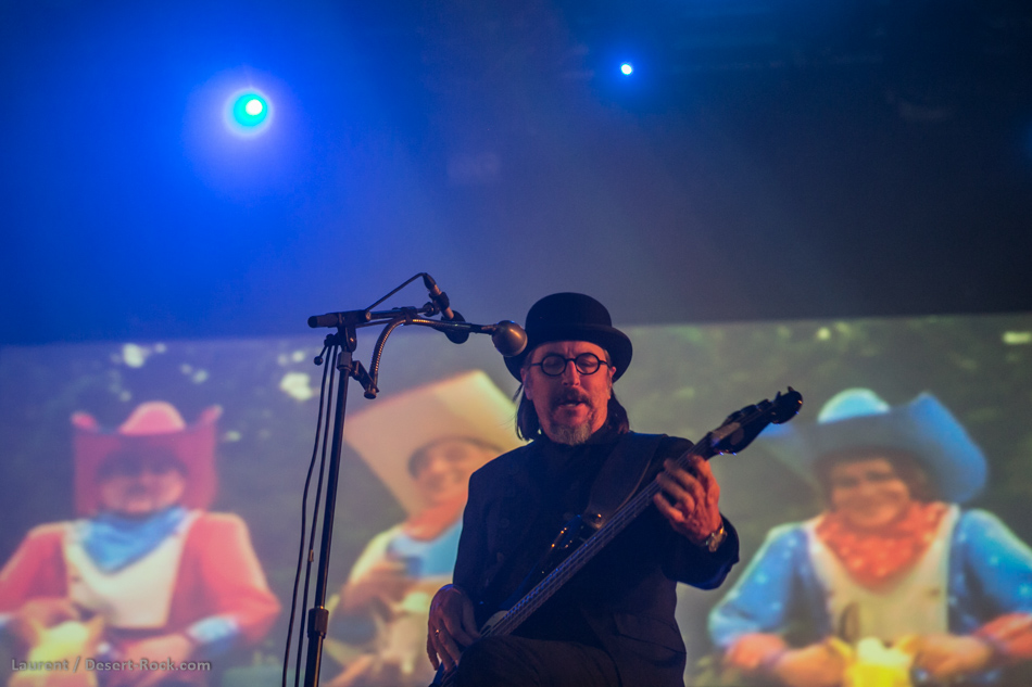 Encore une fois, la Valley se trouve l’hôte d’un « ovni » musical qui ne trouve sa place que sur cette scène propice aux sonorités les plus expérimentales et barrées. Alors évidemment, le stonerhead de base aura passé son chemin et profité de la large pause à rallonge (l’enchaînement avec la brune éthérée qui a précédé le trio californien aura permis aux moins éclectiques de se faire une bonne pause repas tranquille pour commencer la soirée). Cela n’empêchera pas un public de curieux, de musiciens (ça « tricote », sur scène…) ou de nostalgiques de venir assister à la quasi-résurrection du trio déjanté de Les Claypool (même si Primus ne s’est jamais vraiment arrêté de jouer, 90% de leurs prestations se font dans le confort de leur mère patrie). Malheureusement, le concert déroule très vite une arrogance qui nous refroidira un peu (reconnaissons que ça fait une vingtaine d’années qu’on n’a pas vu la formation de San Francisco, et le choc est brutal entre le groupe accessible de joyeux rigolards de l’époque et le trio pompeux et hautain qui se présente devant nous dans la pénombre de lights sur-travaillés). On n’assistera pas à la fin du set, persuadés toutefois que le groupe a délivré une performance à la hauteur de leur talent. Mais ça nous aura laissé froid.