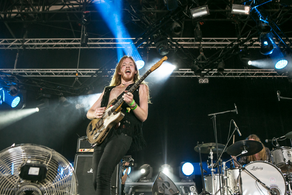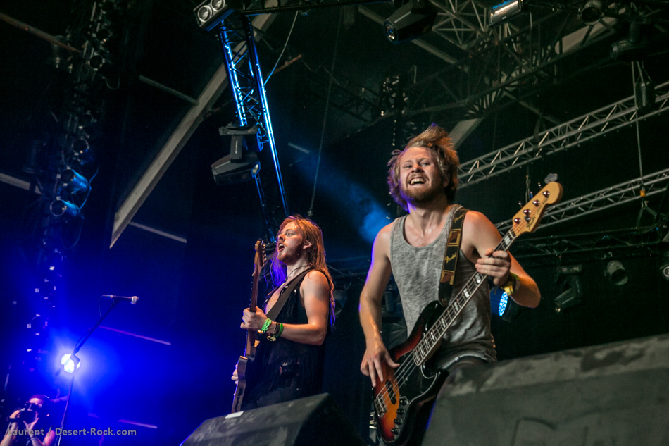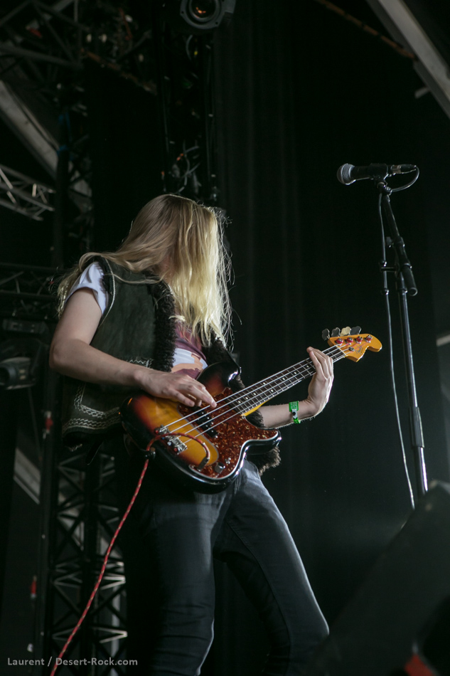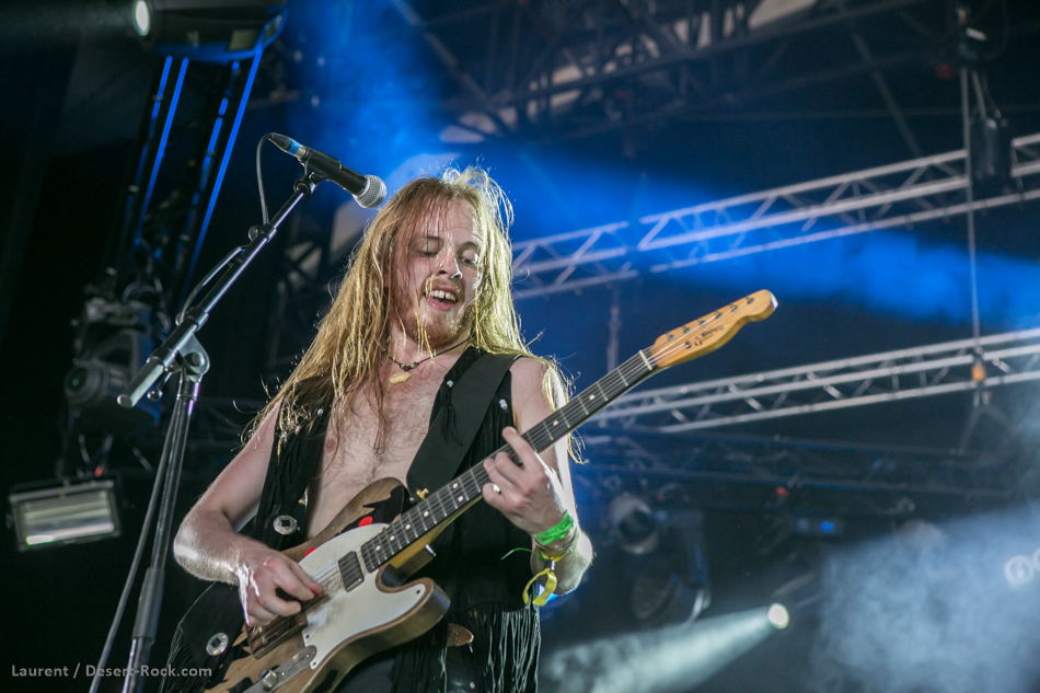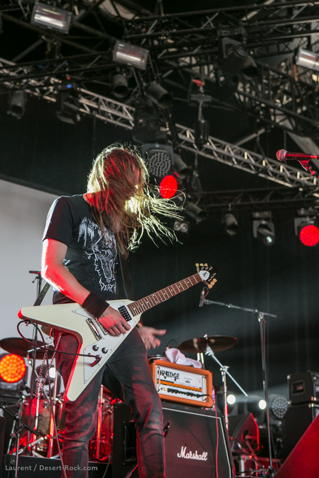 Nous avions déjà naguère à plusieurs des prestations généreuses du combo hardrockisant islandais à plusieurs reprises. Naguère, ils étaient encore des gamins – presque des ados boutonneux – et la confiance dont le trio faisait preuve sur scène flirtait avec l’arrogance. C’est sur un show en plein jour au Freak Valley 2015 que nous avions vu pour la dernière fois les Scandinaves, qui avaient gagné à leur cause de nouveaux fans, notamment lorsque le guitariste avait contourné la scène pour ressortir dans le public afin d’y déployer un généreux solo de gratte. Un tantinet sceptiques quant à l’évolution de la formation nous attendions cette prestation et – bordel ! – elle s’est bonifiée avec le temps comme le bon pif ! La maturité en plus, The Vintage Caravan perpétue son style hérité des meilleures formations de hard (comme on disait jadis en parlant de musique et qu’il ne faut pas confondre avec les émissions taguées ainsi sur le câble qui se consacrent à une autre forme d’expression plus ou moins artistique) et s’est encore amélioré musicalement. Putain ! Ils ont enchanté une Valley blindée (et pas uniquement à cause de l’effet canicule) avec leur côté entertainer certes mais pas que ! Ils nous ont gratifiés de brulots faciles à aborder qui furent propices aux reprises en cœur d’un public qui finit par les ovationner en fin de set juste après un final du bassiste sur les crash barrière parmi les corps dégoulinants et malodorants. On craignait la comparaison suite à la performance envoutante de Vôdûn, mais c’est pour les suivants que la journée s’annonce compliquée vu le niveau déjà atteint à l’heure du repas.