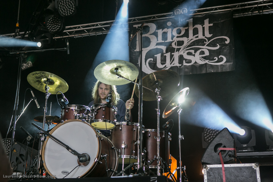 Le public ne s’est pas déplacé massivement pour applaudir les Londoniens de Bright Curse, mais aucun de ceux ayant fait le déplacement ne l‘auront regretté. Le power-trio doom/psychédélique distille une musique aussi lourde que planante qui ravit les aficionados, et le groupe est récompensé par un public plus que réceptif. Le format court (et frustrant) des premiers sets de la journée ne permet pas au trio de développer ses titres à l’envie, mais le choix de la set list (essentiellement basée sur l’efficace dernier album « Before the Shore ») fait mouche, et ce même si le groupe n’a pas forcément choisi les titres les plus « directs » de son répertoire.