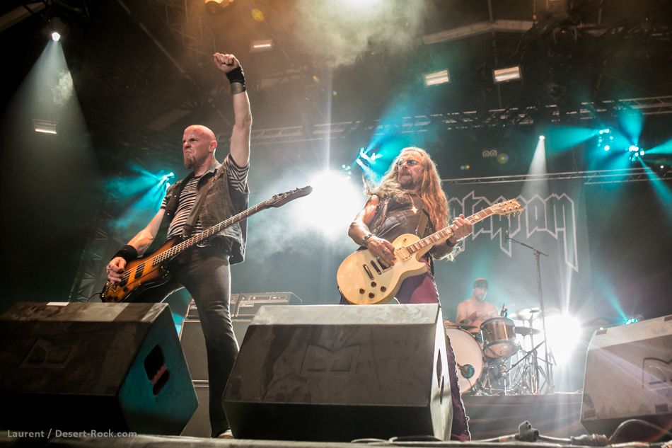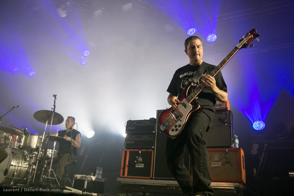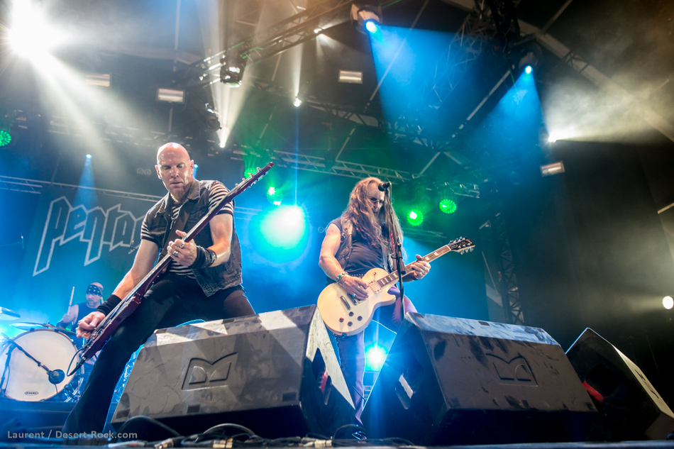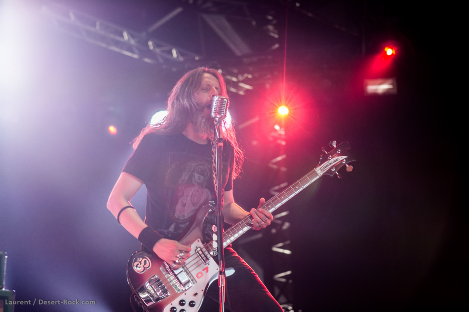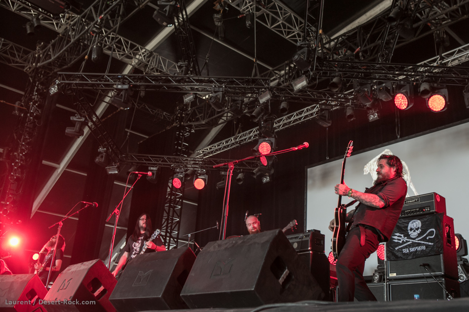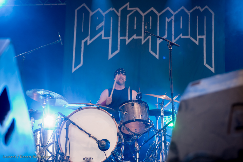Pentagram sera le gros pincement au cœur de la journée. Non que la prestation ne soit mauvaise, loin de là, mais l’absence de Bobby, empêtré dans ses habituels déboires narco-judiciaires est comme un coup de poignard aux entrailles [ndlr : pour ceux qui auraient raté l’information, Bobby Liebling a été arrêté il y a peu pour de sombres raisons, et le groupe a décidé de continuer en trio sans son frontman]. Le concert est habilement exécuté, avec notamment un Victor Griffin en frontman toujours impeccable à la six-cordes, et pas ridicule derrière le micro, mais aussi un Greg Turley qui prend sa part du job et occupe bien la scène. Le choix de la set list est à la fois impeccable et sans aucune surprise, ne piochant jamais loin du « best of » traditionnel du groupe (propice à quelques perles comme cette excellente version de « 20 Buck Spin » chargée en soli). Mais malgré tout, voilà, il manque la présence surréaliste de ce Garcimore halluciné. On croise le tourneur français du groupe, qui confirme : « C’est la dernière fois. Bobby va probablement mourir en prison. »