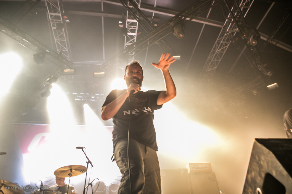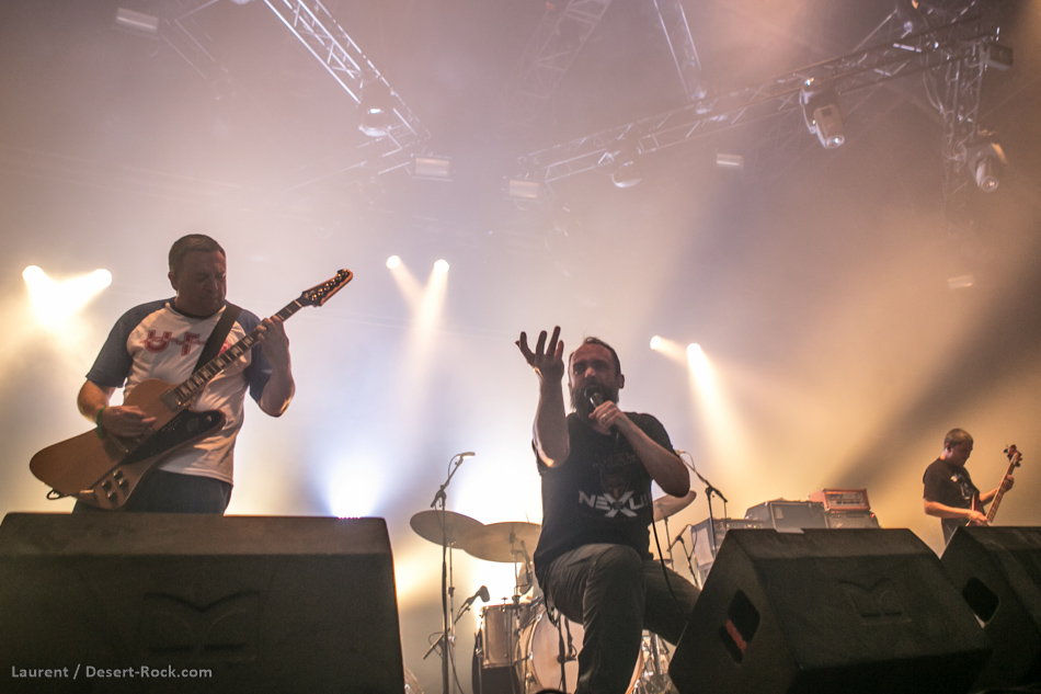 La présence de Clutch en headliner de la Valley est aussi peu surprenante qu’elle est légitime. Déjà il y a trois ans, la « machine » Clutch déroulait des concerts tous plus impressionnants d’efficacité, s’appuyant sur un excellent « Earth Rocker » à l’époque (et, accessoirement, presque 25 années de live dans les jambes, l’air de rien). Bref, c’est un peu l’assurance tous risques. Et de fait, l’heure de concert qui suit n’étonnera personne a priori, sauf ceux qui découvrent le quatuor U.S. en live : Clutch reste une redoutable machine de guerre en live, d’une efficacité quasiment à toute épreuve. Musiciens impeccables de maîtrise et de technique, qui s’entendent parfaitement, un frontman de plus en plus dynamique (Fallon assume complètement et efficacement son job de frontman), le seul point discutable sur un concert de Clutch tient au choix de la set list, en particulier sur un set court d’une heure, générant encore plus son lot de sacrifices. Faire la fine bouche en regrettant le peu d’incursions dans le back catalogue « ancien » du combo serait un combat d’arrière-garde : le groupe ne renie pas son passé, mais s’appuie (et c’est le cas depuis plusieurs années, donc pas la peine de feindre la surprise ou la déception) sur un set de titres plus récents à l’efficacité live (re)connue pour constituer le squelette de ses concerts. On apprécie toujours les vieilles pépites comme « Profits of Doom », « The Mob Goes Wild » ou ce rutilant « Burning Beard » en début de set. Par ailleurs, le groupe enquille les titres sans tergiverser, bien décidé à titrer le plus riche profit de ce slot de 60 minutes dans tous les cas frustrant ; pas de place à la parlotte ou la branlette de manches de guitares… On est donc un peu frustrés de voir débarquer le classique titre de conclusion « Electric Worry », et du coup assez contents de voir que les traditions évoluent puisqu’ils y associent un « X-Ray visions » surprise pour vraiment appuyer leur baroud d’honneur. Bref, Clutch a délivré une prestation de maestro, exactement au niveau de maîtrise et d’efficacité que l’on pouvait attendre. Prise de risque modérée, certes, mais toujours une machine live rutilante, impressionnante. Et dire qu’ils en ont encore sous la pédale…
