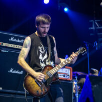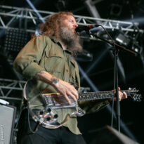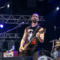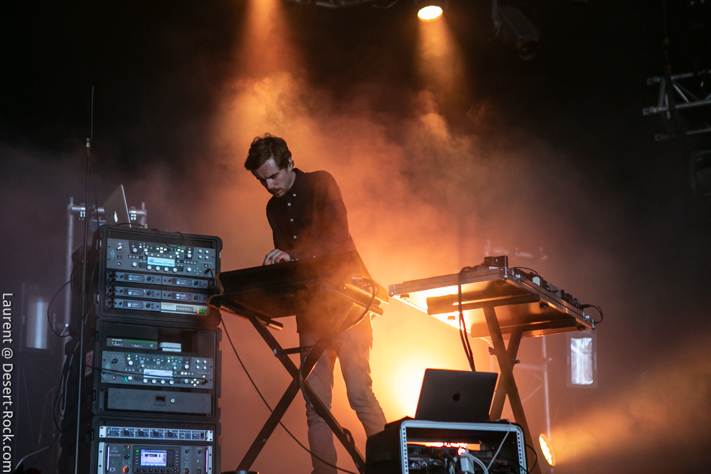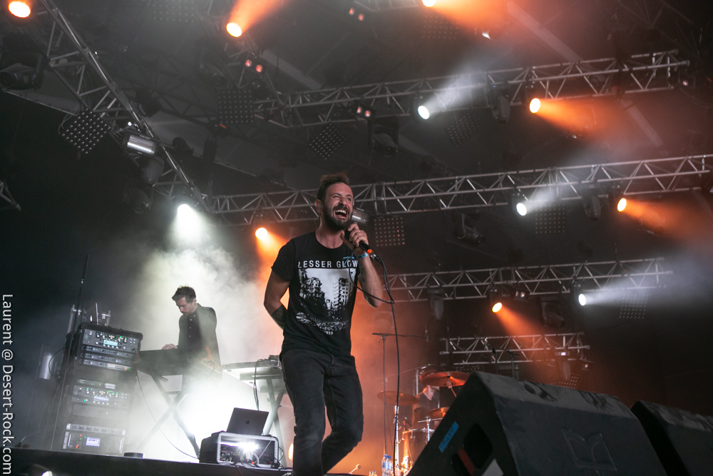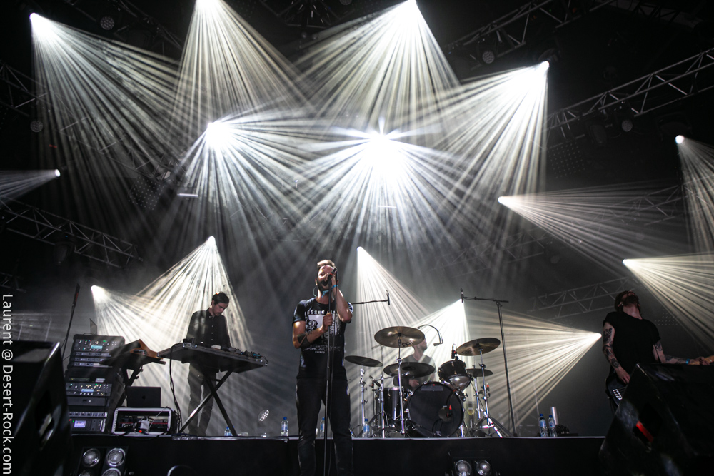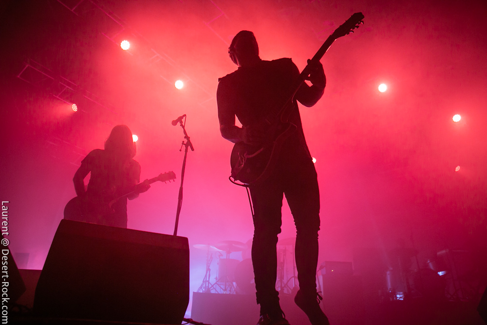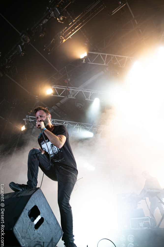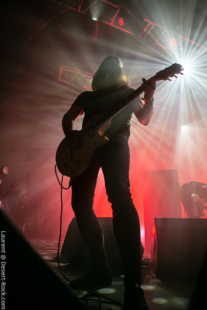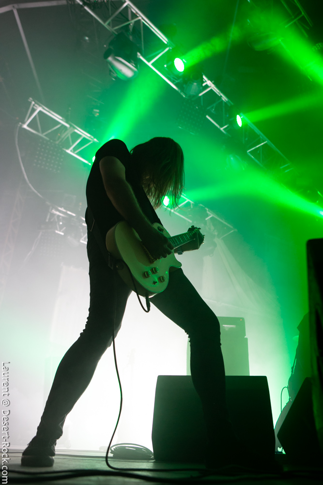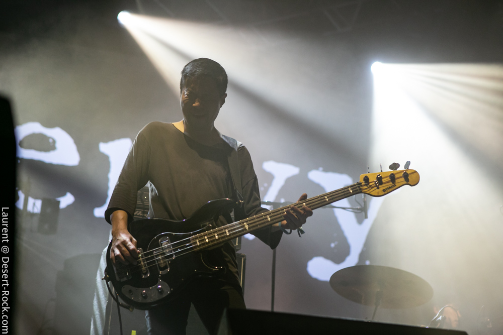 Début de deuxième jour pimenté avec Coilguns et son mélange de Post-Core, Sludge aux influences brutales. Ça décrasse les cages à miel et réveille en un rien de temps. Alors oui c’est brutal, mais le quartet Suisse n’aura pas manqué d’attention pour son public en commençant avec une distribution de croissants. On sent bien que pour eux, c’est la chance de leur vie d’être convié sur une scène si reconnue et le chanteur Louis d’expliquer : « on joue devant des personnes différentes dans des petites salles toute l’année et si j’ai bien compris ici c’est toutes ces mêmes personnes réunies… ». Sauts sur scène, roulades épileptiques, ce dernier va jusqu’à finir un morceau en slammant jusqu’au milieu de la fosse. Si le style n’est pas toujours des plus Desert-Rock-compatible cette ouverture prédit une journée riche en émotions comme l’annoncent les câlins faits au public et le jet de CD dans la fosse en fin de set. Un samedi en enfer commence.