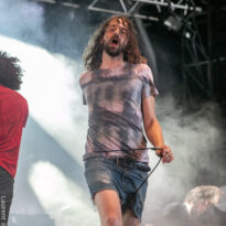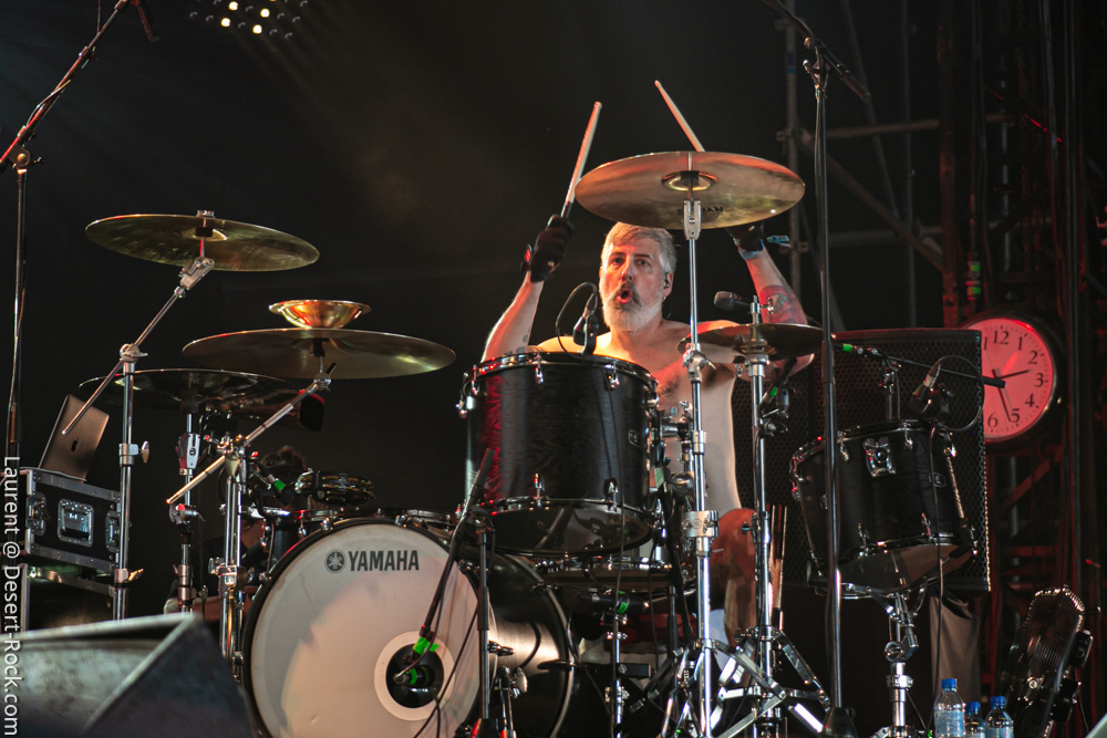Figure historique d’un genre quelque peu daté qui a évolué naguère dans le giron de la galaxie Isis, la gang du Massachusetts se radine pour l’apéro, mais nombreux sont les festivaliers à tirer leurs binouzes ailleurs. Visiblement le show est assez proche que celui que déploya Unsane en ces lieux il y a quelques années. Les avis du public divergent : certains se cassent alors que d’autres entament les pas de danse de la tribu des bourrins. Les assauts, pourtant énergiques, de ces vétérans laisseront une sensation étrange dans les esprits de vos dépêchés sur place. Ce n’était pourtant pas inintéressant ; le groupe y a mis beaucoup du sien en investissant bien le bords de scène, mais soyons clair : nous n’y avons pas trouvé notre compte.