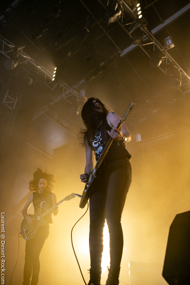 Rendez-vous en terres moins connues puisque c’est à La Temple que la formation hollandaise se produisait. Ça aurait pu être pire : on aurait pu être sous le soleil ! Le spectre musical couvert par le groupe s’approche nettement plus de notre ligne rédactionnelle que celui pratiqué précédemment à La Valley par Will Haven. Le quintette envoie du bois d’entrée de jeu avec “ The Alpha” et la tente, bien pleine, écoute religieusement les bataves dérouler devant les croix inversées du lieu. Les plans aériens sont entrecoupés par des attaques punchy bien senties. La frontwoman de la bande, Ryanne, est exceptionnelle : elle capte l’auditeur en variant de chants type mélopées (ah la Hollande…) à des envolées lyriques la faisant passer pour la version féminine du gars derrière le micro de Type-O-Negative. Cette prestation fleurant bon le doom et le psychédélisme d’autrefois a contribué à agrémenter notre seconde journée en Loire-Atlantique.