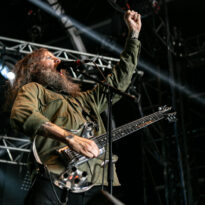 On se lèche les babines de voir SUMAC sur les planches, le groupe étant pour le moins rare sur les scènes européennes, et a fortiori françaises. Ce petit événement en soi réjouit mollement une Valley qui décidément aujourd’hui peine à faire le plein. Gageons que les fans de post-rock auront préféré aller se faire cramer sous le soleil incandescent devant la main stage (!)… Les présents sont en revanche bien motivés à la perspective de voir le père Turner éructer et faire rugir sa six-cordes. Pour qui n’a pas vu le frontman depuis longtemps, imaginez-vous une sorte de post-gourou énervé à la pilosité grisonnante débridée, growlant comme un damné et headbanguant comme un dératé sur ses morceaux complètement déstructurés. En gros. Le bonhomme lance calmement le récent « Attis’ Blade » en intro puis déroule son set de 40 minutes avec rage et tension, emmenant son post-metal nerveux sur des terrains noise parfois. L’énergie déployée convainc un public plutôt conciliant mais un peu apathique (il fait chauuuuud… et on vient de se cogner Mantar !).