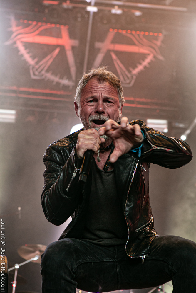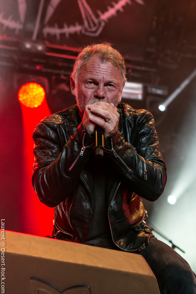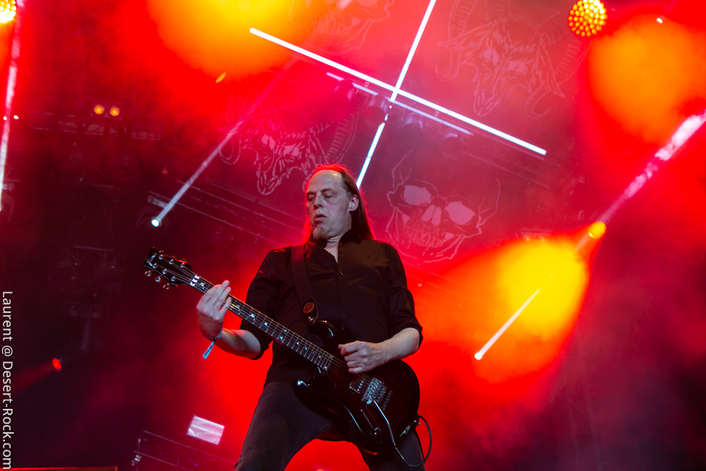 Une nouvelle bouffée d’air frais en dehors des volutes enfumées de la Valley pour l’Altar (ta gueule à la récré) avec les rois du doom Candlemass, en plein renouveau de notoriété depuis qu’ils ont été brossés dans le sens du poil de barbe par Ghost. Johan Långvist, chanteur originel (mais éphémère) est de retour, et malgré son look à vendre des bateaux de plaisance, le bonhomme a gardé de superbes restes. Affuté et en voix (même s’il ne va bien sûr plus chercher les aigus d’antan), Långvist prend l’audience en main et si la set list n’offre aucune surprise (elle est sensiblement là même que sur toutes leurs dates récentes, format festival), l’exécution parfaite et la jovialité ambiante font de ce concert un moment généreux dont on sort ravi. Et puis brailler « Bewitched », « Demon’s Gate » ou « Solitude » entre copains reste une activité qui réjouirait quiconque de normalement (dé)construit.