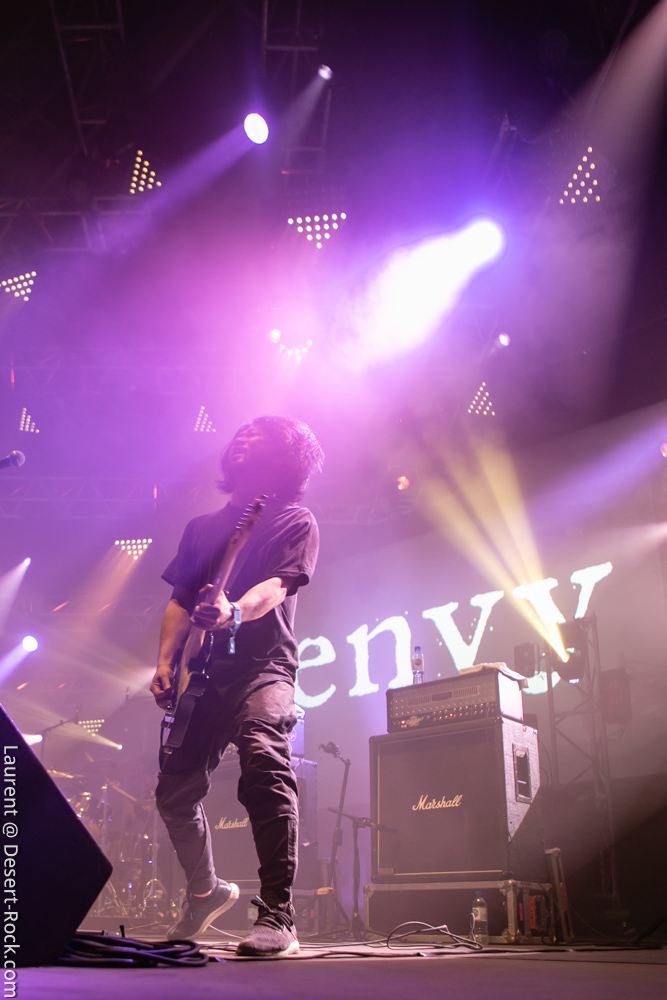 Le sextet Japonais de Envy a cette particularité de n’avoir que des textes dans sa langue maternelle. Alors même si dans le Screamo on n’entend pas toujours tout, il faut bien avouer que la langue se prête parfaitement tant aux passages criards qu’aux longs moments atmosphériques pur post rock. Les nippons ont réuni sous la Valley la fine fleur des fans de post metal à en juger par la livrée des festivaliers présents. Ils leurs offrent une musique chargée d’émotions et de force. Les mouchoirs sont de sortie et beaucoup de festivaliers laissent couler leurs larmes, emportés par la profondeur émotionnelle de la musique offerte cette année, bien plus prégnante que lors de leur dernier passage. L’Attitude sur scène de Envy est énergique et sans exubérance ne sombrant jamais dans le plaintif et apportant justement sa touche Screamo toujours juste à temps après des passages de chant où l’interprète discute presque avec son public, gestuelle aérienne et habitée à l’appui. Avouons-le, Envy n’est pas de notre bord mais il mérite la palme d’interprétation dans la catégorie Post, et en tous les cas le prix du concert-surprise du week-end, l’un des meilleurs et des plus impressionnants sous la Valley.
