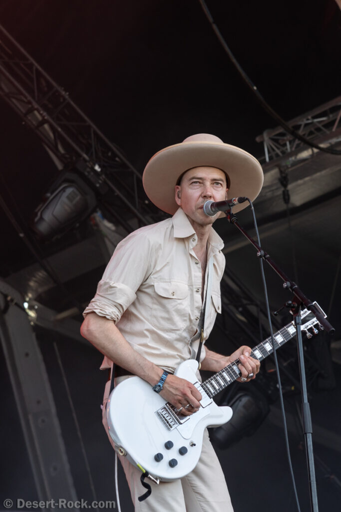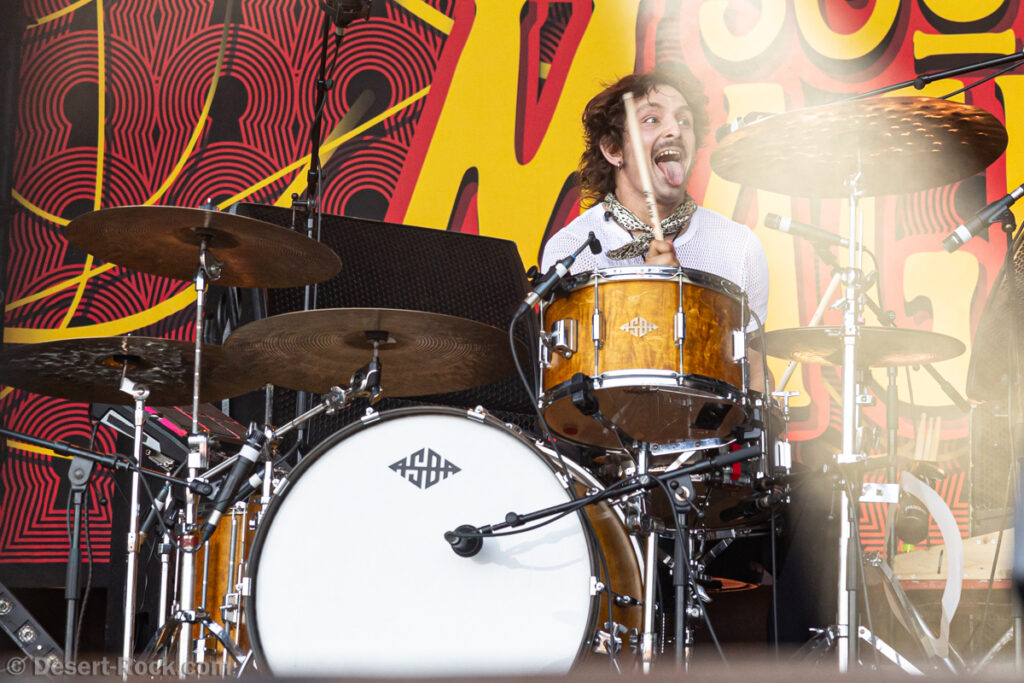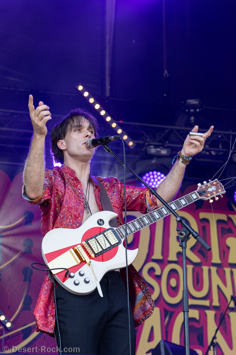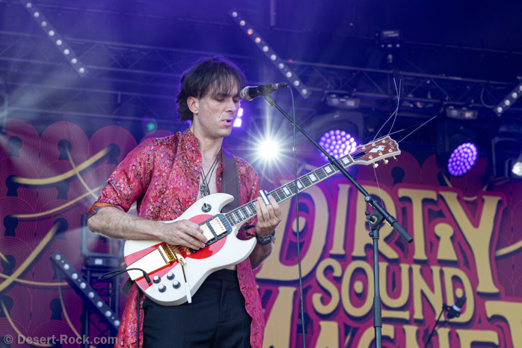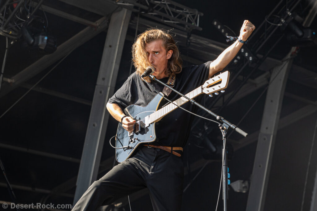Premier constat : cette chaleur rend toute chose difficile, en particulier le fait de se tenir face à la Valley avec le soleil qui cogne sans zone d’ombre nulle part. Bravo au groupe dans ce contexte, en milieu de journée, au pic du soleil, d’avoir déplacé un public loin d’être ridicule… Il faut dire que leur style musical et leur enthousiasme sont probablement la recette parfaite à cette heure de la journée. Le trio helvète a établi une set list intelligente, piochant du côté le plus énergique de sa discographie, pour proposer une collection de petites pépites stoner psych au groove décadent. Tandis que la paire rythmique de la formation Marco Mottolini /Maxime Cosandey tisse une trame rythmico-mélodique irrésistible, le fantasque guitariste/chanteur Stavros, outillé d’un énorme pedal board, empile les soli et leads flamboyants pour élever un peu plus chaque titre. Il serait plus que temps de voir ce groupe atteindre le niveau de notoriété qu’il mérite.