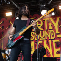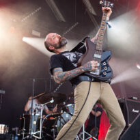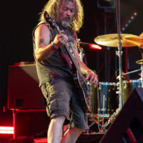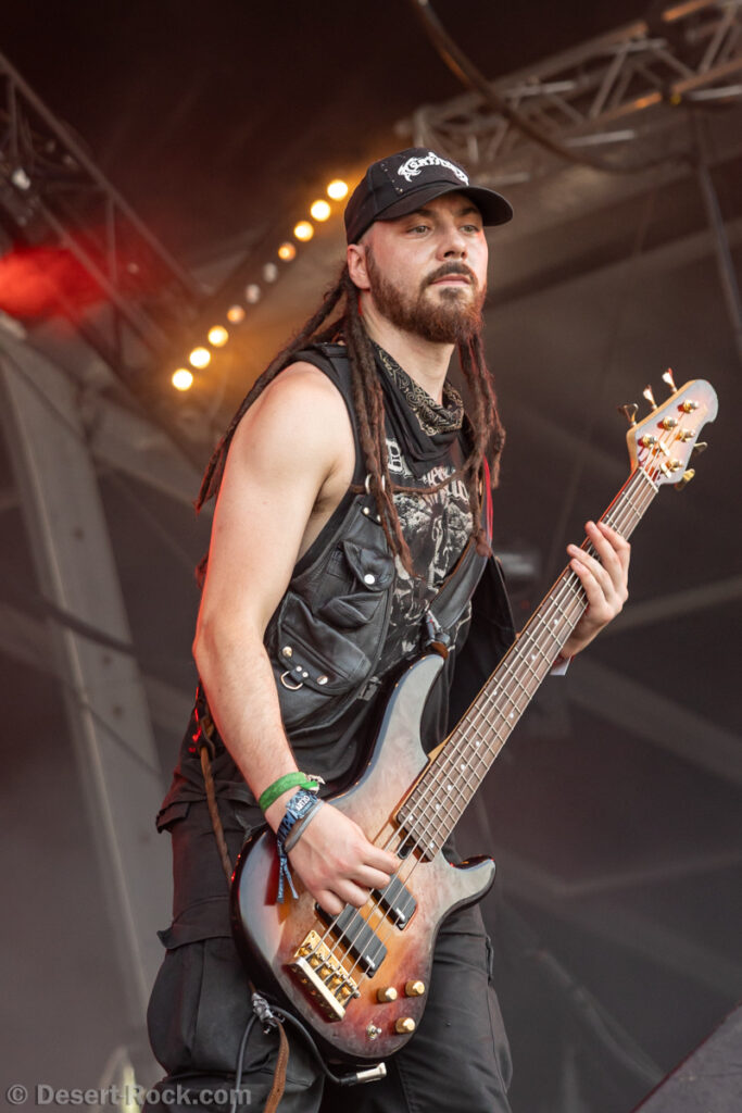 Si l’on devait identifier la petite friandise du jour, Sandrider pourrait clairement postuler. Le trio américain ne bénéficie pas d’une notoriété à la hauteur de son talent dans nos contrées, et la prestation du jour vient le confirmer avec éloquence. N’ayant pas hérité du créneau le plus facile (on vous a déjà parlé de la chaleur écrasante qui terrasse le public de la Valley aujourd’hui ?…), la formation de Seattle se jette dans son set avec énergie et envie. Leur style musical est difficile à faire rentrer dans une case ; on pense à un grunge fuzzé à haute énergie, où se mêlent influences sludgy, prog… Une sorte de Mastodon grunge ? Toujours est-il que derrière cette maladroite et trompeuse labellisation, le set affiche une belle cohérence. Jon Weisnewski, souriant frontman de la formation, empile les riffs colossaux les uns sur les autres, tout en proposant des lignes de chant mi-gueulard / mi-chant clair (enfin « clair », faut le dire vite…), souvent sur la brèche. Derrière lui ça ne chôme pas, avec une section rythmique qui ne peine pas à structurer certaines compos généralement moins basiques qu’il n’y paraît. Il est aussi là, le talent du groupe : interpréter en mode « bas du front » des morceaux souvent plutôt audacieux. Le public, s’il n’est pas d’une densité incroyable (aucun groupe ne peut se targuer d’avoir fait le plein cet après-midi), apprécie, headbanguant à l’occasion ou tendant moults points rageurs au gré des nombreux breaks heavy. Un set enthousiasmant et solide qui, s’il ne trouvera peut-être pas sa place dans les top du Hellfest 2025, aura montré le potentiel live du groupe, qui devrait, dans de meilleures conditions, s’avérer d’une belle efficacité.