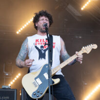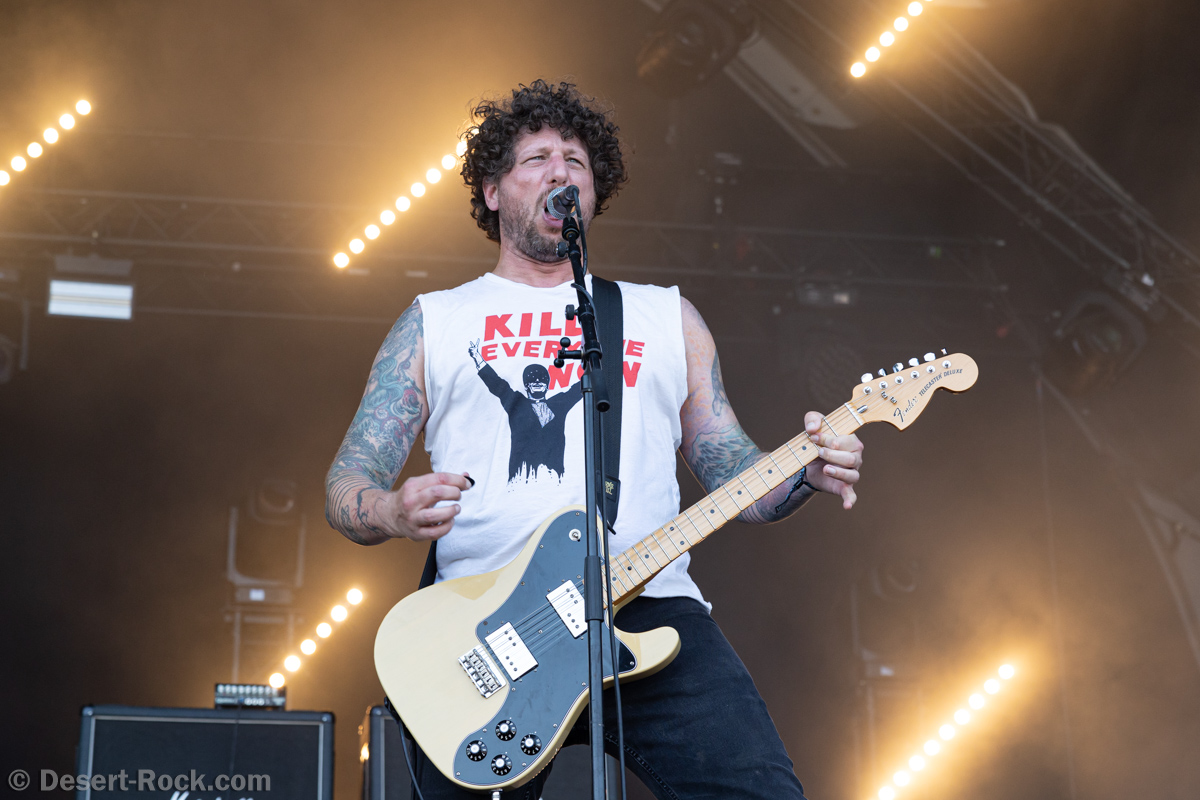 « Sorry about Masters of Reality, that would have been fucking awesome »… C’est par ces mots que Justin Greaves rappellera le contexte de la présence de son groupe sur scène ce soir, qui remplace finalement la formation culte de Chris Goss, qui s’est fait porter pâle. Le combo britannique de post-rock a ses détracteurs, mais il a aussi ses fans qui sont comprimés contre les crash alors que le septuor se pointe sur La Valley, transformée en propagatrice d’idéologies politiques : les amplis sont ornés de symboles ou messages (drapeau palestinien, support aux saboteurs de la chasse…), les t-shirts affirmés (libération animale) et le keffieh porté sur le visage. Le ton est donné et la formation anglaise à géométrie variable affirme ses engagements, ses convictions, depuis ses débuts. Le set du jour démarre de manière très aérienne et la torpeur ambiante n’est pas propice à déchaîner le pit de la Valley. A mi-set, le groupe envoie son titre palyndrome « 444 » qui agite les aficionados et il faudra attendre le tube certifié « Rise Up And Fight » pour secouer un peu le public qui sera généreux en applaudissements au terme du concert, tandis que le leader criera « Fuck Fascism » au terme de « We Forgotten Who We Are ».