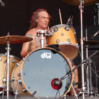Le set des Montréalais prend une dimension particulière tandis que l’après-midi touche à sa fin et qu’il prend place face à un public qui vient de se taper plusieurs heures sous un soleil de plomb ! Pour notre part, nous attendons avec intérêt cette prestation, qui fait écho à leur dernière venue au Hellfest en 2018, un concert que tout le monde considère unanimement comme raté. Depuis, le groupe a tourné de manière sporadique, évitant quasi-systématiquement le territoire francophone… Pour beaucoup dans le public, donc, il s’agit d’un retour aux affaires pour le trio canadien. « Trio », car le groupe est revenu à sa formule basique, avec une formation recentrée autour de Vince, désormais seul membre fondateur à bord après le départ il y a quelques années du bassiste Vyk. Ce dernier a été remplacé par Mike, tandis que Shawn à la batterie est déjà présent depuis quelques années au sein du groupe. Point de surprise au rendez-vous : Vincent mène la barque Dopethrone en tant que frontman, il gesticule (un peu), grimace (beaucoup), éructe ses vocaux, et gratte des accords et riffs bordéliques. Le chaos ambiant qui émane généralement des sets de Dopethrone est un peu atténué aujourd’hui par un son (de guitare en particulier) presque « trop » bon, propre, et manquant de cet aspect approximatif et glaireux endémique au combo (on s’était habitué à ce que chaque compo ne soit identifiable que quelques secondes après son démarrage, quand elle s’extirpe un peu de ce mix brouillon…). Au-delà de quelques menus tracas (peau de batterie cassée par ce bourrin de Shawn, qui l’offrira au public à la fin), le set se déroule sans aléa, autour d’une sélection de titres couvrant toute leur carrière (seul le très bon « Life Kills You » représente leur dernière galette Broke Sabbath), offerts à un public satisfait, qui headbangue de bon cœur dans les premiers rangs. Un bon set, sans relief, mais efficace.