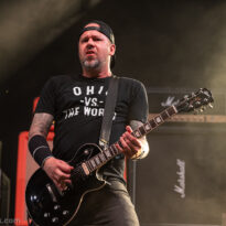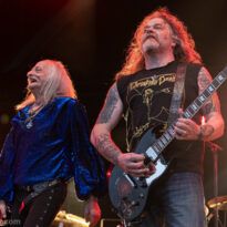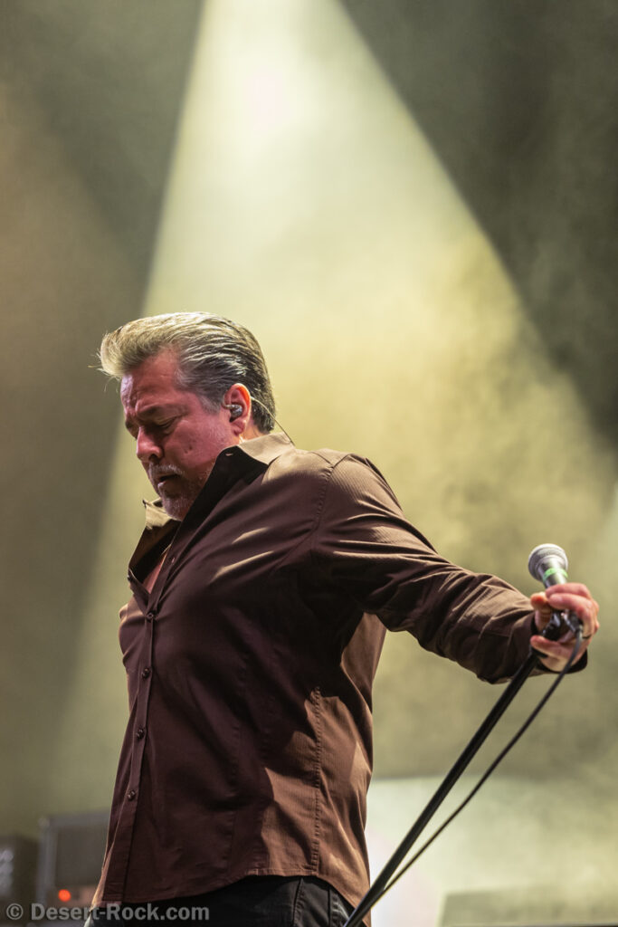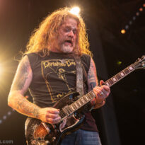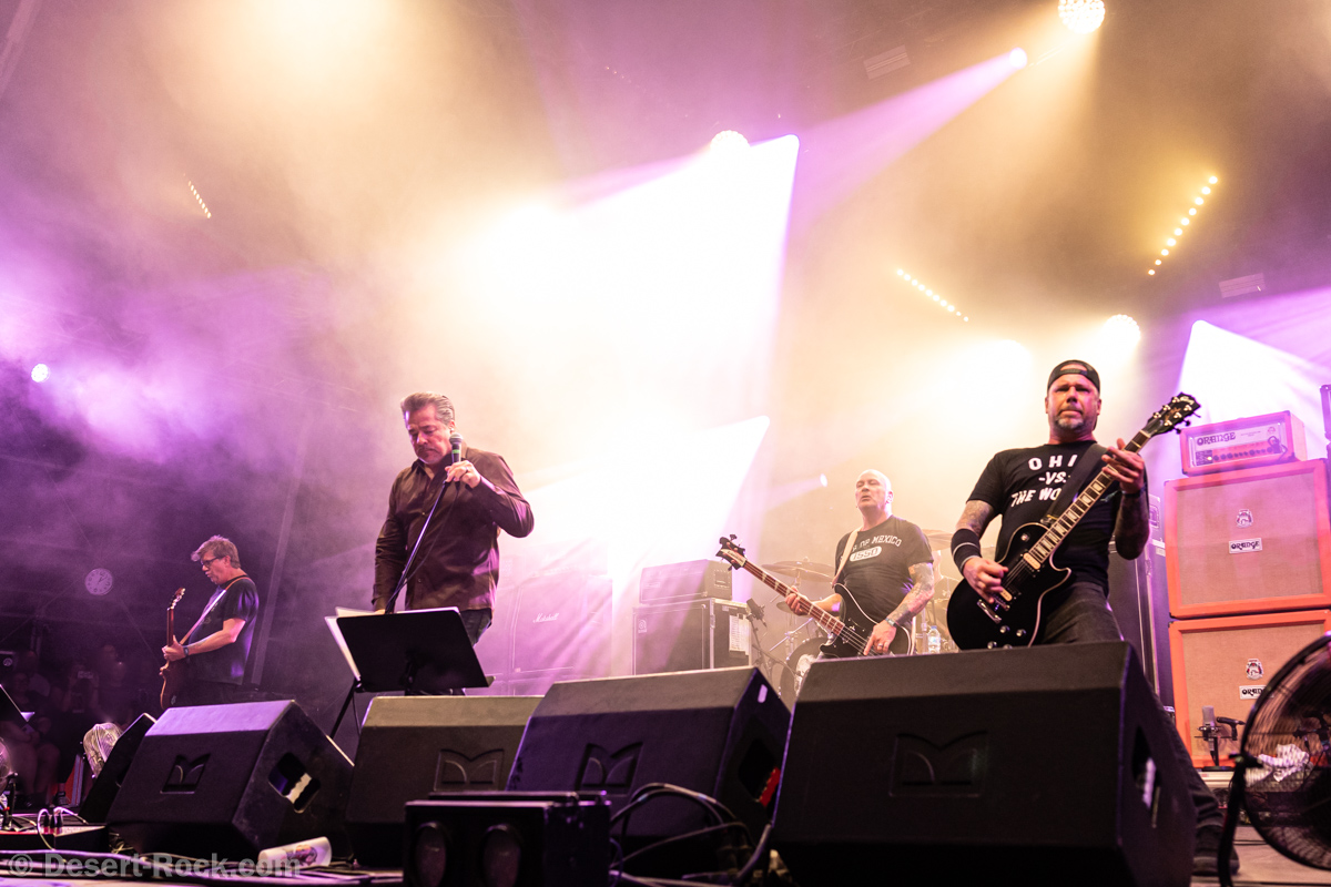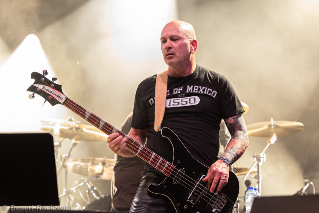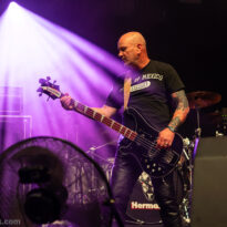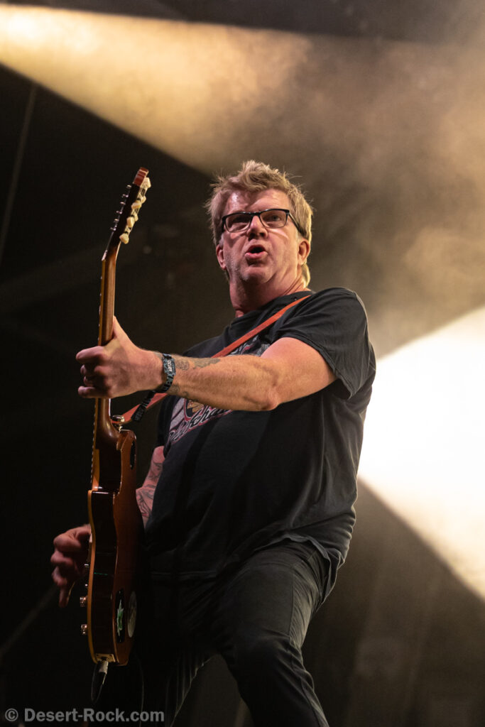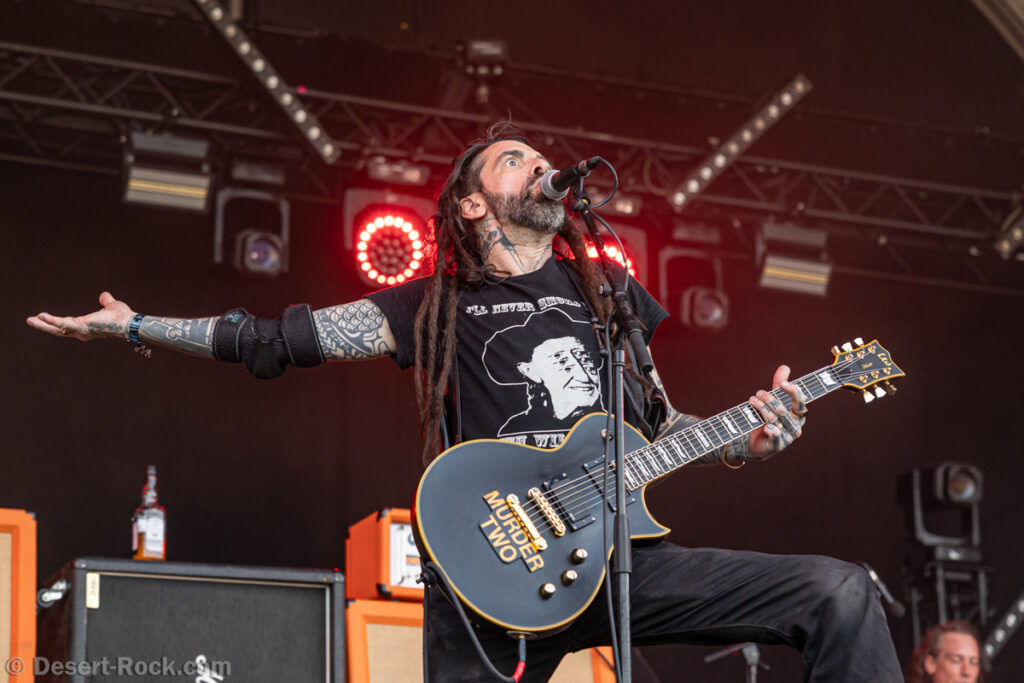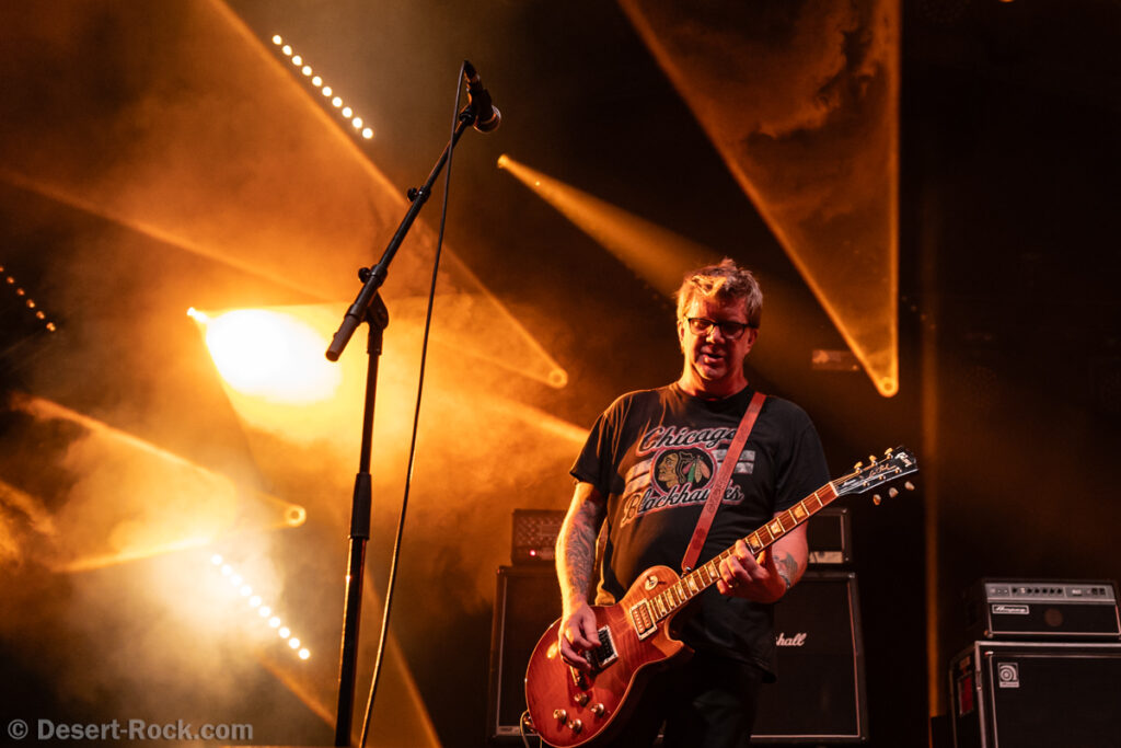 Même si tous les yeux sont (anormalement) rivés sur Garcia, tous les musiciens de la formation apportent une contribution dantesque à l’exercice, à commencer par cette section rythmique redoutable, avec un Chris Leathers sans faille derrière les futs, segondé par Dandy Brown, discret leader du groupe, distillant des trames mélodiques au groove implacable à la basse. Par-dessus, Mike Callahan débite des riffs énormes, associé à Dave Angstrom et ses leads impeccables, atypiques, imprévisibles parfois, en prolongation directe de sa personnalité. L’alchimie naît là, à travers ces quatre musiciens avec lesquels John Garcia délivre ce soir une prestation plus que solide (soyons honnête, on l’a déjà vu moins impliqué et/ou moins efficace dans d’autres contextes parfois). La set list n’apporte pas grande surprise, reposant sur les principaux hits du quintette, agrémentés de « Love » (déjà jouée en 2016, inédite à l’époque) et « Breathe » (proposée dans le mini album « fourre-tout » sorti par le groupe il y a quelques mois). Les mid tempo charpentés sont alternés avec les titres plus nerveux (les premiers pogos dans le pit interviennent au milieu du set sur le rageur « Angry American »), pour le plus grand ravissement d’un public qui n’en perd pas une miette, ondulant et headbanguant à l’unisson, en symbiose avec le groupe. L’attente fut tellement longue que l’on râle un peu de voir le groupe ne pas tirer profit de la moindre seconde du créneau qui lui est alloué (ils finissent 5 minutes plus tôt, ce qui aurait permis d’interpréter un titre supplémentaire). Mais ce constat se volatilise bien vite en regard de l’expérience globale, de ce moment quasi-magique qui vient de se dérouler sous nos yeux.