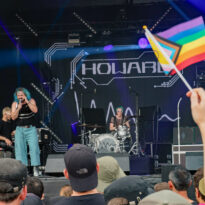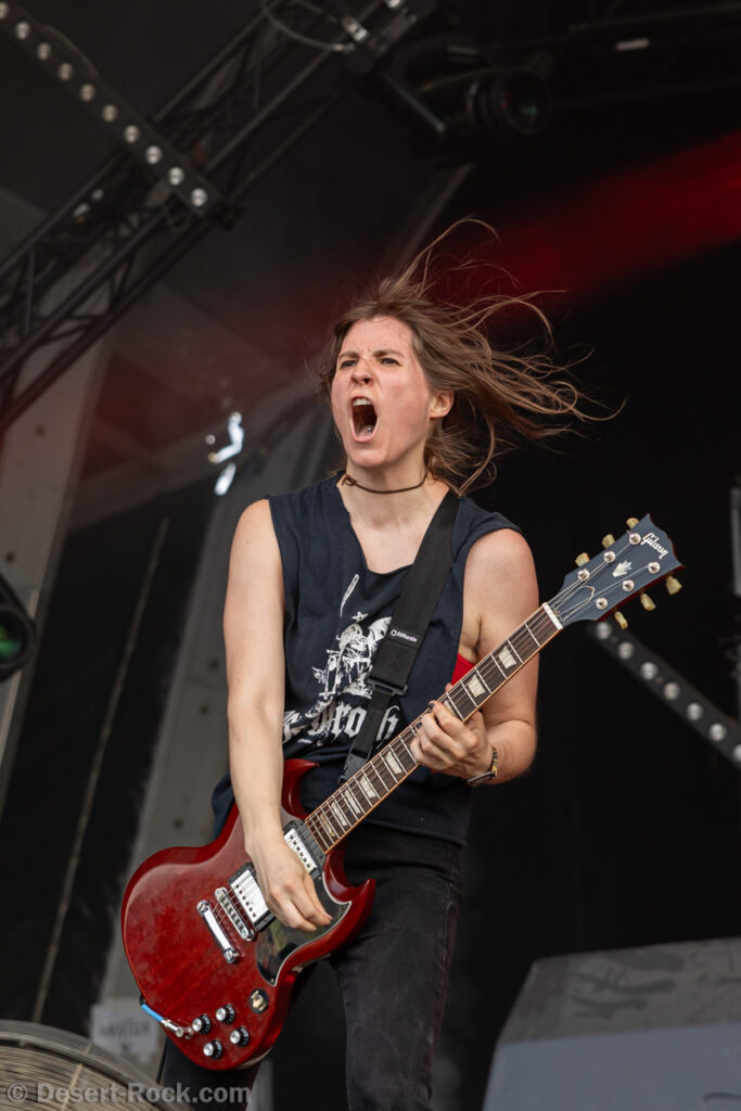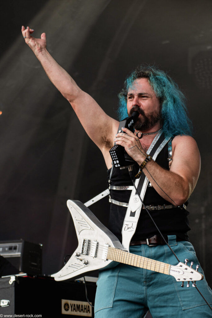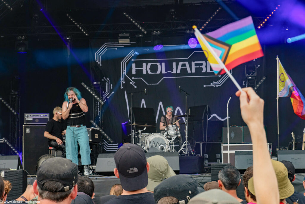 Pour lancer les hostilités sur la Valley, le trio parisien démarre son set en toute décontraction, soufflant dans ce que nous appellerons un biniouotron (soit une pipe électronique qui fonctionne sur le principe du kazoo) avant d’allumer le feu sur les planches. Howard, qui a réduit la place du clavier dans sa musique, évolue entre différents styles qu’il est difficile de répertorier ici. Le chanteur JM fait l’annonce de sa non binarité et entraîne le public derrière lui dans un circle pit de tendresse et un fier wall of Love. On ressort de là sans la certitude d’avoir réellement vu un concert de metal, mais qu’importe car la foule nombreuse repart avec le sourire aux lèvres et des arcs en ciel dans les yeux.