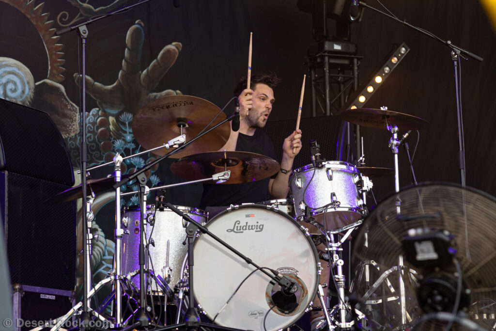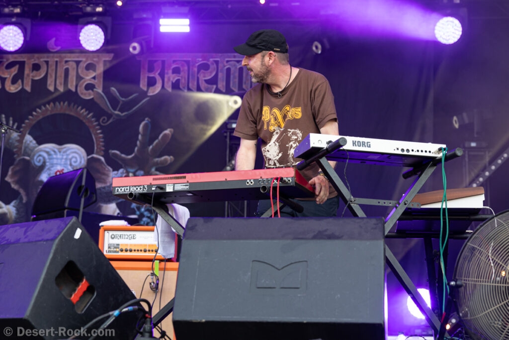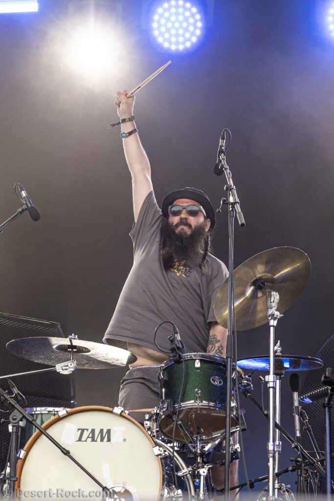 Il y a deux ans, Steffen, batteur emblématique de My Sleeping Karma et membre fondateur du groupe, décédait après un long combat contre la maladie. Connaissant son importance dans la formation allemande et la synergie entre les musiciens, il était tout à fait probable que ce sinistre événement ne signe la fin du groupe. Il y a quelques mois encore, on n’espérait plus vraiment voir le groupe à nouveau sur les planches ou sur disque – jusqu’à fin d’année dernière, où ils ont annoncé la re-naissance du groupe, complété par un jeune batteur ami de longue date du groupe. Difficile de décrire l’ambiance qui règne dans le public, en attendant que le quatuor monte sur les planches, où se mêlent excitation, joie, doutes, émotion… C’est avec le sourire et la désormais rituelle étreinte de plusieurs secondes que le groupe monte sur les planches, et engage l’épique « Brahama ». Il serait faux de dire que le groupe n’a pas changé et que tout est comme avant. Les interactions entre les membres du groupe sont toujours là, les sourires échangés (avec le nouveau batteur aussi d’ailleurs)… Mais forcément l’alchimie est différente. Est-ce que ça nuit à la prestation ? Franchement pas, l’ambiance est parfaite, un sentiment de joie et de plénitude se répand du premier au dernier rang de cette Valley très bien remplie, tandis qu’un peu plus tard le puissant « Ephedra » retentit dans les amplis, générant force headbang et danses dans le public. Notons au passage que le nouveau batteur André s’en sort avec grand talent. Seppi et Matte sont impeccables en front de scène, souriants et immergés dans leur jeu, ils occupent bien la place et interagissent copieusement avec le public (Matte leur adresse souvent quelques mots entre les chansons). « Maya Shakti », audacieux extrait du dernier album du groupe, passe parfaitement en milieu de set. Juste après, le groupe dédie le classique et délicat « Ahimsa » à Steffen, et l’émotion est palpable, dans les regards des musiciens mais aussi du public, où les yeux humides se mêlent aux sourires… Le groupe finit évidemment avec « Hymn 72 » et les milliers de personnes qui ont assisté au concert repartent, eux, plus heureux et plus légers. Rares sont les groupes à produire un tel effet. Splendide.