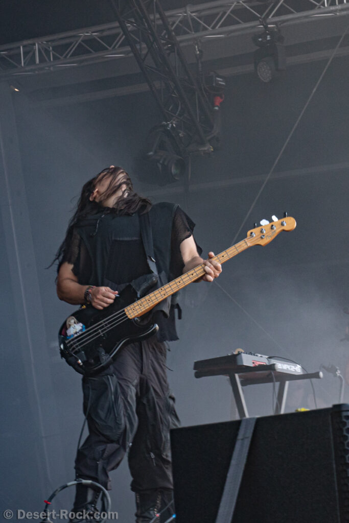Même si la Valley n’est pas vraiment remplie, le quintette breton rassemble un aréopage de curieux et d’amateurs, présents malgré les corps meurtris par 3 jours de festival caniculaires et trop peu de sommeil. En ce début de journée un peu mélancolique (dernier jour de fest…) Black Bile propose probablement la musique la mieux adaptée au contexte, en évoluant constamment entre doom atmosphérique et post-metal furieux via des assauts hurlés par Romane, bien alourdis par la double pédale d’Emerick à la batterie et des strates d’accords de guitare nerveux. Scéniquement, c’est la vocaliste qui capte essentiellement l’attention (avec une certaine théâtralité renforcée par un beau light show, qui contrastent avec le relatif statisme de ses collègues), et le set déroule efficacement, assez dense pour maintenir l’attention et le plaisir. Au final les applaudissements viennent confirmer que le public a trouvé ça à son goût.