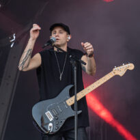 Le groupe d’electro noise (les moins fins d’entre nous parleront d’indus), bien connu des hard-gamers fans de Cyberpunk, GTA et consorts, a trouvé une place désormais légitime à la Valley, tant ces dernières années la part belle est faite aux inclassables venus de genres à haute porosité. Le metal de Health, on l’a dit, est certes électro, mais n’est bruitiste qu’en de rares occasions, notamment grâce à la voix aérienne de Jake Duzsik, qui envoûte clairement autant que la section rythmique binaire qui l’accompagne ; un cocktail qui ravit le public. La prestation de Jake est peut être statique mais le bassiste virevolte entre sa gratte et les claviers, headbanguant à en perdre la boule. On est, il faut bien l’admettre, loin de notre zone de pêche, et on vous laissera donc le soin de pousser la curiosité : en écoutant ce groupe pendant une partie de Max Payne 3, ou soyons fous, en achetant un de leurs albums. Saluons au passage la présence du bassiste dans le public après le set, venu se frotter à ses fans selfisant goulûment auprès de son serre-tête kawaii à oreilles en fourrure.