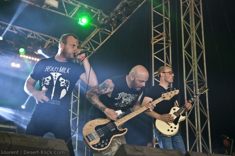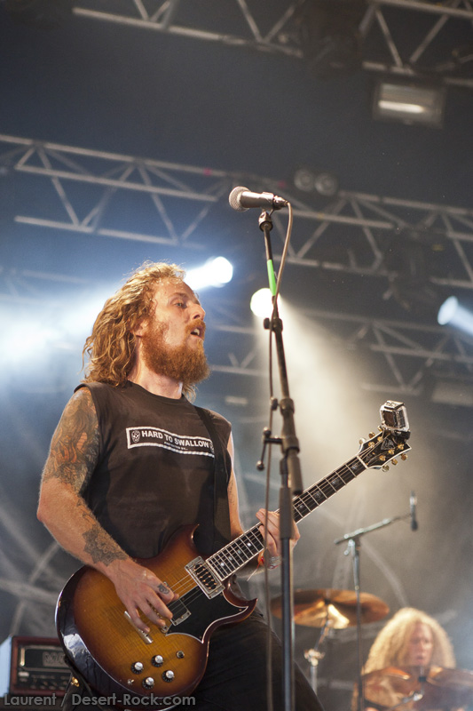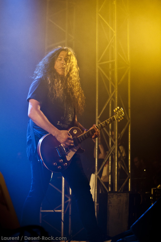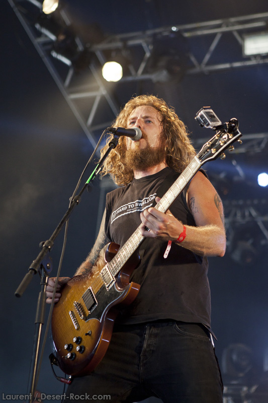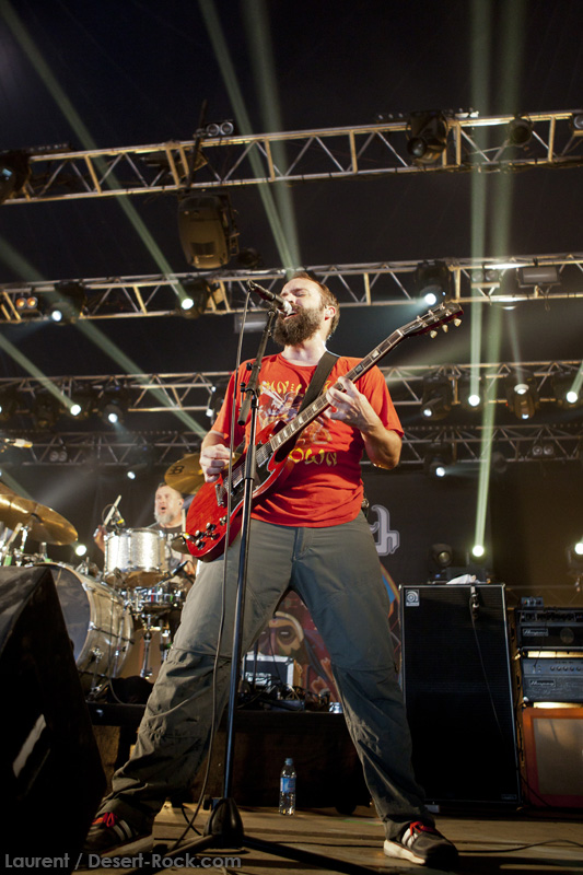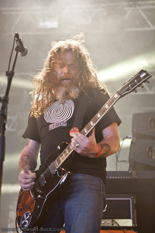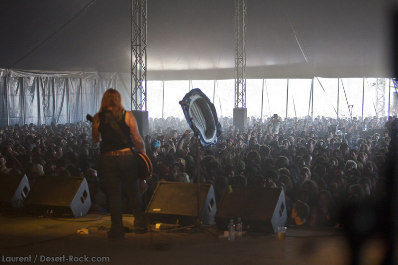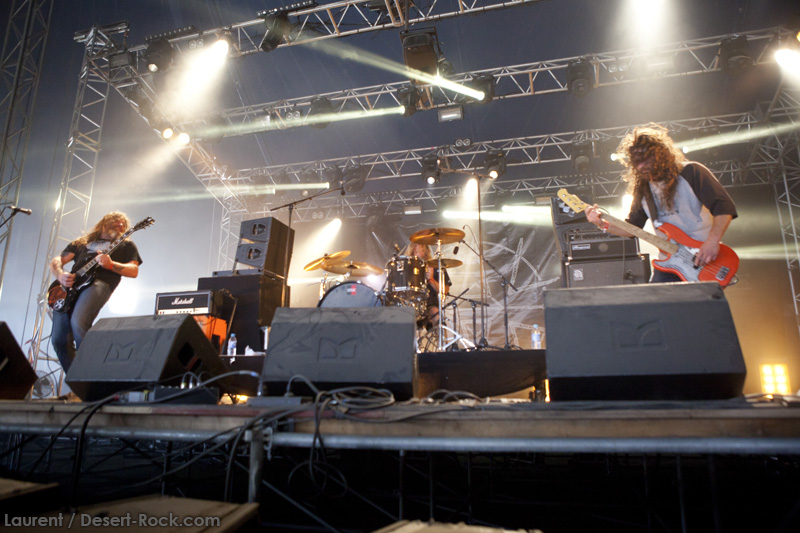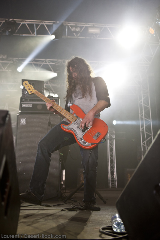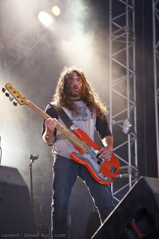 Un trio à la pilosité strictement inverse à celle de Herder foule maintenant les planches de la Valley : MOS GENERATOR est attendu, et ils le savent. Un peu nerveux en début de set, il ne faut guère que les quelques minutes de « Beyond the Whip » à Tony Reed pour rentrer dans son set, lâcher la pression et répandre la bonne parole stoner dans cette tente bien remplie. Le chant profond et rocailleux du guitariste fait sensation sur des titres comme « Lonely One Kenobi » ou le furieux « Silver Olympus », et le bonhomme ne se prive pas de caler ses soli sur quasiment chacun des morceaux. Pour le reste, ça aligne riff sur riff, on ne s’ennuie jamais, et les zicos profitent de chaque espace qui leur est alloué dans les chansons pour introduire des jams toujours impeccables. Même si le dernier album passe bien l’épreuve du live sur ses deux ou trois extraits joués aujourd’hui, le trio se fait plaisir en piochant dans toute sa discographie pour composer sa set list du jour. Plus impressionnant encore, Tony Reed nous confiera après le concert qu’en montant sur scène, ils avaient uniquement décidé du morceau d’intro, et que le reste de la set list a été constitué en direct au fil du concert ! Apparemment c’est une habitude chez eux… Cela produit un effet un peu décousu, mais aboutit fort opportunément à une conclusion certes un peu planante (« This is the Gift Of Nature »), mais surtout propice à une jam remarquable, qui met le public à genoux (faut voir les applaudissements retentir jusqu’au fond de la tente !). L’approche musicale audacieuse du combo force le respect, et sa musique, généreuse et efficace, n’aura pas mis longtemps à convaincre un public plutôt sur la retenue au début, qui leur mange maintenant dans la main et en reprendrait bien un peu plus pour la route !