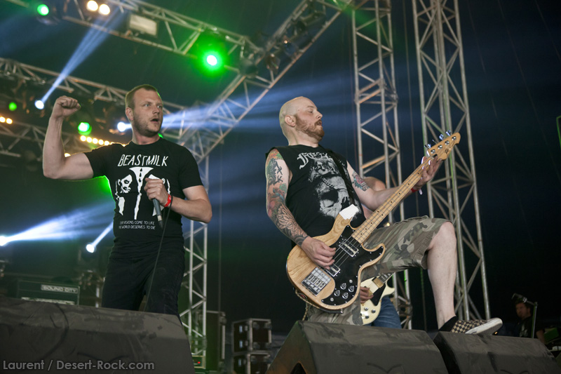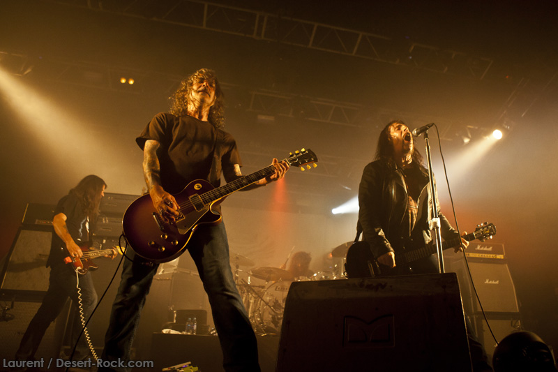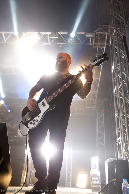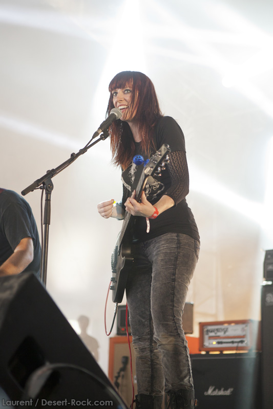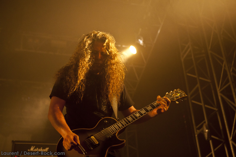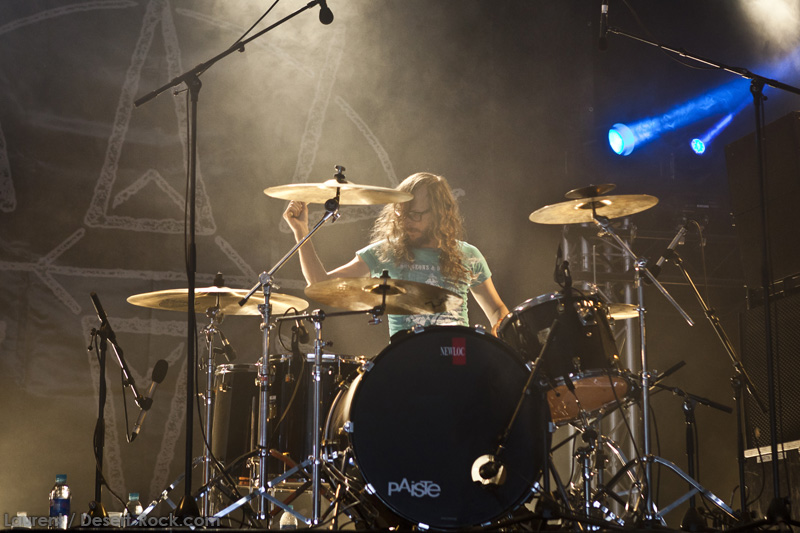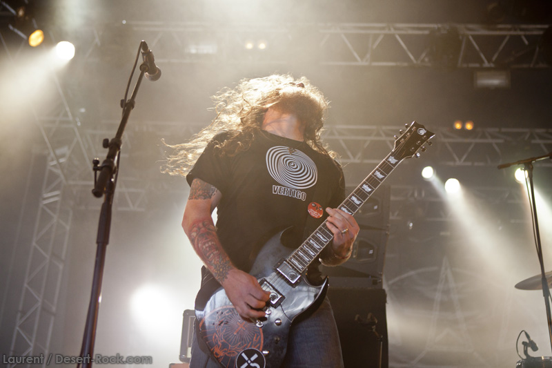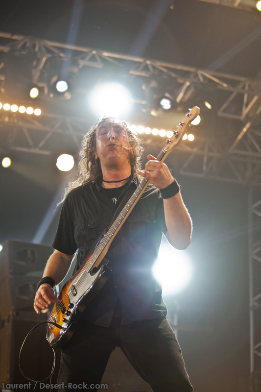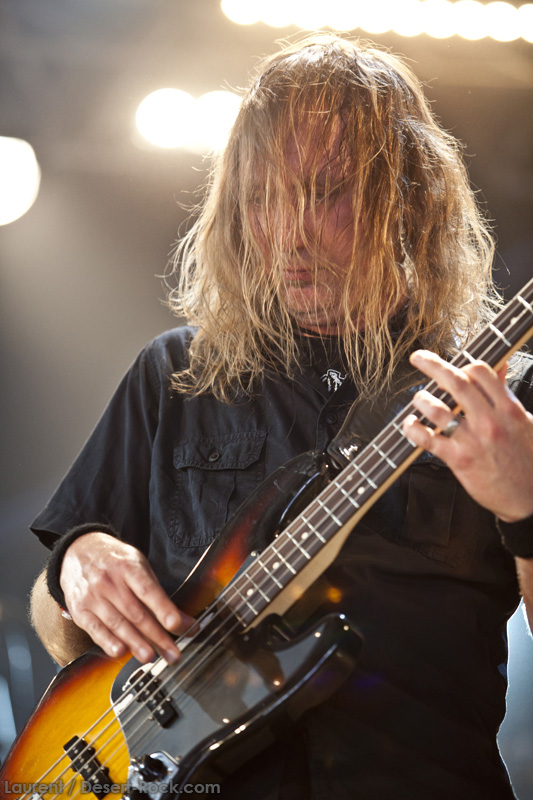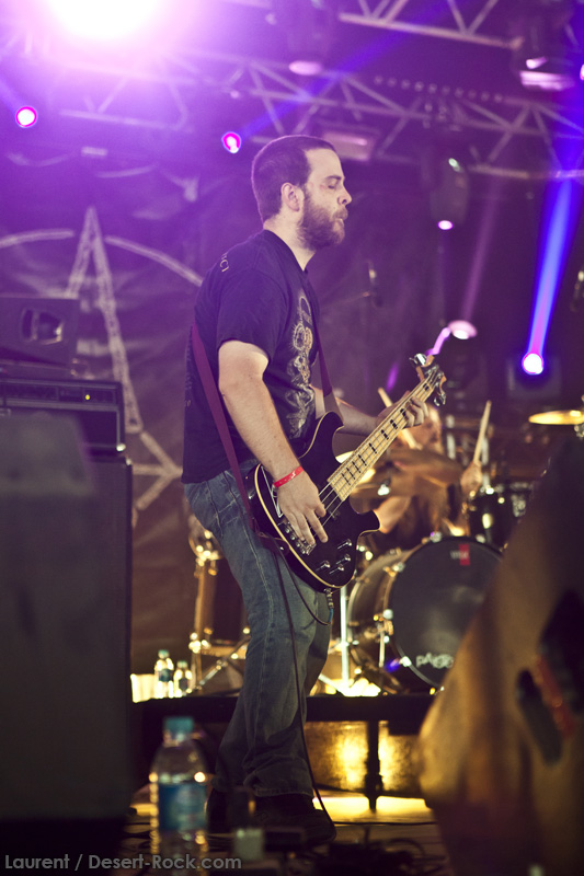 Le contraste musical avec SUBROSA qui passe juste après fait un peu mal, avouons-le. Le doom-metal quasi-lyrique du combo largement féminin est par essence plus froid, plus policé et parfois même « synthétique » (ah, cette paire de violons électriques, c’est un peu comme des synthétiseurs… faut aimer !). Pourtant, le combo ne démérite pas et jette toutes ses armes dans la bataille : l’énergie est là et l’ambiance développée sur album est bien restituée (voir l’épique « The Usher » issu de leur dernier album). On pourra avoir des réserves sur les vocaux de Rebecca Vernon, dont les passages les plus graves sonnent presque faux, mais c’est une question d’oreille (la mienne est visiblement plus habituée au sable et au son de gratte craspec). Reste que l’expérience musicale délivrée par le quintette est assez inédite : le genre musical adopté est original, composé de longues séquences où Rebecca à la gratte et Levi à la basse font tourner de gros riffs lancinants, laissant à la paire de violonistes l’occasion de s’engager dans des envolées en harmonie généralement bien amenées. Ca se laisse écouter sans déplaisir, et force est de constater que le public est bien dedans, headbanguant au rythme (lent) des morceaux, et applaudissant copieusement la fin du set des américains (terminé cinq minutes plus tôt, ce qui s’avère piégeux pour un groupe dont la durée moyenne des chansons est au dessus des dix minutes…). Sympa, mais pas complètement enthousiasmant.