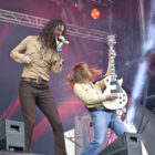 … et grand bien nous fit ! Puisque sur le même créneau horaire (salauds à la prog !) sévissent les excellents SATAN’S SATYRS ! Le combo mené par Clayton Burgess, le nouveau bassiste d’Electric Wizard, anime la Valley depuis quelques minutes déjà, donc, mais il nous faut moins d’une chanson pour confirmer qu’on a fait le bon choix et qu’il vaut mille fois mieux passer le reste de cette petite demi-heure avec nos trois furieux. Look old school, musique old school… Là aussi, la « vague » vintage n’est pas passée complètement à côté du combo, sauf qu’il y a une énergie punk dans le rock de Satan’s Satyrs qui rend le groupe cent fois plus excitant que les dizaines de groupes qui s’embarquent dans cette veine musicale très hypée. Faut voir nos lascars se donner à fond dans leur set pour comprendre qu’ils ne sont pas là pour la représentation ou pour rafler quelques lauriers faciles ; ils auront le public par les tripes ou rien ! Burgess s’affirme en frontman efficace, son chant nasillard fonctionne bien, et les autres ne sont pas en reste, avec un batteur digne d’Animal, le batteur déjanté de Sesame Street avec sa tignasse énorme, et un gratteux plus discret mais bien présent néanmoins, toujours dispo pour croiser le fer (ou le manche) avec son collègue sur des dizaines de soli impeccables. Energie, rock old school, fuzz, authenticité… Fatalement, ça marche. Et du coup, ça a même fait revenir le soleil ! Dommage pour ceux qui appréciaient ce petit rafraîchissement pluvial – c’est reparti pour un cagnard terrible pour tout le reste de la journée…