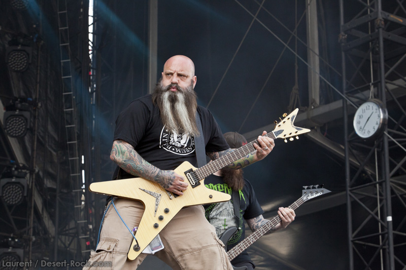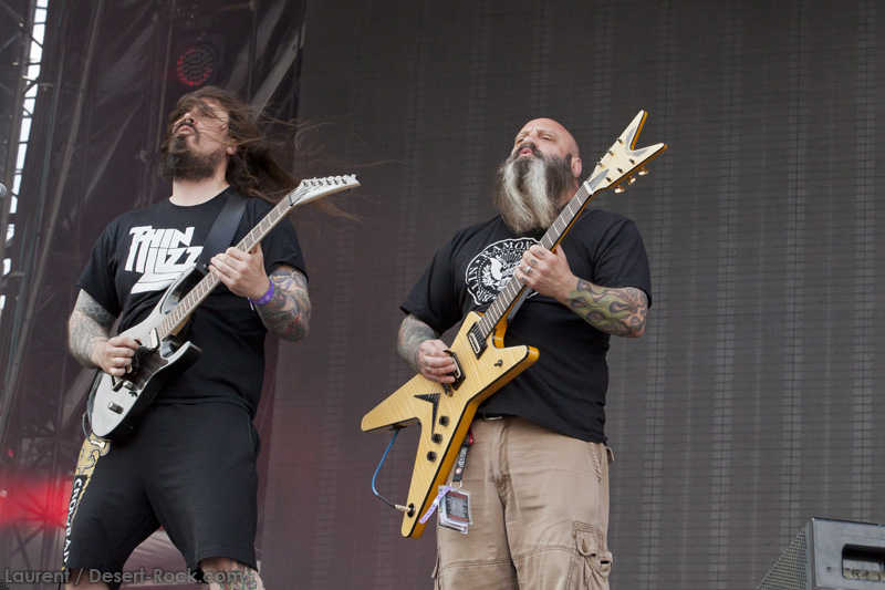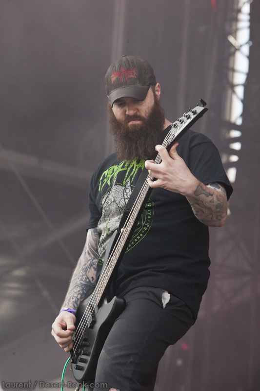 Alors là… le bad trip je pense, je sais pas… Toujours dans l’ambiance de la fin du set de Zodiac, dans l’atmosphère chaleureuse (j’ai failli dire « feutrée »…) de la Valley, on se lance en courant vers la Main Stage n°1 pour ne pas rater CROWBAR sous un soleil de midi déjà étouffant, dans la poussière, avec une barre de son monolithique et sans relief, avec trois gars complètement paumés sur une scène de 80 mètres de large et 60 de haut (trois gars parce qu’autant vous dire que sur une scène surélevée de deux mètres, on voit pas beaucoup Tommy Buckley derrière ses fûts)… Pour je ne sais quelle raison, ça fait quinze fois que Crowbar joue au Hellfest (OK, disons deux ou trois fois…), et à chaque fois ils atterrissent sur la Main Stage. Mais cette fois, la transition est trop rude et ma cervelle se bloque dans un mouvement d’auto-protection qui va malheureusement à l’encontre de mes affinités musicales. Car je me faisais une joie de revoir Crowbar ! Mais je pense que les riffs de Windstein sont faits pour rebondir sur les murs et le plafond d’une salle pour mieux vous écraser la nuque, et que ses lignes de chant vous prennent aux tripes avec dix fois plus d’impact lorsque vous croisez en même temps son regard de trucker maniaque… Du coup, je me cale au fond, et je regarde le set à 700 mètres de la scène, peinard mais résigné, sans y prendre le plaisir escompté… Forcément, entendre le groupe cracher ses classiques glaviots sludge que sont « All I had », « High Rate Extinction » ou « Planets Collide » fait toujours son petit effet, mais aujourd’hui, entre moi et Crowbar, les étoiles n’étaient pas alignées.