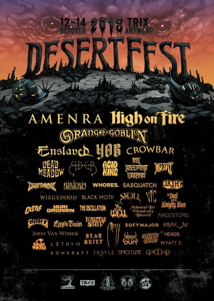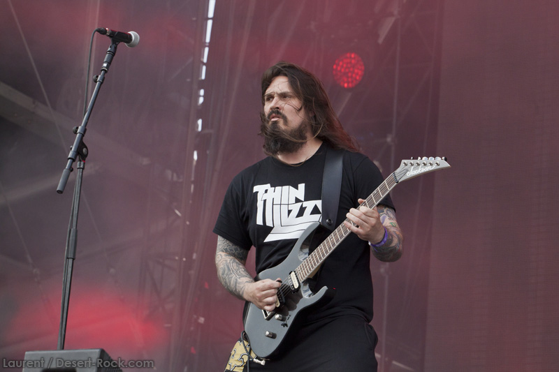 Peut-être que l’une des causes de ma déception vis-à-vis du concert de Crowbar trouvait sa source dans mon excitation de revoir LOWRIDER sur scène ? Toujours est-il qu’il ne faut pas me prier pour regagner la Valley après le dernier riff louisianais pour voir les suédois monter tranquillement sur scène. En choisissant de lancer leur set comme commence leur unique album, avec « Caravan », ils remettent tout de suite les choses en place, là où elles n’auraient jamais dû s’arrêter, il y a plus de dix ans de cela. Sur scène, les gars sont imperturbables, en tout cas la paire de gratteux, Niclas et Ola, décochent difficilement un sourire, même si on a du mal à les prendre en défaut sur l’exécution impeccable des morceaux… A leurs côtés toutefois, Peder, bassiste, vocaliste et leader / frontman du combo kiffe ce trip Hellfest jusqu’au bout des ongles : il ne tient pas en place, il a le sourire vissé aux lèvres, il communique avec le public presque entre chaque titre… Certes, il est un peu à la peine sur certaines lignes vocales (les parties les plus perchées de « Dust Settlin’ » sont un peu limites…) mais il emporte le public sur son enthousiasme… et sur les compos du groupe ! La tente est blindée en ce début d’après-midi, et le public est au taquet : ça chante, ça headbangue, ça slamme… Le son sous la Valley est, cette fois encore, excellent, le pied. Surprise, alors que l’ambiance commençait bien à monter et que cette douce chaleur nostalgique commençait à nous faire gentiment planer, le groupe se lance dans l’interprétation de pas moins de deux inédits ! « Leaning Times », présenté par Peder comme « un nouveau titre, que nous avons écrit il y a dix ans… that’s how we roll ! », donne rapidement l’impression d’être très catchy, même s’il n’emballe pas complètement en première écoute, l’impression d’un manque de « lourdeur » en quelque sorte… A réécouter sur album. « Red River » à ce titre est plus emblématique de ce que l’on connaît et aime chez Lowrider, vocaux, riff, groove… Après ces petites friandises, retour sur le chemin des classiques avec « Lameneshma » qui amène un tunnel de titres issus de leur LP pour conclure ce set. On retiendra surtout « Texas Pts 1-2 » et sa conclusion jouissivement Kyussienne, enchaîné à « Convoy », un des riffs les plus lourds depuis la création de la six-cordes. A la scandinave, les gars sortent de scène à peine expressifs, mais leur sourire en coin ne laisse pas de doute sur leur ressenti : ils ont tué, et ils le savent bien. Maintenant, finie la déconne, va falloir remettre le couvert, et pas dans cinquante ans.