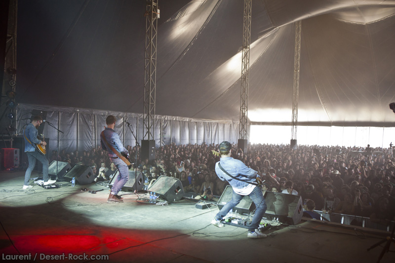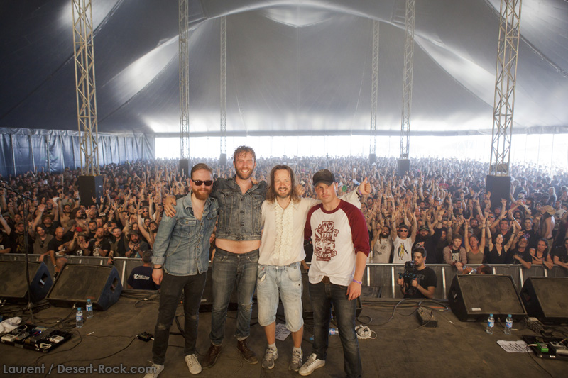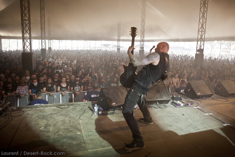 Après leur set dévastateur l’an dernier au Desertfest Berlin, on ne va pas se la jouer « surpris » : on sait qu’on va prendre une claque avec le set de HOUSE OF BROKEN PROMISES. Voir Arthur Seay faire les cent pas comme un lion en cage backstage pendant une demi-heure en attendant l’heure du set, en jouant des soli imaginaires non stop, son médiator à la main, on sent le bonhomme prêt à en découdre. Bingo. Quand les gars montent sur scène, ils sont immédiatement à fond dedans. A l’américaine : ils font le show ! On savait Seay excellent (sous-estimé) guitariste, soliste hors pair et gros générateur à riffs. On savait aussi que le frêle Mike Cancino devenait une véritable machine à tuer derrière son kit de batterie minimaliste. On aura désormais la confirmation que le casting de Joe Mora ne doit rien au hasard : bassiste impeccable, il prend en charge désormais sans réserve la plupart des vocaux, et se révèle un chanteur doué, avec une énergie similaire à ses collègues (bref : au taquet). Faut les voir haranguer le public, le prendre à parti, communiquer entre eux… Quant aux poses et grimaces non stop de Artur Seay, c’est un spectacle en soi ! Niveau set list, le trio n’est pas vraiment calculateur et se la joue au feeling : ils n’hésitent pas à coller quatre nouveaux titres en plein milieu de leur set list, des titres inconnus de tout le monde… Pourquoi pas ?! A l’image des autres productions du groupe, ces titres de pur stoner metal sont diversifiés, catchy, et percutants. Ca devrait le faire pour leur prochaine rondelle ! Pour le reste, les classiques sont bien là, entre « Blister » en intro, le heavy « Physco Plex », ou encore le percutant « Highway Grit », et même s’ils n’ont pas joué le très attendu « Obey the Snake », on n’a pas matière à se plaindre. Le groupe choisit l’impeccable « The Hurt (Paid my Dues) » pour clôturer un set haut en couleur, qui aura démontré que HOBP n’est pas que « la pièce rapportée de Unida » : leur set jouissif et généreux aura lessivé et collé le sourire à plusieurs milliers de personnes sous la Valley aujourd’hui.