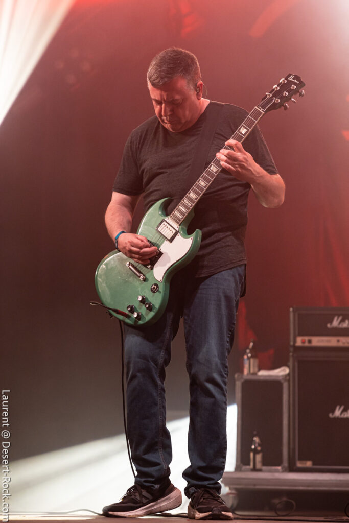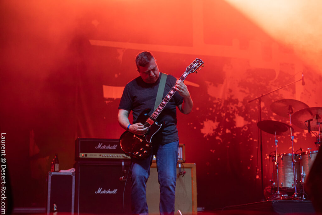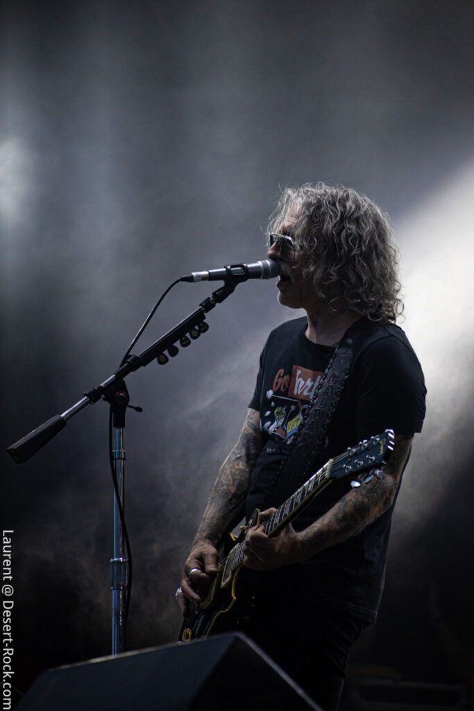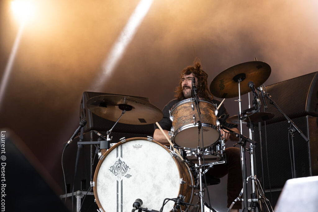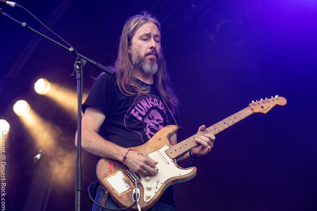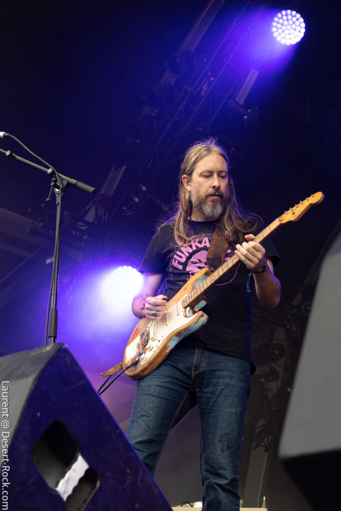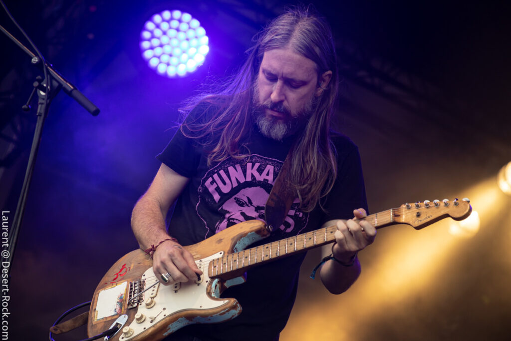 Avec son sens du phrasé, King Buffalo ne laisse pas le loisir au public de se lasser de leur musique lumineuse comme une queue de comète. Le public se désintègre à la chaleur de cette incandescence et de celle de l’astre solaire qui atteint à cette heure son zénith. Le moment choisi pour programmer les etasuniens n’est peut être pas des plus propices pour admirer ce phénomène astral mais c’est un détail vite surmonté car la prestation est hors norme et confirme que la journée le sera également. Sean McVay – qui plus est aujourd’hui blessé à la cheville – ne brille pas par son explosivité en terme de prestation scénographique, mais tel un Isaiah Mitchell un peu plus tard ou encore un Stefan Koglek de Colour Haze, le grand ténébreux distille un jeu de guitare aussi classieux qu’inspiré, hypnotisant un public nombreux, qui s’attendait vraisemblablement à une prestation de haute volée. Un regain de vitalité souffle sur le public de la Valley qui comme aux beaux jours ondule, collé, serré, libéré, délivré (ne nous remerciez pas, c’est cadeau !).
