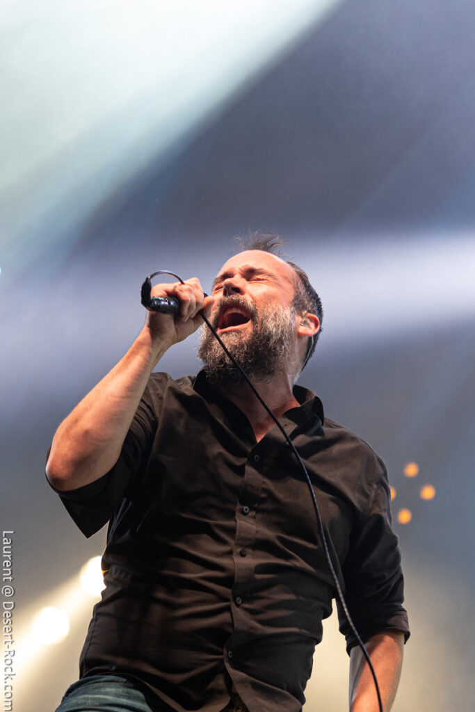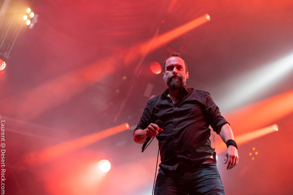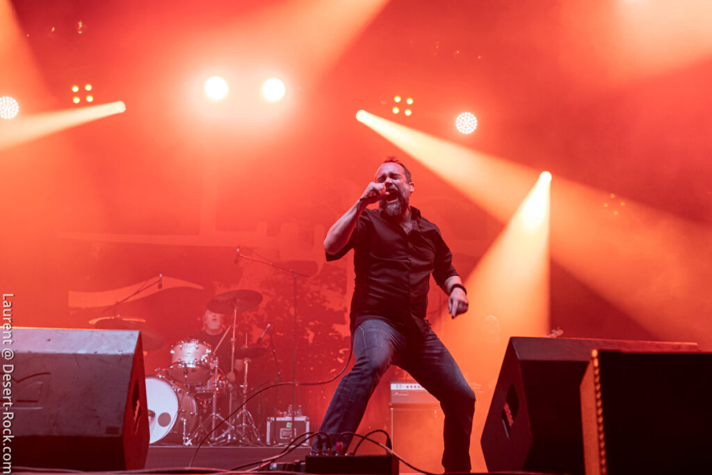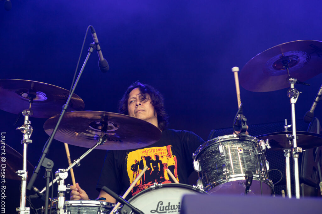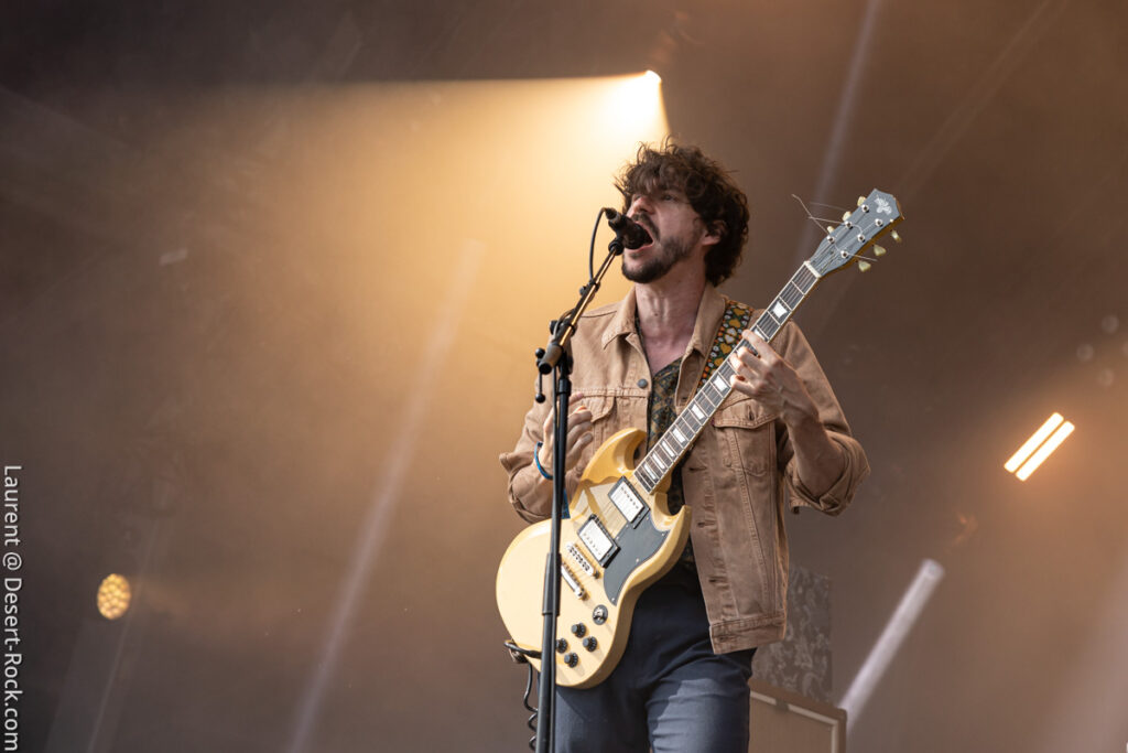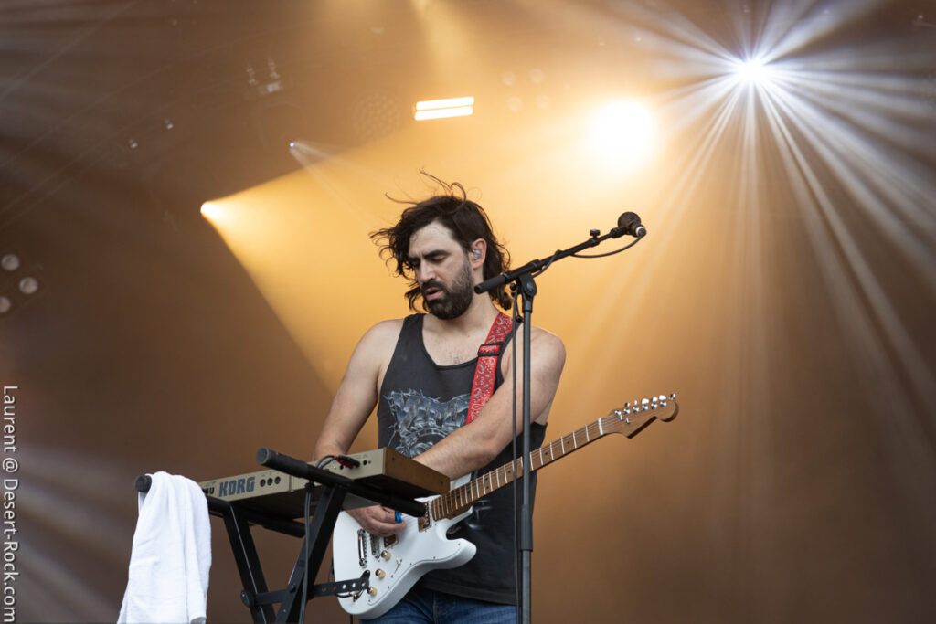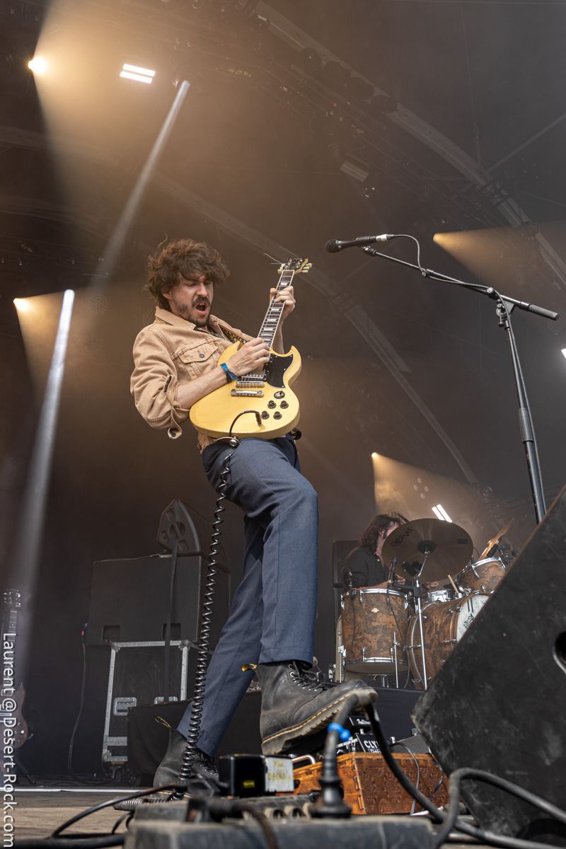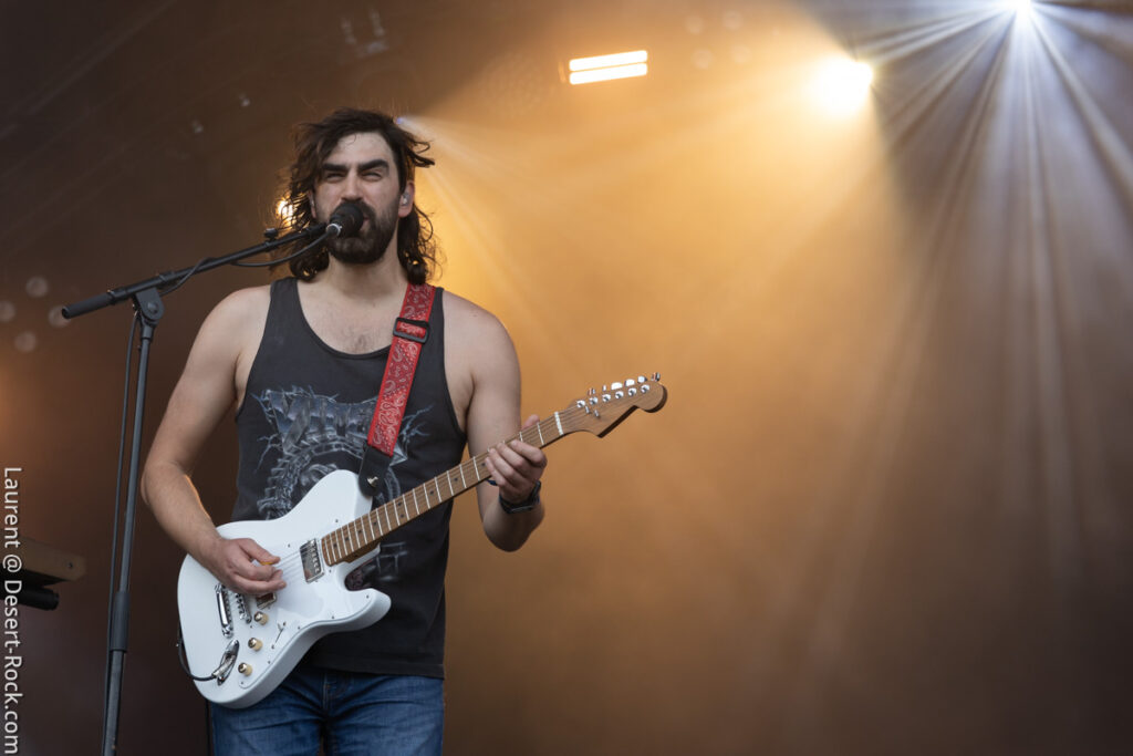 Clairement ce jour 3 était dans notre radar depuis des mois. L’affiche hallucinante justifiait (sur le papier en tout cas) à elle seule la venue en terres clissonaises. Le public, dense sur toute la journée (ce qui ne fut jamais le cas en continu sur chacun des autres jours), a manifestement fait le même diagnostic que nous. Le soleil cogne déjà très dur dès les premières minutes de la journée, participant à sa manière à peaufiner l’ambiance désertique propice à l’accueil des groupes du jour… On va s’hydrater et déguster…