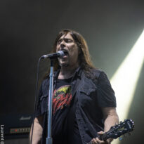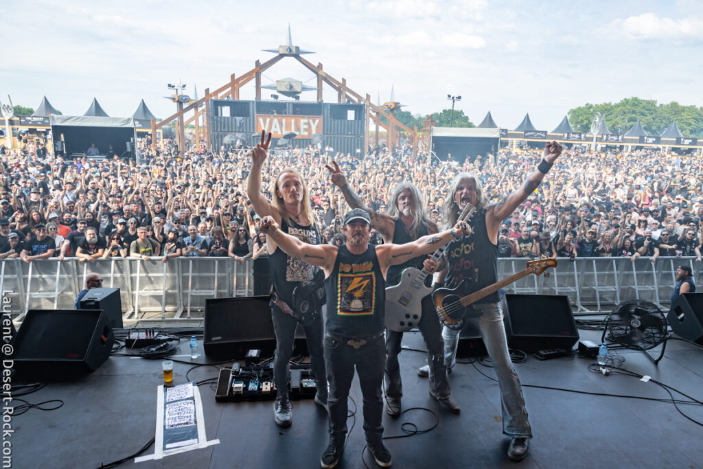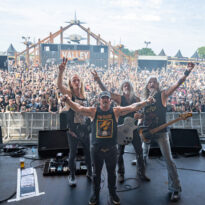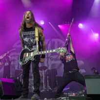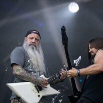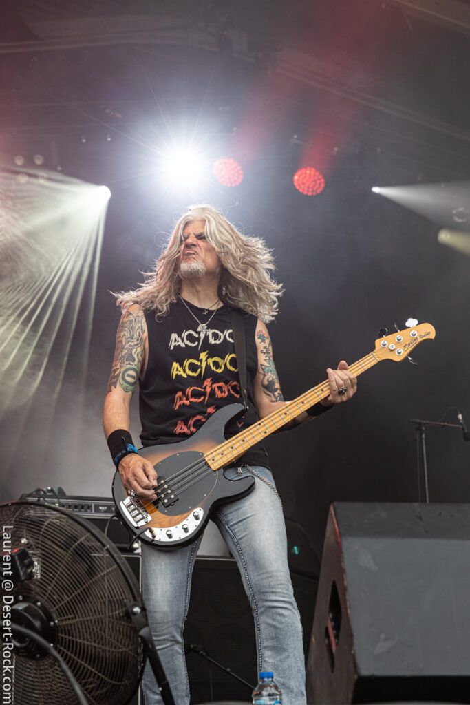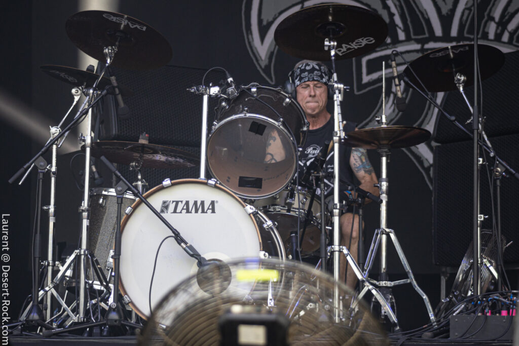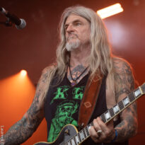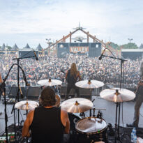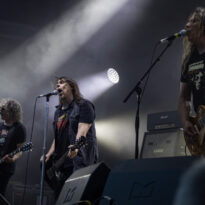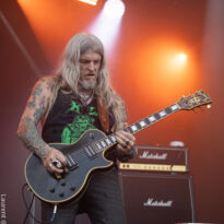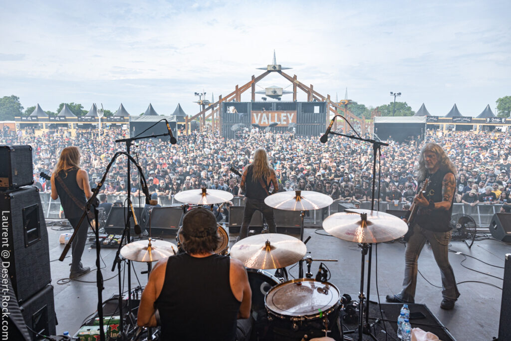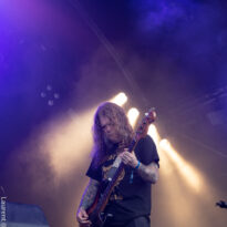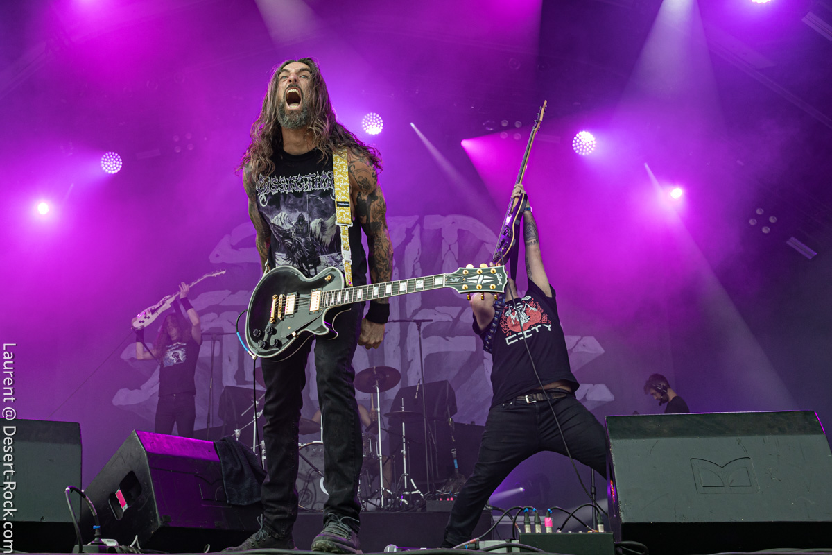 Old school as well, Spirit Adrift porte son heavy metal vintage jusque dans la façon des gratteux de poser leurs accords, d’un geste finissant médiator brandi vers le ciel. Le public lui aussi brandit le poing et les cornes sous cette avalanche de riffs féroces et précis enfoncés à coups de cymbale crash. Se félicitant d’ouvrir la voie aux guitaristes de prestige qui se succèderont ici ce jour, et auxquels il rend un hommage sincère, le groupe monté et emmené par Nathan Garett se paie même le luxe de passer au banc d’essai du live son titre sorti le jour même. Déviant ostensiblement depuis quelques mois/années de leur doom metal des débuts, le groupe développe désormais des ambiances plus proches du heavy metal. La chorégraphie datée, les pieds sur les retours, a fait mouche quand bien même le registre musical était plus en lien avec ce qui allait se déployer dans la journée sur les main stages.