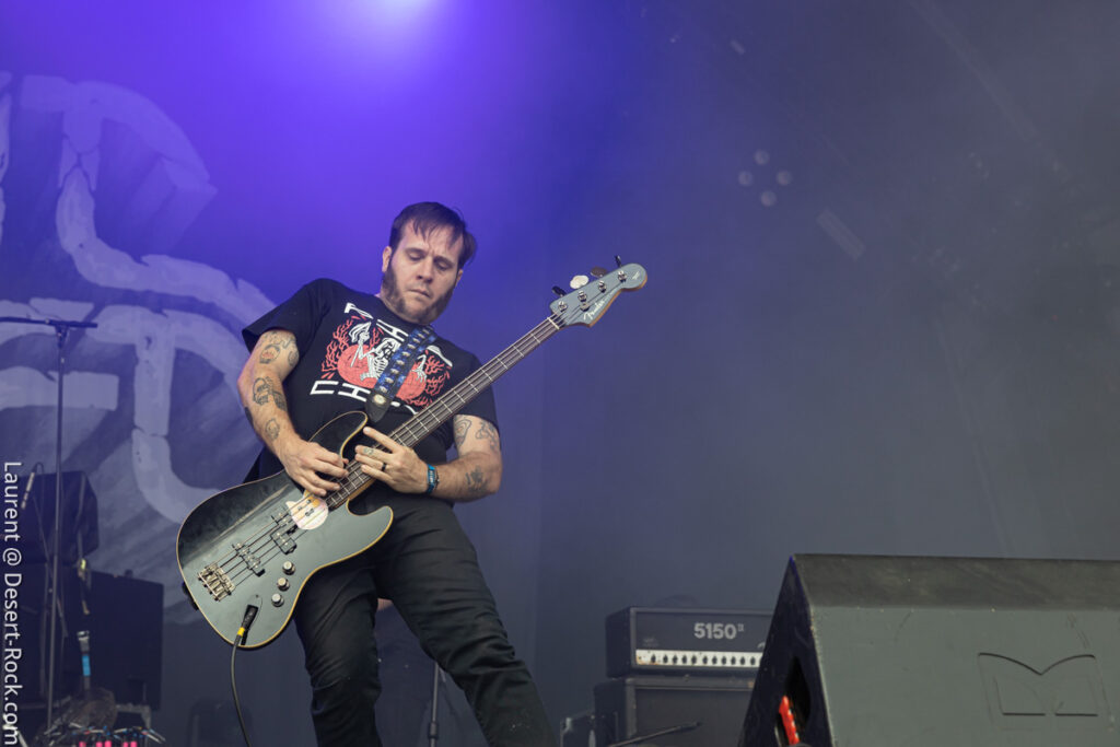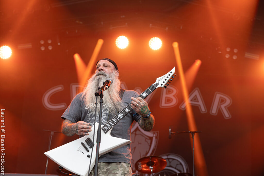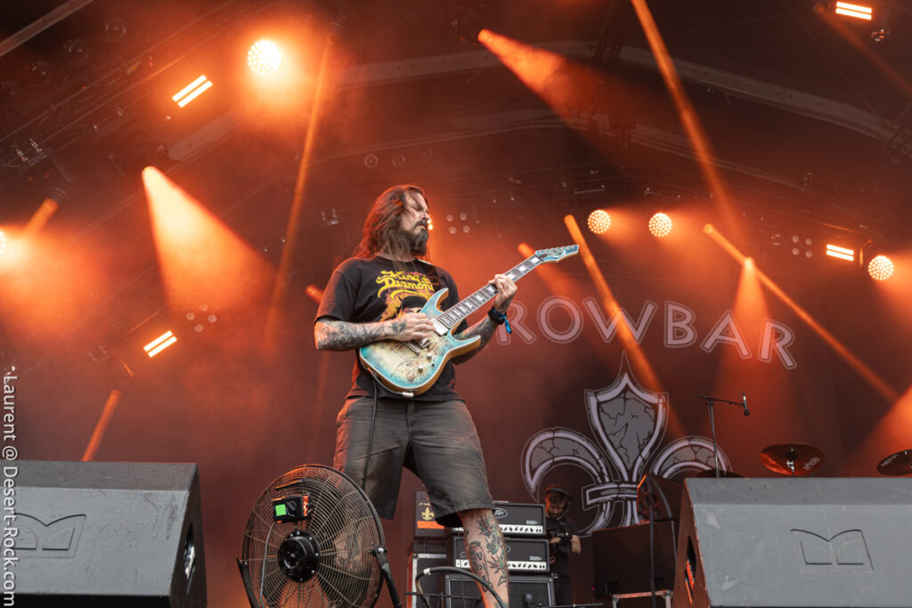 Voilà bien longtemps que la fleur de lys n’avait pas pavoisé en terre de chouannerie. Elle revient aujourd’hui sur l’étendard de Crowbar. Un Crowbar très en forme à en croire les hurlements de tonton Kirk, déroulant un set éprouvé depuis le début de la tournée et que nous avions pu goûter sans modération à Berlin. Une fois de plus, nous ne nous retiendrons pas de tout croquer à belles dents, qu’il s’agisse des classiques et classieux « All I Had (I Gave) », « Planets Collide », etc… ou même des récents et pertinents ajouts, à l’image du brutal et efficace « Chemical Godz ». Le groupe de la Nouvelle-Orléans déroule ses titres bulldozers à la mécanique scénique froide et super huilée. Un supplément d’âme et de spontanéité n’aurait pas été de refus, mais qui sommes-nous pour exiger quoi que ce soit des maîtres du bayou ? Le bulldozer fait son effet et, évidemment, déclenche les prémices du déluge, quelques gouttes de pluie tombant à la minute exacte où Windstein termine le dernier accord de « Broken Glass » en conclusion ! Qu’est-ce qu’il vous faut de plus qu’un signe du ciel ?