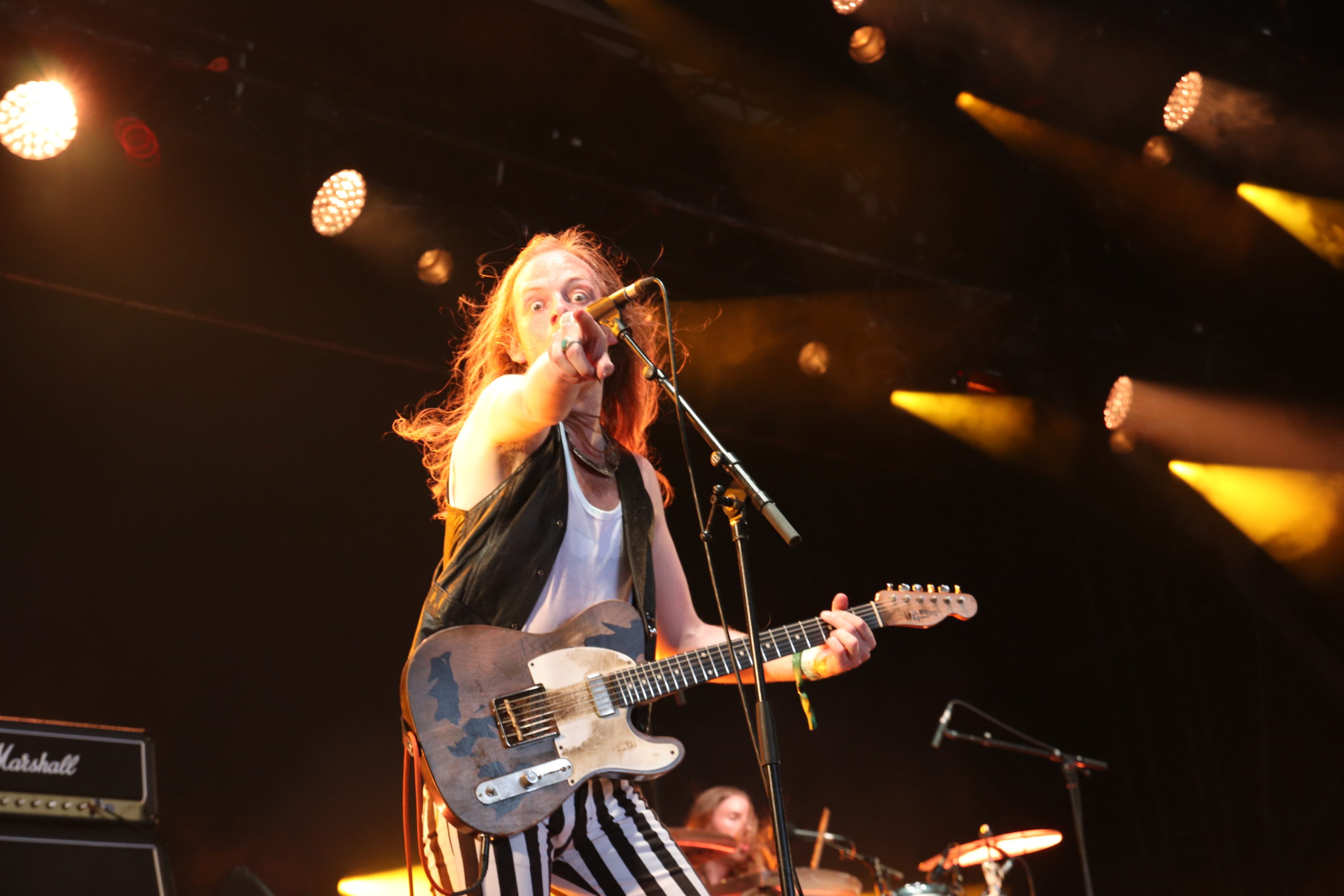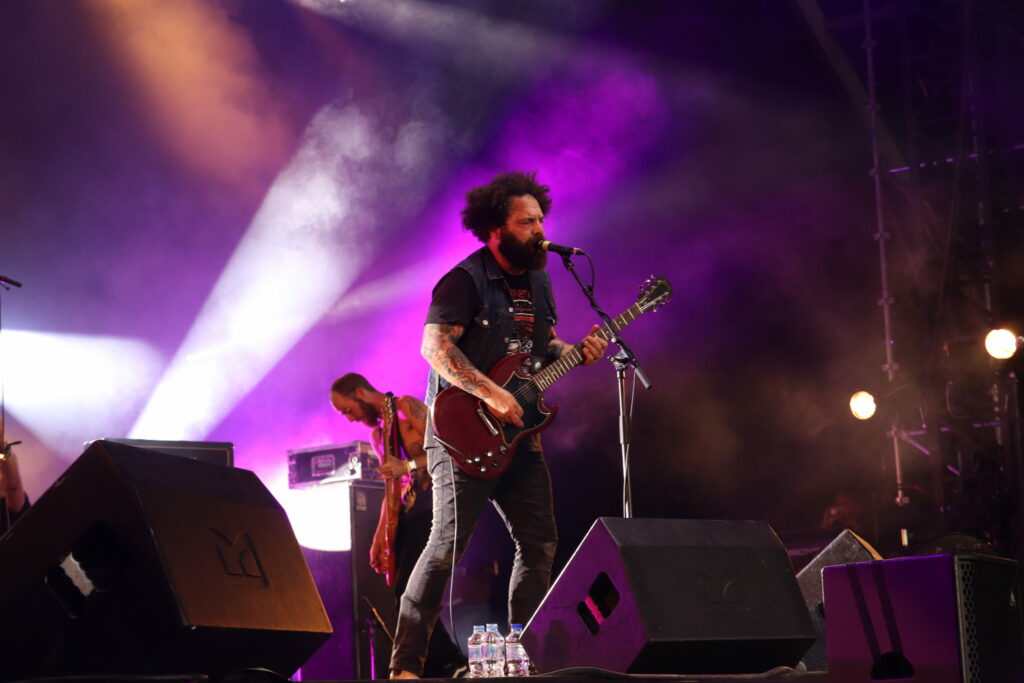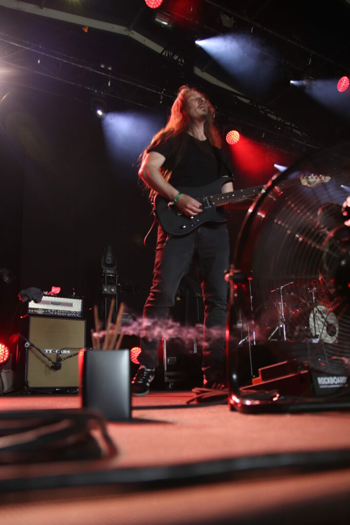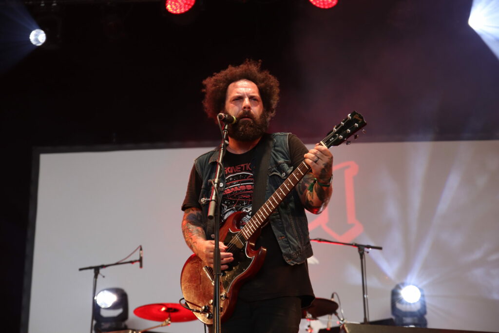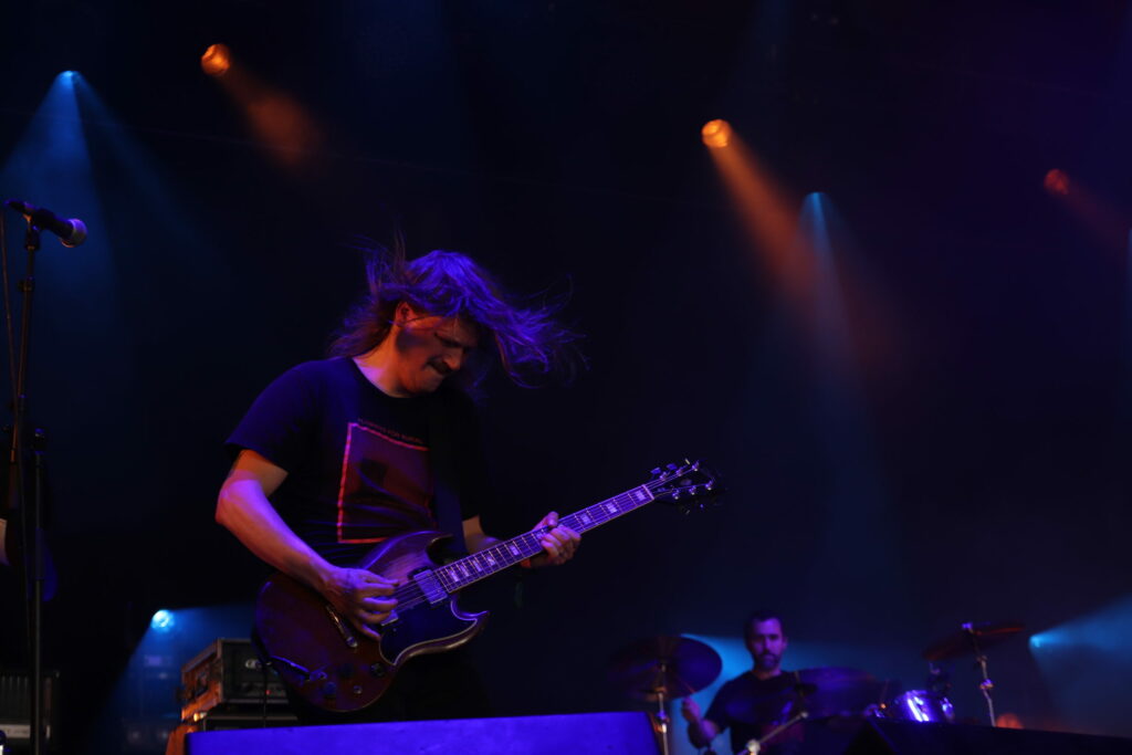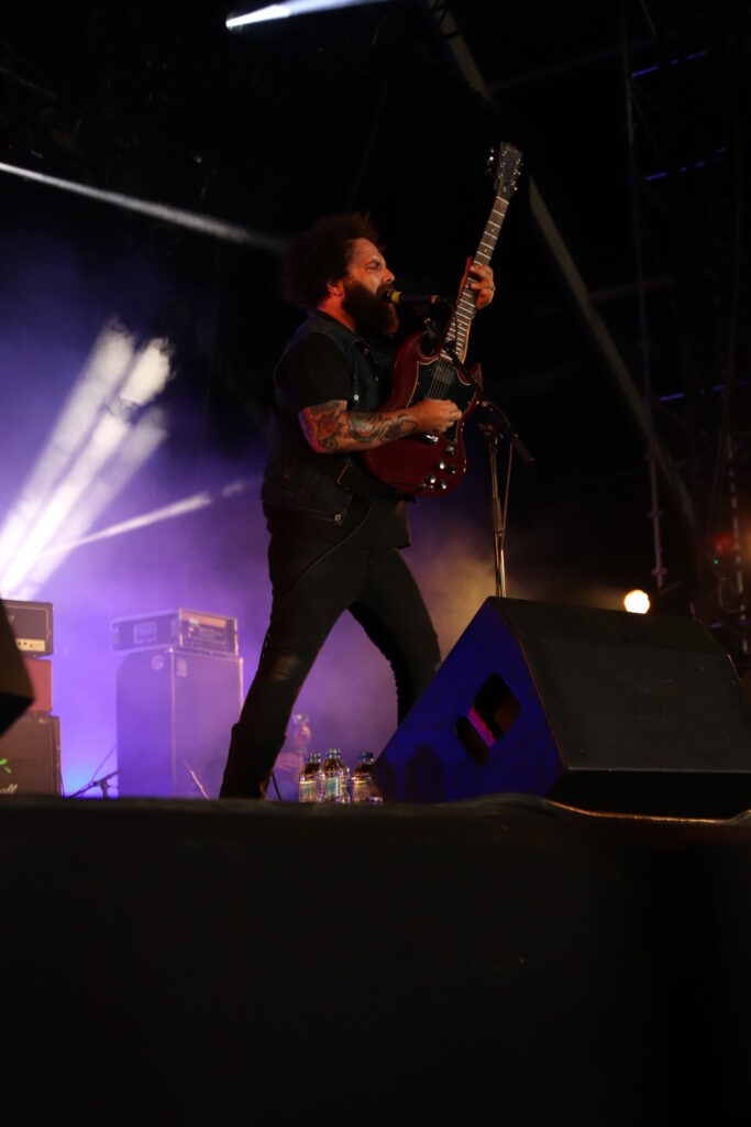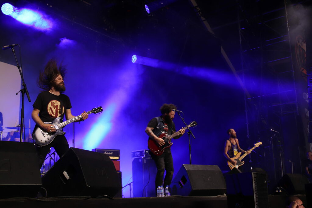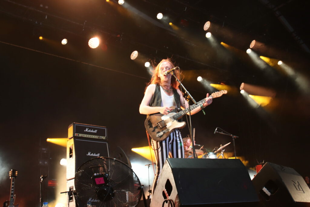 On retrouve rapidement nos repères Stoner dès les premières notes d’intro. Ça fuzz, c’est gras et on démarre par un groove bien appuyé et des soli aériens! Les Texans enchaînent avec un rock toujours bien épais et énergique, reposant sur le jeu de scène du frontman Tom Frank, chaussé de santiags peau de serpent blanches du plus bel effet, à la guitare mais aussi au micro, d’où il envoie son chant puissant et tout aussi gras et éraillé. Ça s’enjaille sur les titres suivants avec une accélération de rythme et des riffs ultra entraînants qui réveillent doucement une tente moyennement remplie. Tant pis pour les absents qui auront manqué les excellents « Electricity » et « Fear of the Dead » entre autre joyeusetés !