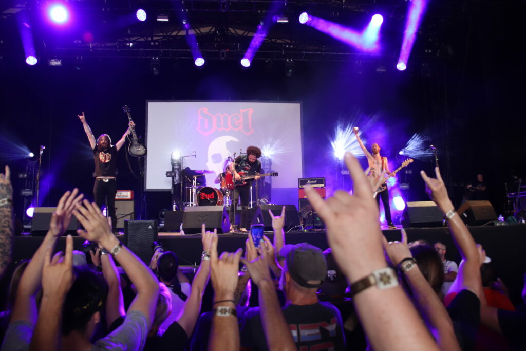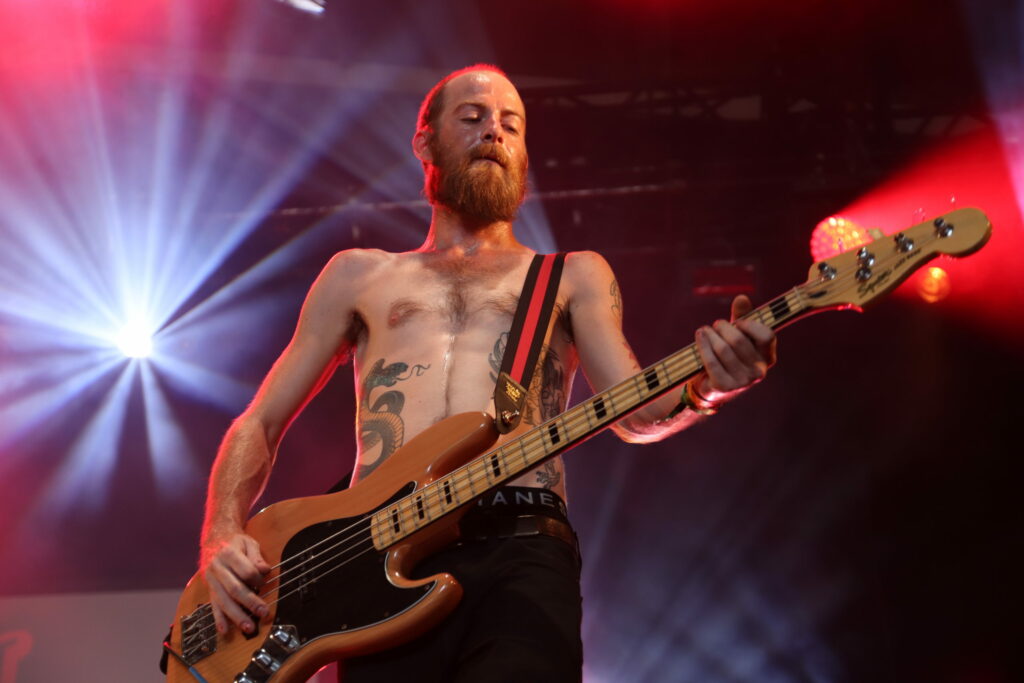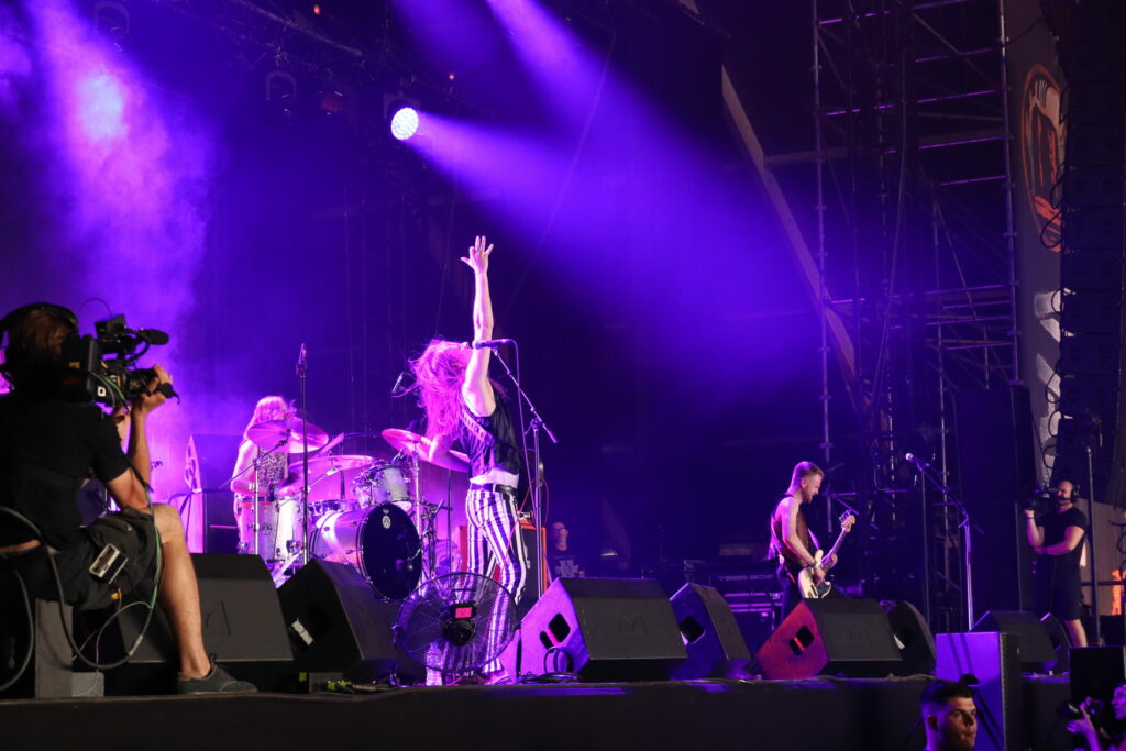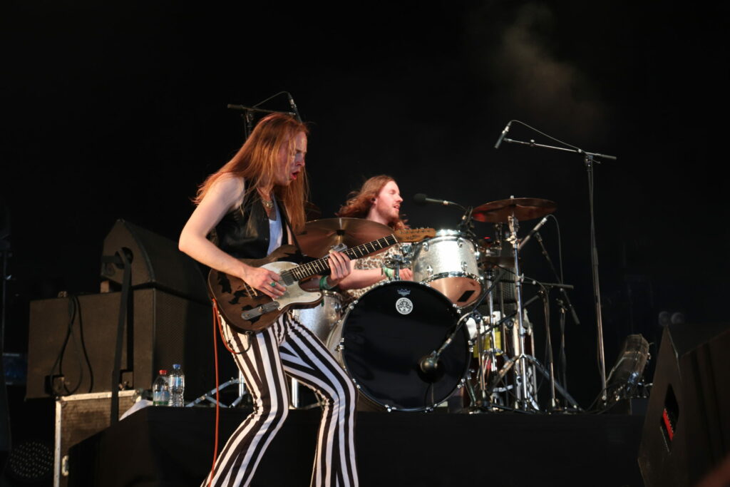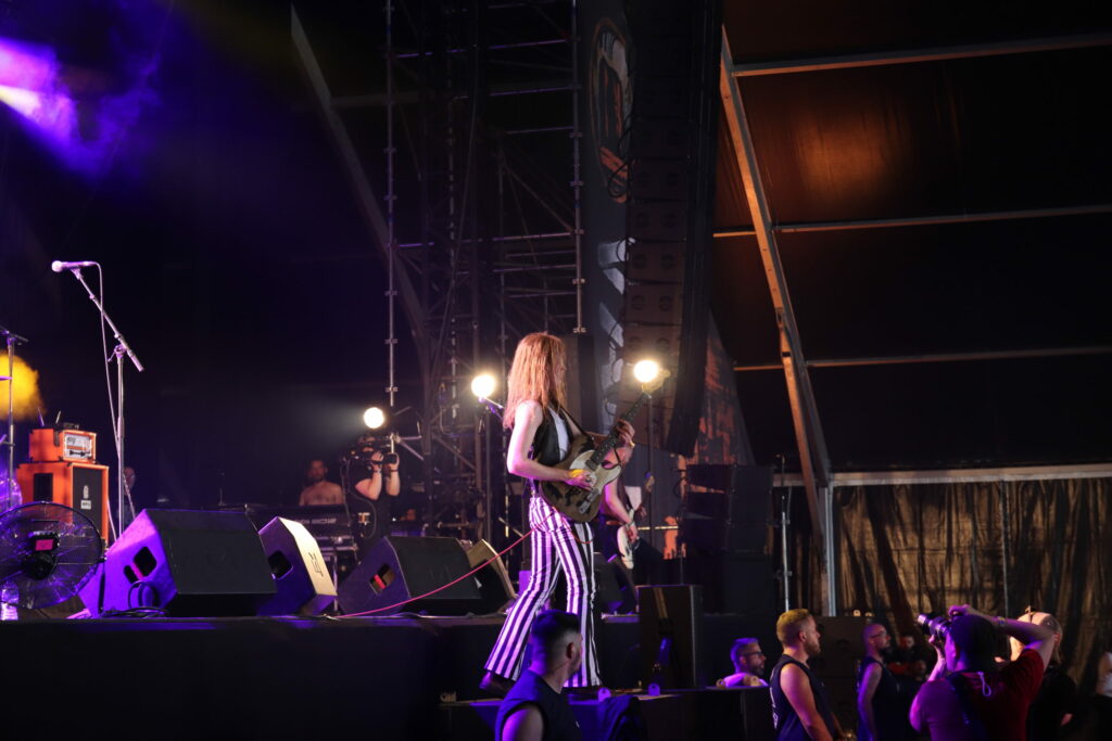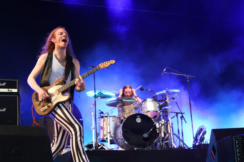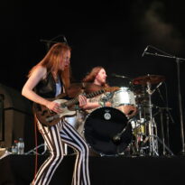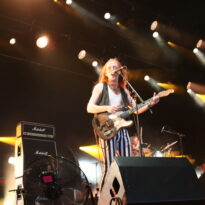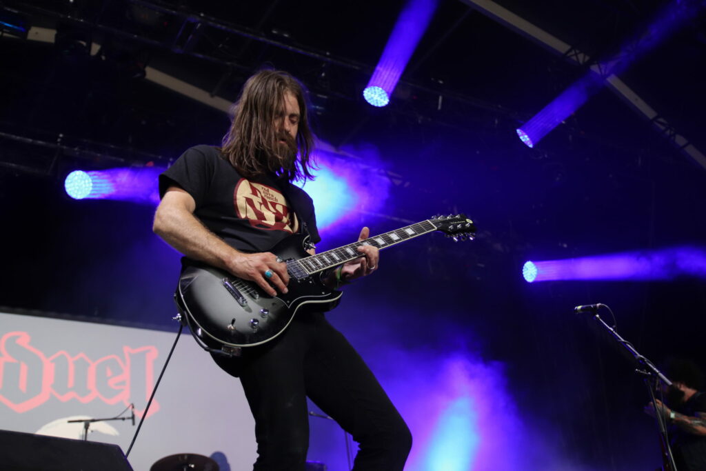 On retrouve rapidement nos repères Stoner dès les premières notes d’intro. Ça fuzz, c’est gras et on démarre par un groove bien appuyé et des soli aériens! Les Texans enchaînent avec un rock toujours bien épais et énergique, reposant sur le jeu de scène du frontman Tom Frank, chaussé de santiags peau de serpent blanches du plus bel effet, à la guitare mais aussi au micro, d’où il envoie son chant puissant et tout aussi gras et éraillé. Ça s’enjaille sur les titres suivants avec une accélération de rythme et des riffs ultra entraînants qui réveillent doucement une tente moyennement remplie. Tant pis pour les absents qui auront manqué les excellents « Electricity » et « Fear of the Dead » entre autre joyeusetés !