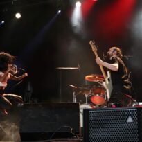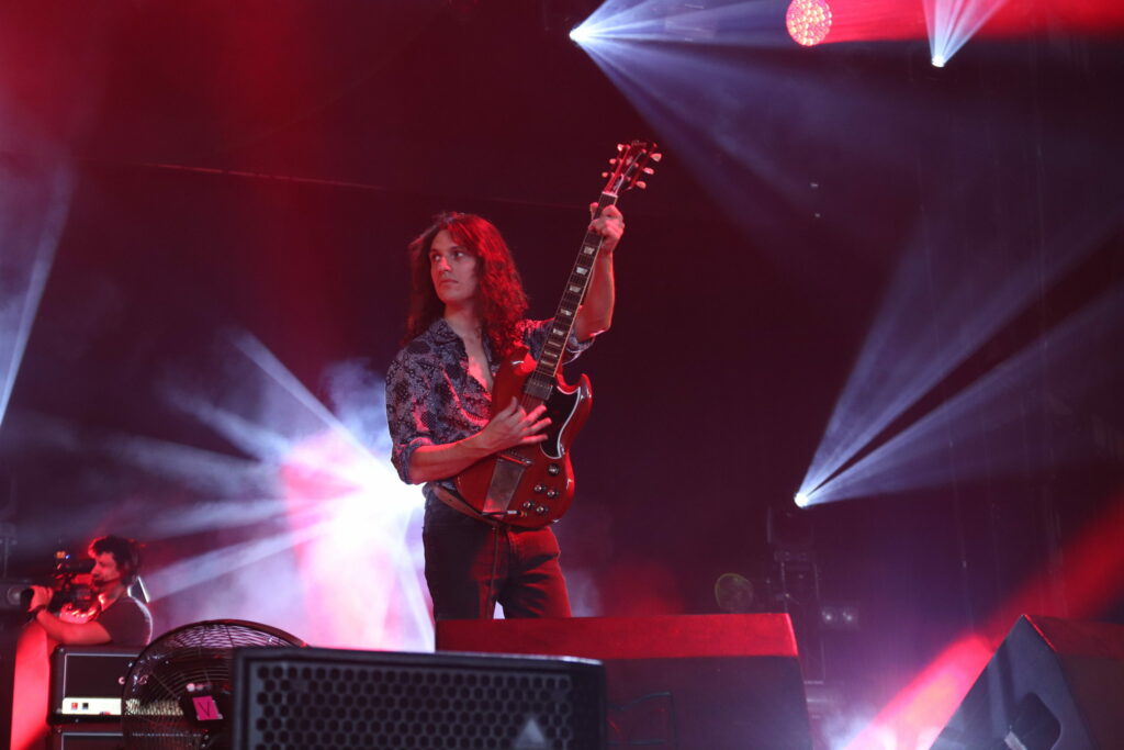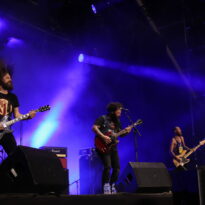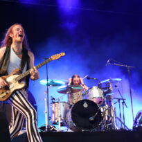 Les islandais de Vintage Caravan investissent une Valley au taux d’humidité proche des 100%, la température déjà élevée ne risque pas de baisser avec l’énergie communicative du trio et leurs compositions ultra rythmées et massivement entraînantes. Le public ne s’y trompe pas et sautille tout sourire ! Sur « Reset » et « On the Run », la température monte d’un cran quand les riffs s’affolent avec une basse toujours aussi profonde, ce qui emmène rapidement le public sur une belle sauterie ! Enfin ils commencent à défendre leur dernier album avec des titres de Monuments (« Can’t get you off my mind »…), plus rock que psyché, mais toujours aussi énergiques et bariolés. Maîtrisant la scène et leur set, ils mettent en avant leur capacité à jouer de leurs instruments avec classe et technique, et concluent sur une fin de show ultra rock ! La Valley est conquise par ce show digne des plus grands. Pour ceux qui voudraient les découvrir ou les revoir, ils tourneront en Octobre en France entre autres !