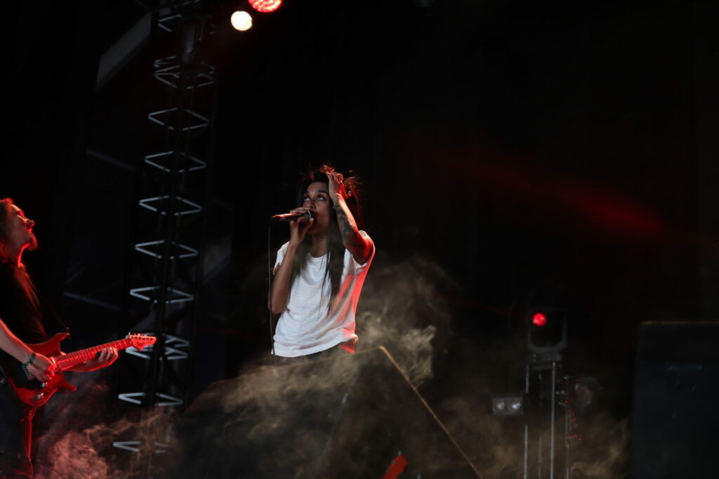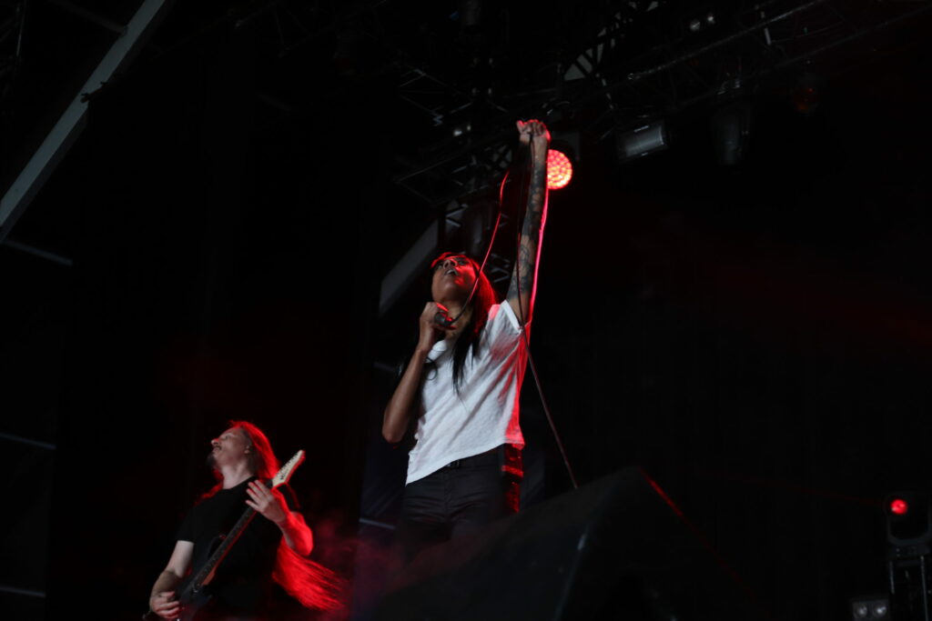 Point Mort propose un melodic post hardcore (black ?) assez torturé, auquel il faudra deux titres pour se caler avant que le set ne prenne forme, avec une belle énergie communicative de la chanteuse, entre scream, growl et chant clair. Une puissance vocale énorme qui surprend positivement l’audience quand on voit le gabarit de la dame! Belle prouesse vocale ! Un set bien maîtrisé, un groupe qui se lâche et une fin remplie d’émotion sur des râles écorchés. C’est avec les poils dressés que débute ce second jour de festival en donnant la tonalité plutôt Post de l’affiche de la Valley.