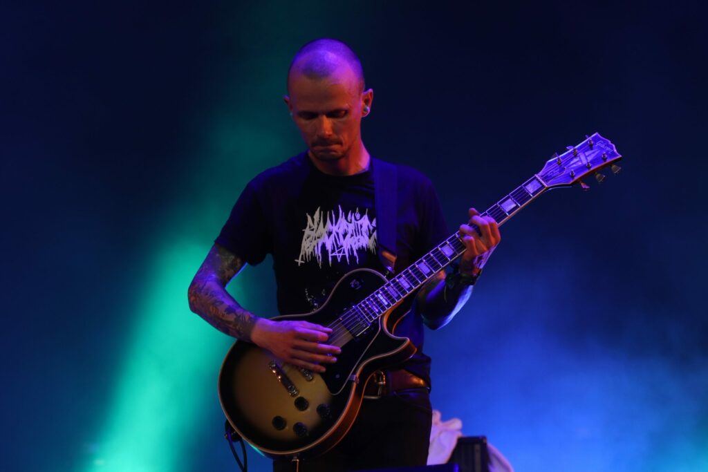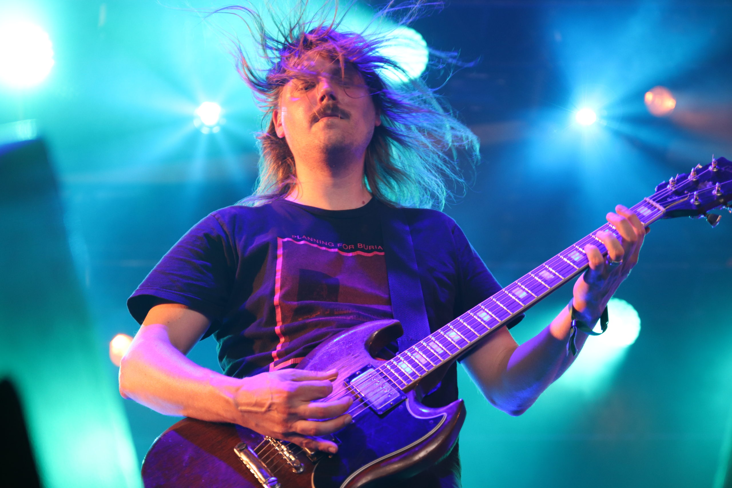 Le quatuor US rentre sur scène sans un mot (ils sont pas bavards dans le post instrumental) et installe directement ses mélopées post métal pour nous cueillir à chaud. Les riffs lancinants et la lourdeur de la basse font vrombir le sol moite. Les gouttes perlent rapidement sur les fronts et une torpeur tropicale massive s’abat sous la Valley. Pour autant Pelican, ce n’est pas qu’une massivité sonore, ce sont aussi des mélodies terriblement entraînantes qui montent et redescendent pour mieux se déconstruire et nous anéantir. Les brefs interludes clairs permettent de reprendre, un peu, son souffle et de laisser son esprit s’envoler quelques courts instants avant de vite s’écraser de nouveau sur terre.