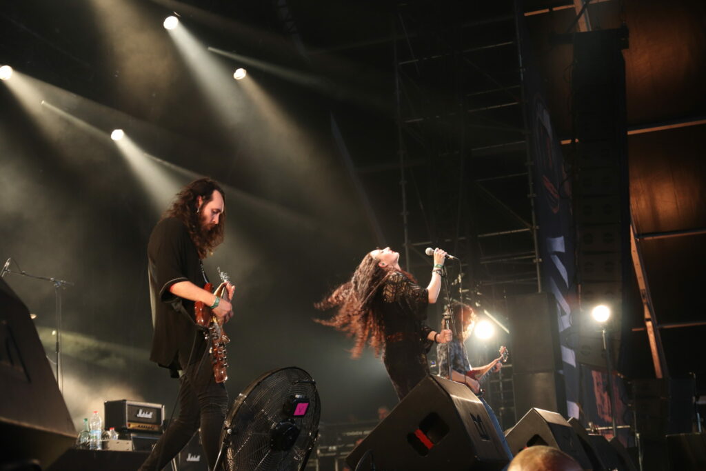 C’est au tour des italiens de Messa de nous envoûter avec leur doom mélodique teinté de multiples influences. Après un démarrage tout en douceur mélancolique, le titre « Horse » de leur 3ème album permet de bien mettre en marche leur set. La dualité de Messa fait mouche, avec la douceur et la suavité de la voix de Sara, sur la lourdeur doomesque des instrumentistes qui l’accompagnent. La partition vocale est de haute volée, elle porte les morceaux et emporte le public avec. La Valley n’est pourtant pas pleine pour ce show qui ne finit pas de s’améliorer. Si l’on compare avec leur dernière venue ici même, la qualité de chant est en hausse et ce n’est pas pour nous déplaire. Messa a tous les éléments pour poursuivre son ascension sur la scène doom et stoner !