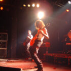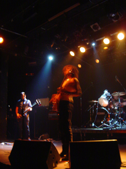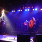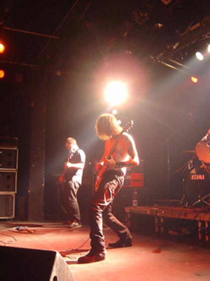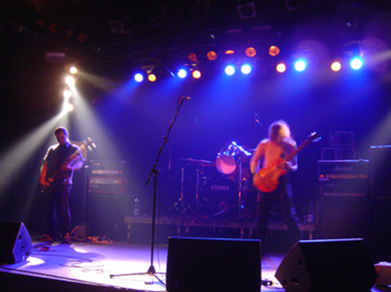 Le trio ravageur qui du coup était seul pour animer la soirée débarqua sur scène en toute grande forme sur le coup des 10 :30 pour nous livrer un show des plus agressifs. Comme à l’accoutumé avec eux, la poésie n’était pas à l’honneur. Des batteries ravageuses, une basse épileptique, des riffs assourdissants et des vociférations d’aliénés, ce concert ne fut que débauche de bruits. Les vu-mètres dans le rouge en permanence (merci les tympans) j’avais pas jugé utile de me protéger) le show très redondant nous permit d’admirer la maestria du chef de meute à la gratte et de ses deux acolytes à la rythmique. Un truc que j’avais jamais vu sur scène se passa ce soir-là : une corde cassa sur la basse et, pendant que son détenteur procédait au changement avec ses ustensiles, les deux derniers complices poursuivirent le show sans même se donner la peine d’attendre que l’instrument ne vrombisse à nouveau. Accros à la rapidité de leur set, pendant lequel un nombre restreint de paroles furent échangées avec le public, le tapage peu mis en valeur par une sonorisation inspirée par les artilleurs de La Somme livra tout de même quelques moments de pure furie sonique assez plaisante à l’instar de ‘Speed Wolf’ tiré de ‘Surrounded By Thieves’.