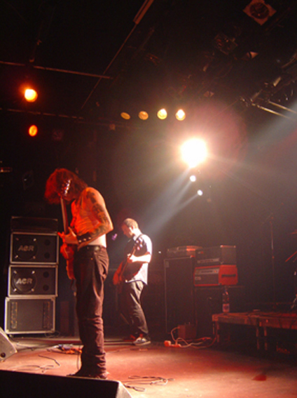 Le duo anglais, qui a fraîchement rejoint Mondo Generator pour pousser la chansonnette avec Nick, n’a pas jugé utile de venir jusqu’à Genève. J’y crois à peine : ces types-là étaient prévus pour la tournée et hop ! Disparu de la circulation ! Les Ricains se pointent donc seuls ce mardi soir à Genève ; ce fût d’ailleurs le cas aussi le soir précédent. Bref passons sur ce sujet qui eut tout de même le doux don de m’énerver vu que c’étaient bien eux qui avaient motivé mon déplacement dans le sacro-saint temple genevois du rock. J’avais déjà vu High On Fire sur scène accompagné de Mastodon il n’y a pas si longtemps et en toute franchise j’avais pas passé une soirée désagréable, mais n’aurais pas bougé juste pour ces trois lascars.