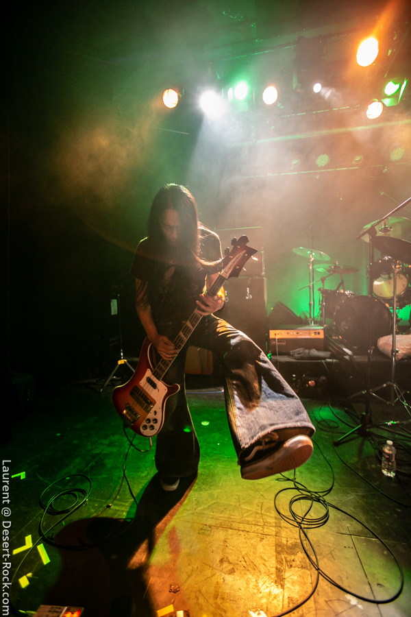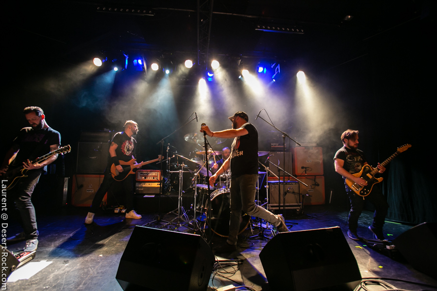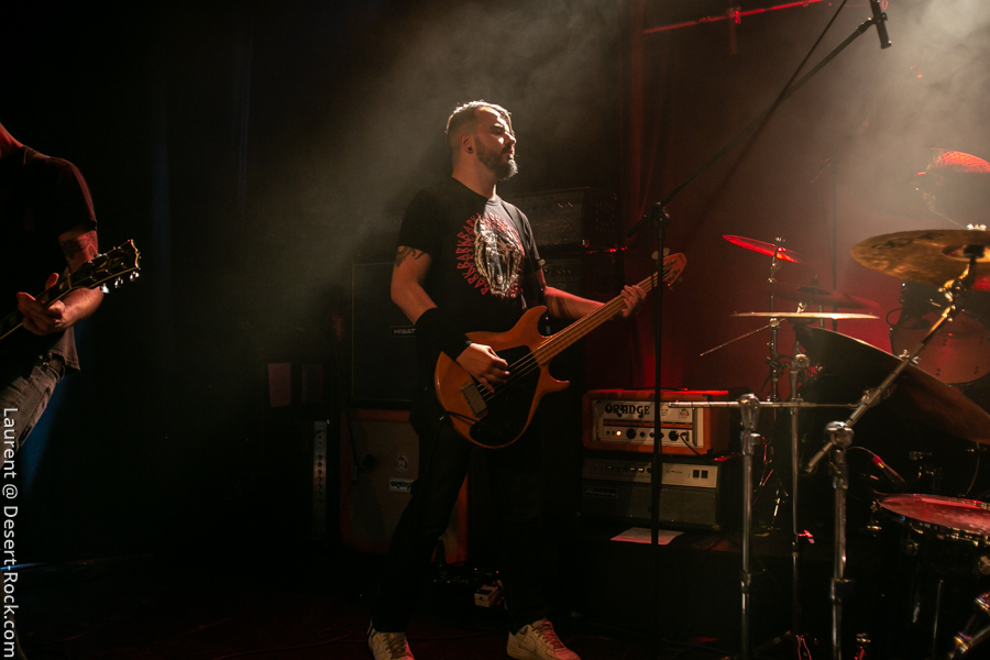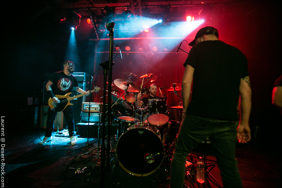 Entrée en matière solide pour la soirée : les belges de Your Highness montent sur scène et il ne leur faudra pas plus de 2 ou 3 titres pour convaincre un public qui commence tranquillement à remplir la salle (le début de soirée est probablement un peu trop agréable en buvant des mousses en terrasse…). Solide, carré musicalement, le quintette balance son sludge puissant sur une audience bien trop contente de prendre sa claque en bonne et due forme. Dynamique sur scène, lourd dans le riff, puissant dans les vocaux, Your Highness se distingue du « tout venant sludge » par une attitude scénique qui emprunte un peu au hardcore, et par une musique où riffs punchy se mixent à des plans mélodiques et des structures efficaces et bien mémorables. Alliant puissance et compos qualitatives, le groupe en a encore sous la pédale. A suivre…