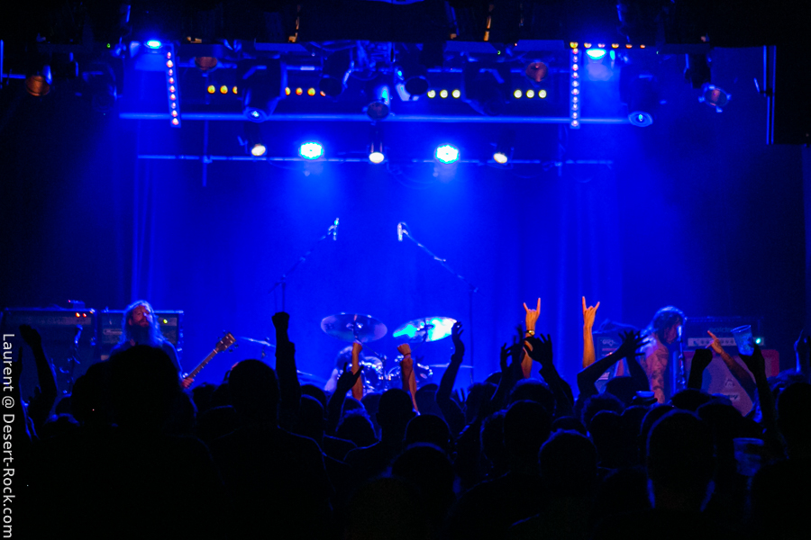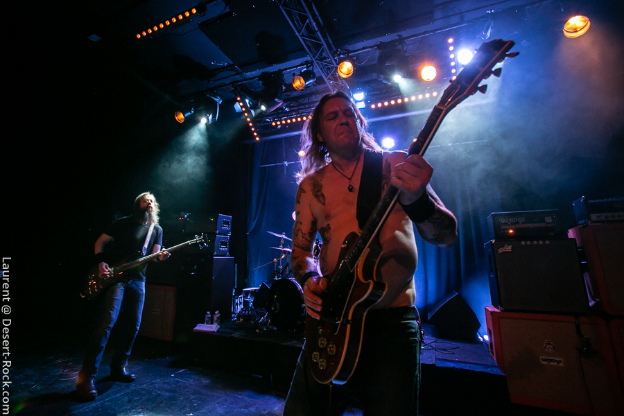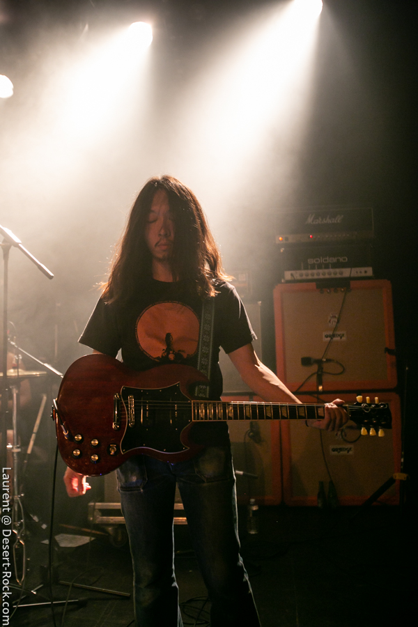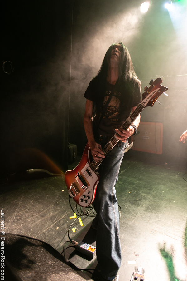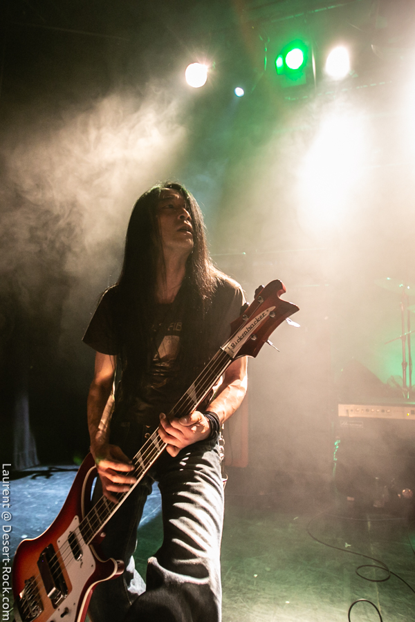 Mise en place rapide, pas très formelle (quelques ajustements de dernière minute), on sent que les Church of Misery sont peinards, sûr d’eux. Il faut dire que ça fait maintenant deux semaines que les japonais sont sur la route et leurs prestations ont laissé des traces (cf notre propre expérience à Berlin il y a quelques jours). Donc on s’attend à une claque. Et on la prend… en tendant la deuxième joue, s’il vous plaît ! Un très bon « El Padrino » introduit le set du jour qui procède à un crescendo remarquable : coup d’accélérateur au premier quart d’heure, premiers pogo ensuite (un « Born to Raise Hell » très très chaud avec des pogos rudes dans le public), puis slams à gogo avant l’apothéose ! « I Motherfucker » emporte le ponpon du plus gros mosh pit de leur set. Même Takano, leur vocaliste azimuté, se lance lui-même dans une paire de slams pour finir le set avec le sourire et un feeling hors norme.Très très gros set des japonais, qui confirment leur statut de valeur très sûre du stoner/doom international désormais. Jumelés à un public à la fois bon enfant et connaisseur, l’équation est impeccable.