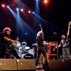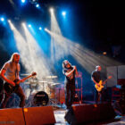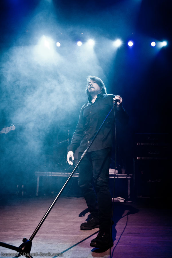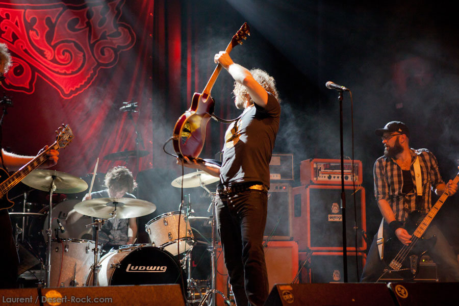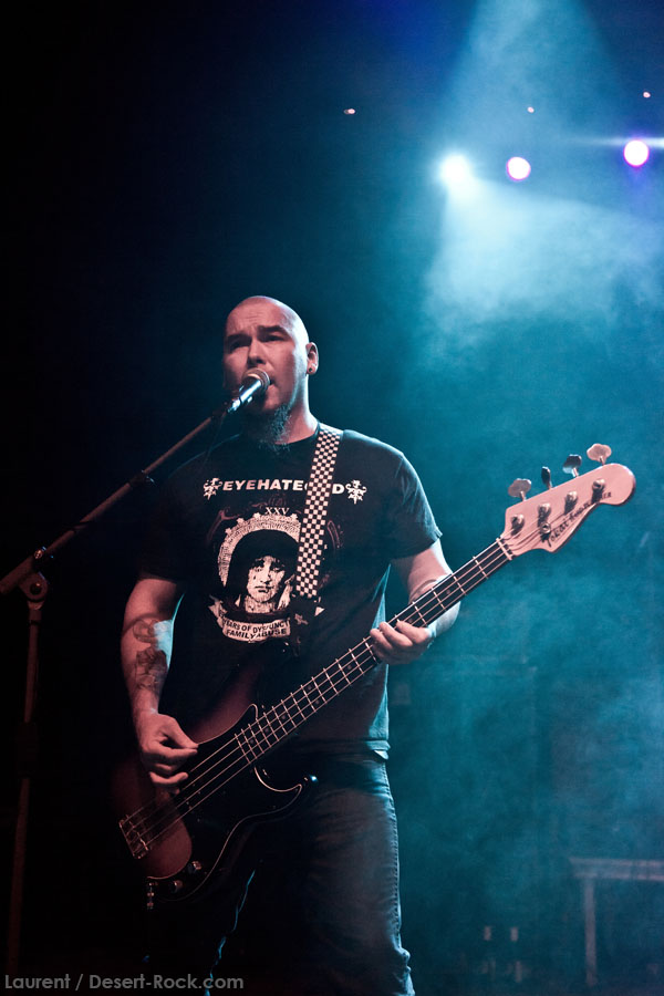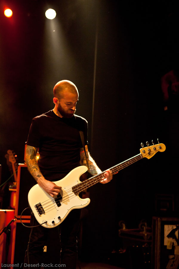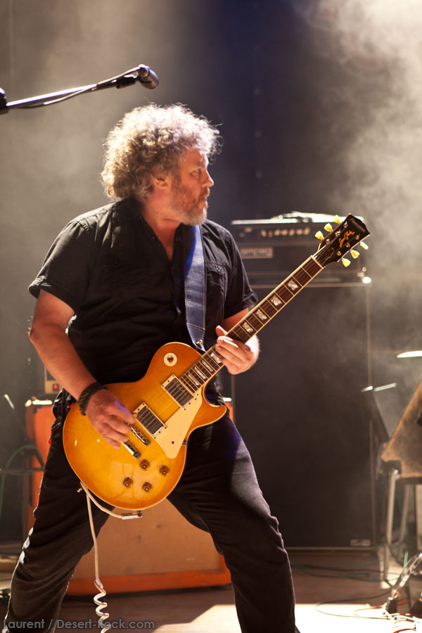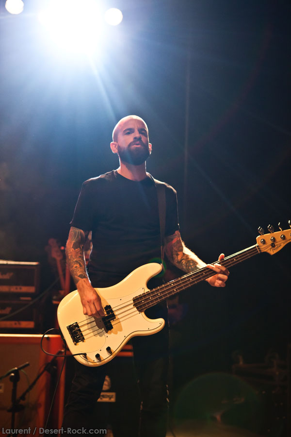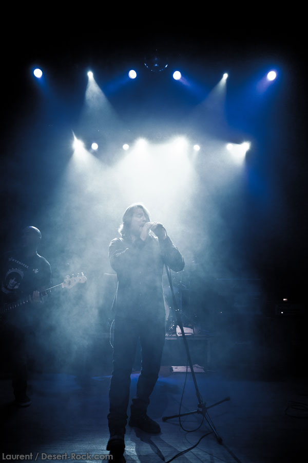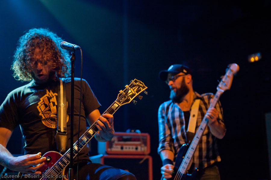 Mais le public s’en fiche, au final il est venu pour Garcia, et il a ce qu’il voulait, même si une set list plus orientée « Kyuss » aurait forcément plus cartonné. Une doublette Slo-Burn plutôt maline pointe le bout du nez vers la fin du set, avec « July » (qui tombe un peu à plat devant un public finalement pas si averti que ça) enchaîné avec la version « Garcia » de « Cactus Jumper » (« All these walls »). Et là, constat effarant (qui ne nous avait pas marqué jusqu’ici), Dieu ouvre la bouche à destination de ses apôtres ! Et oui, il aura fallu attendre une grosse heure de set, une petite quinzaine de chansons, pour que Monsieur Garcia s’enquérisse de l’humeur de son public en lui adressant la parole pour la première fois de la soirée ! Alors qu’il engage un « Supa Scoopa… » des familles, on se dit que les planètes sont alignées et que l’explosion attendue est imminente. Et… fini ! Le groupe quitte la scène… Un petit moment de doute passe avant de voir le public revenir pour ce qu’on imagine un baroud d’honneur en bonne et due forme, sentiment confirmé par le choix d’un « Green Machine » qui fait de sérieux dégâts dans un pit devenu incandescent. Pouvant se reposer sur des braises ardentes, c’est le moment que choisit le groupe pour… quitter à nouveau la scène, sans rappel cette fois ! Toujours pas de « Whitewater », prévu sur la set list quasiment chaque soir…