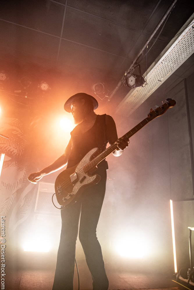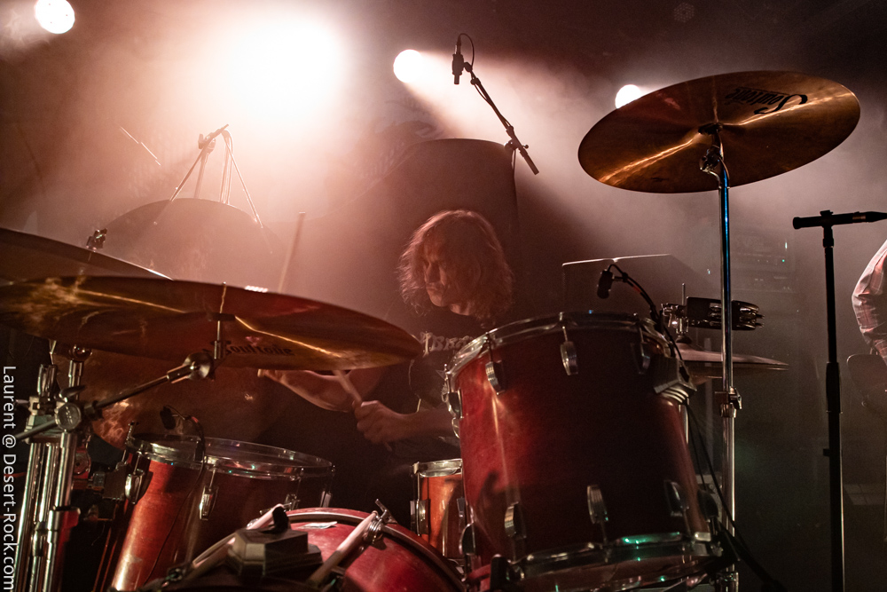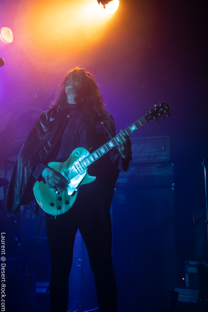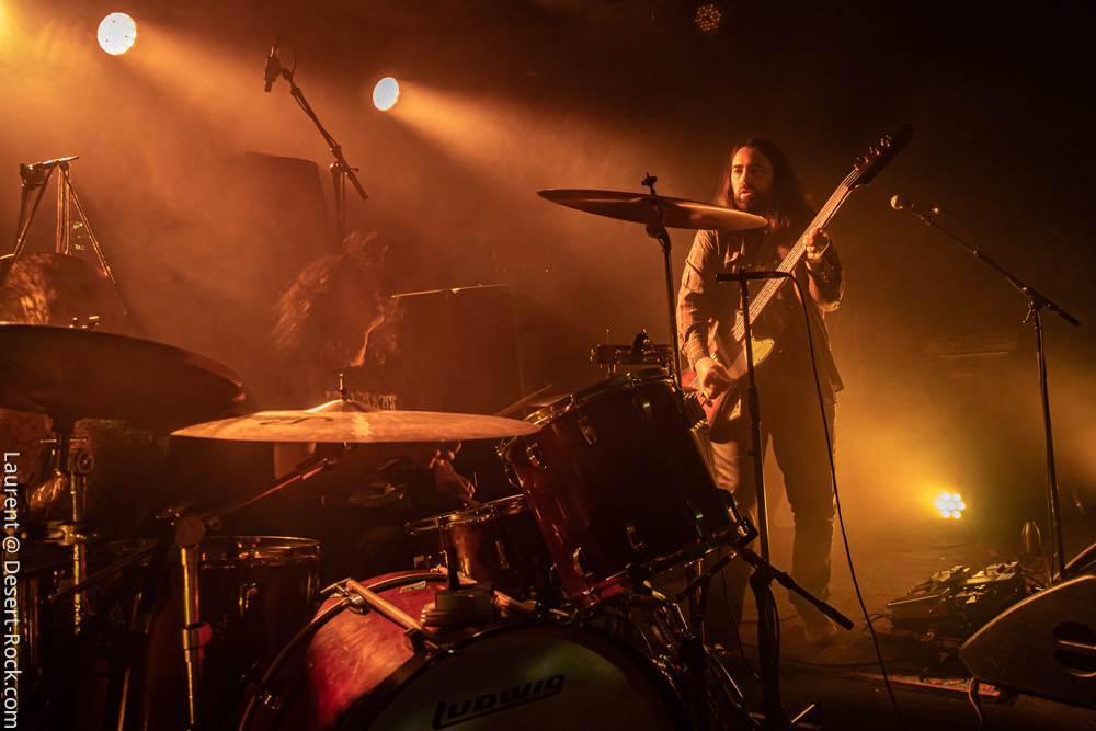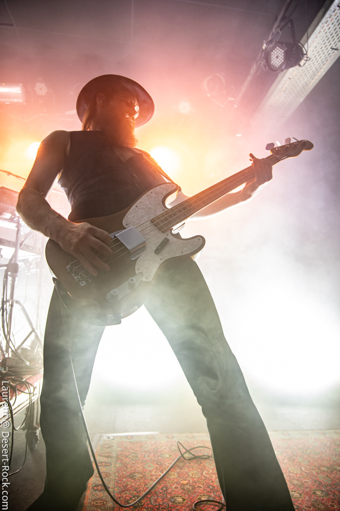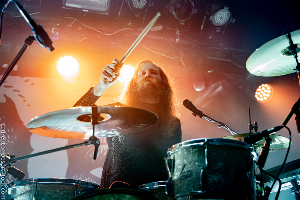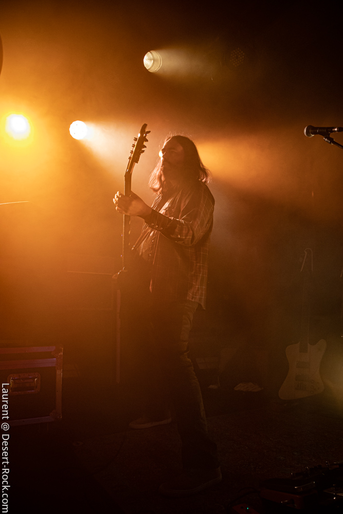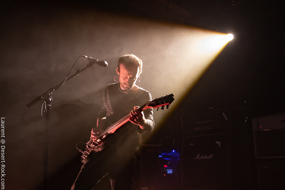 Ambiance toute particulière puisque Mars Red Sky est ici chez lui en région bordelaise. Mais ce n’est pas pour autant qu’ils vont se la jouer relax, bien au contraire : le trio entame son set avant l’heure prévue (ça lui permet de caser un titre supplémentaire, beaucoup de groupes devraient s’inspirer de cette heureuse stratégie), sobrement, par un ronflant « The Light Beyond ». Sur plus de 45 minutes de concert, le groupe à la discographie bien garnie doit être sélectif, laissant de côté, évidemment, des titres qu’on aimerait aussi entendre, mais se concentrant sur un set de « basiques », leur panoplie de titres clés, à l’efficacité garantie sur facture… dont quelques nouveaux morceaux ! La set list est similaire à celle de la veille, et les points forts se trouvent aux mêmes endroits. On notera en particulier l’efficacité des pourtant très jeunes extraits du dernier album, et en particulier le superbe enchaînement « The Proving Grounds » / « Crazy Hearth », qui ont déjà gagné leurs galons dans la set list de référence du groupe, avec en particulier des lignes vocales remarquables et entêtantes. Le set se finit par un large segment « old school » pour bien équilibrer un concert qui aura ravi un public de connaisseurs.