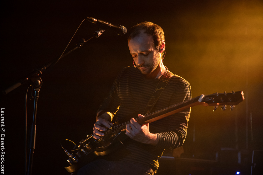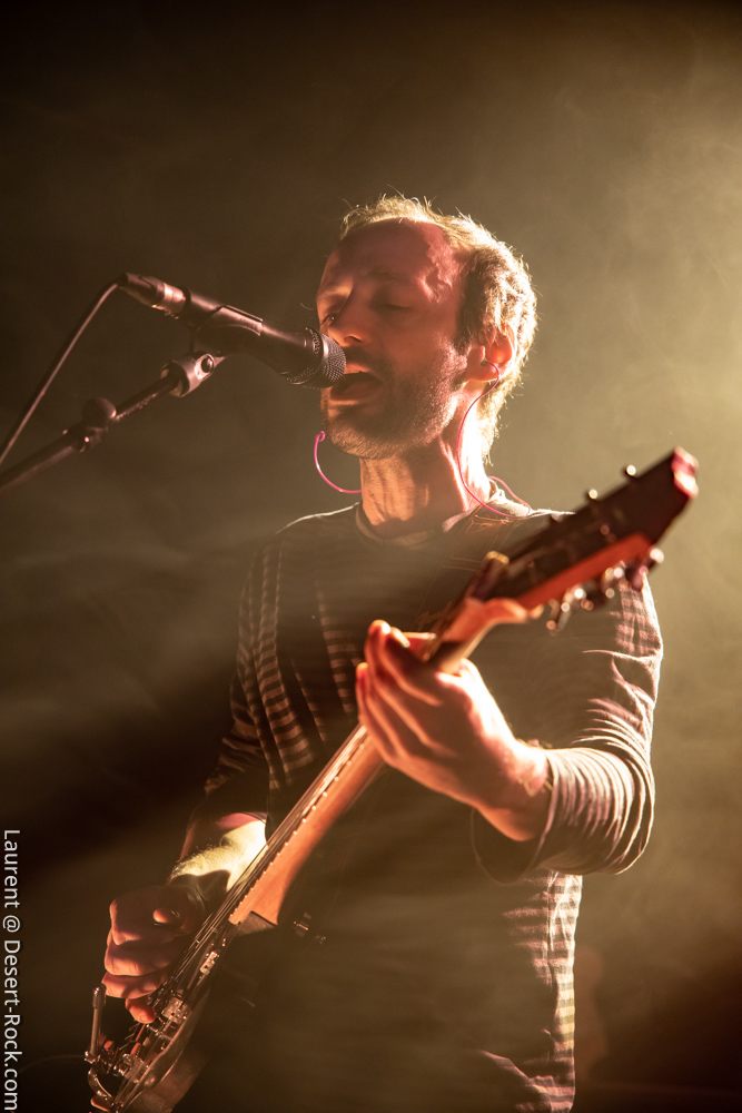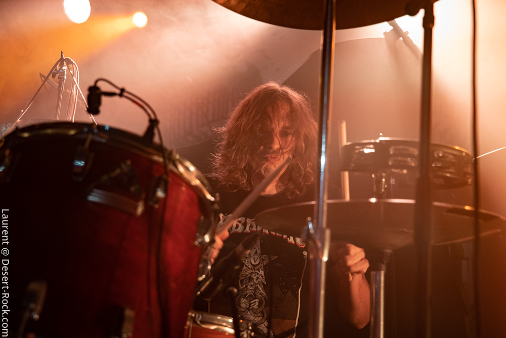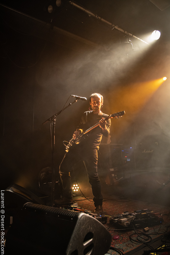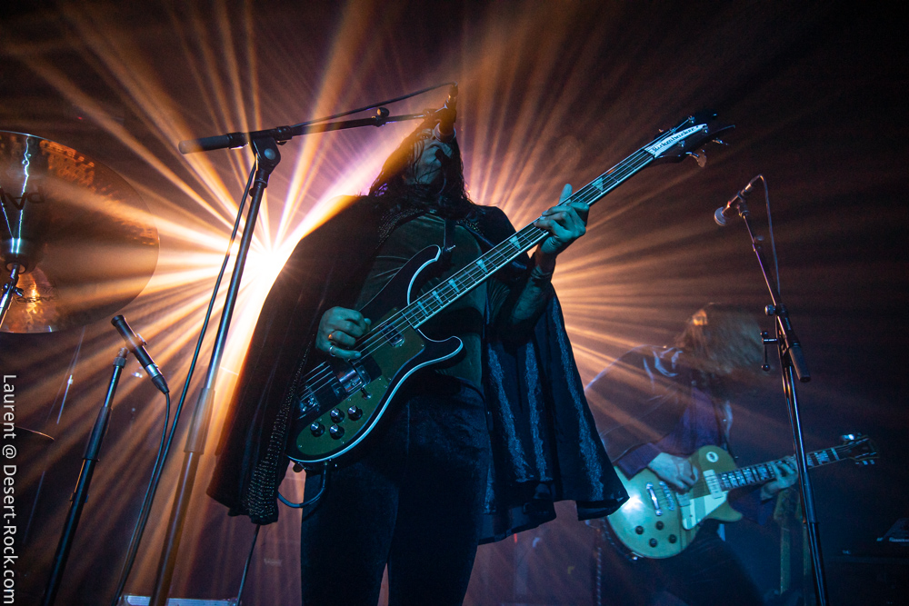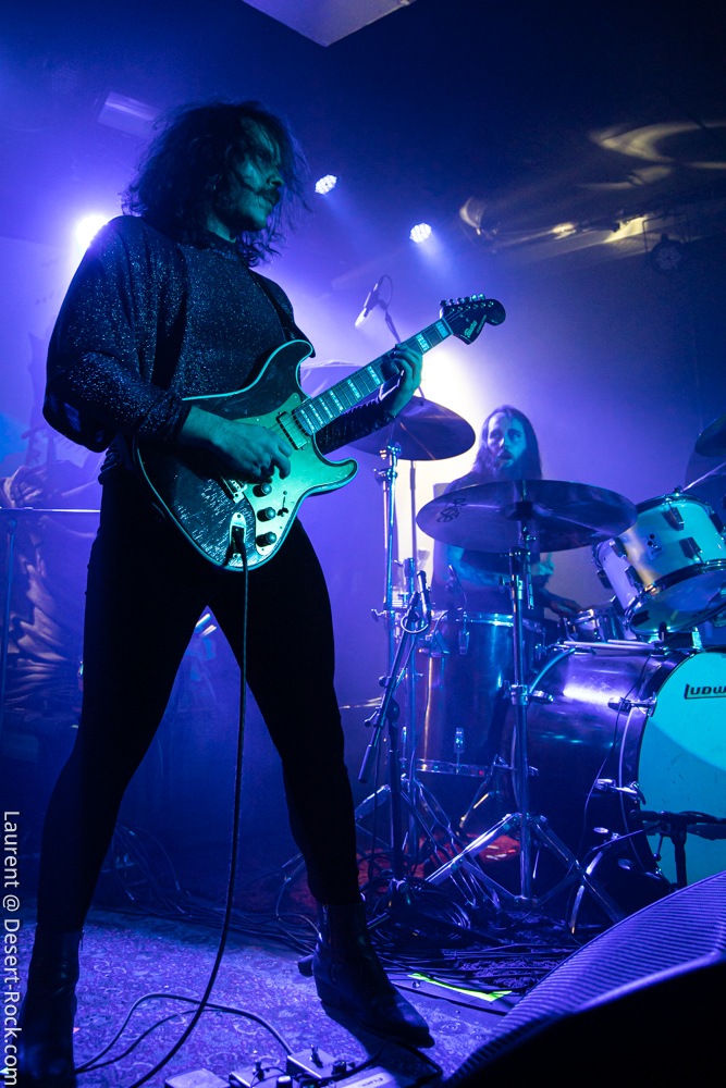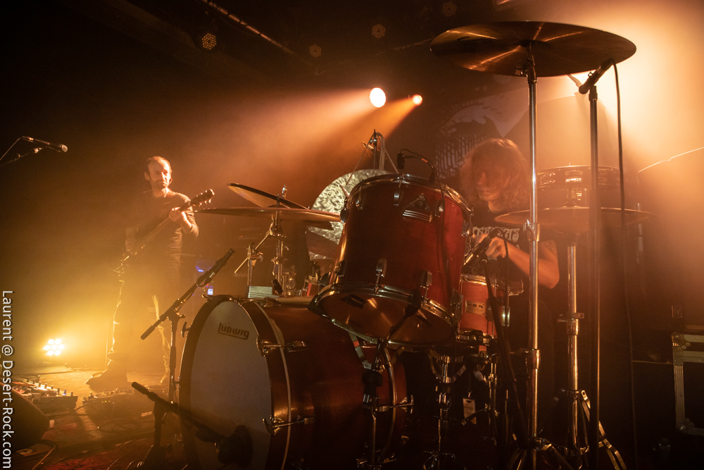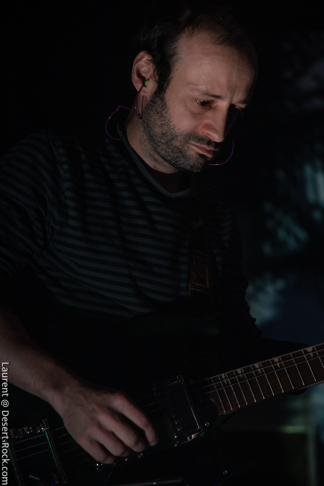 Ambiance toute particulière puisque Mars Red Sky est ici chez lui en région bordelaise. Mais ce n’est pas pour autant qu’ils vont se la jouer relax, bien au contraire : le trio entame son set avant l’heure prévue (ça lui permet de caser un titre supplémentaire, beaucoup de groupes devraient s’inspirer de cette heureuse stratégie), sobrement, par un ronflant « The Light Beyond ». Sur plus de 45 minutes de concert, le groupe à la discographie bien garnie doit être sélectif, laissant de côté, évidemment, des titres qu’on aimerait aussi entendre, mais se concentrant sur un set de « basiques », leur panoplie de titres clés, à l’efficacité garantie sur facture… dont quelques nouveaux morceaux ! La set list est similaire à celle de la veille, et les points forts se trouvent aux mêmes endroits. On notera en particulier l’efficacité des pourtant très jeunes extraits du dernier album, et en particulier le superbe enchaînement « The Proving Grounds » / « Crazy Hearth », qui ont déjà gagné leurs galons dans la set list de référence du groupe, avec en particulier des lignes vocales remarquables et entêtantes. Le set se finit par un large segment « old school » pour bien équilibrer un concert qui aura ravi un public de connaisseurs.