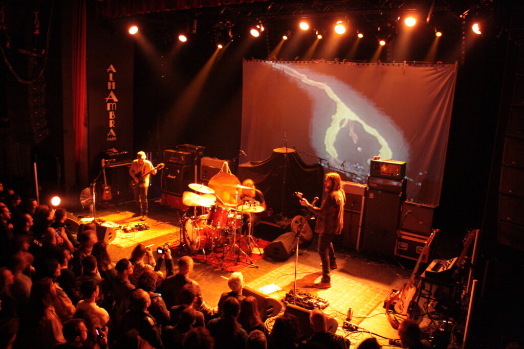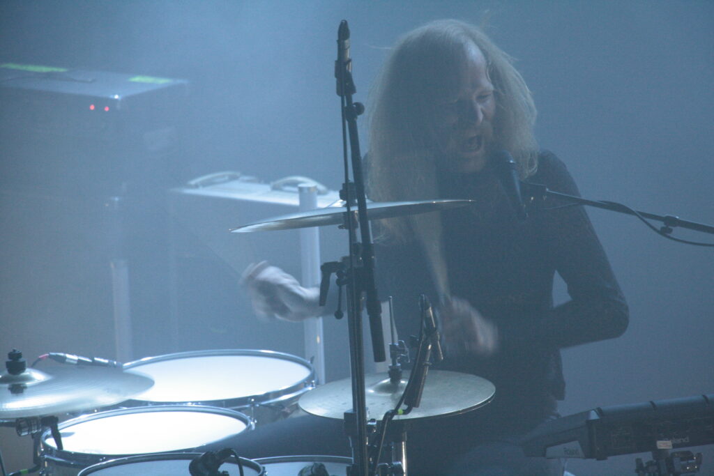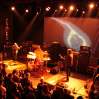 Depuis la sortie de The Task Eternal, les avis sont partagés sur le dernier opus de Mars Red Sky… Il est donc grand temps de découvrir si ces nouveaux morceaux passent l’épreuve du live. Lumière tamisée, écran en fond de scène, nos trois amis girondins s’installent et balancent en guise d’amuse-bouche « The Light Beyond ». Premier constat : le son est juste fantastique, réglé aux petits oignons et la basse de Jimmy fait vibrer les coursives du balcon. La mise en scène moins sombre que celle d’Hällas permet de profiter du spectacle comme il se doit. Et après avoir entendu les nouveaux morceaux en condition réelle (dont « Collector », « The Proving Grounds » et un fabuleux « Crazy Hearth » magnifié par la voix de Julien), il est évident que The Task Eternal est un album qui se vit plus qu’il ne s’écoute. Comme à son habitude, Jimmy n’est pas avare en remerciements ni en petites blagues bien senties (que serait Mars Red Sky sans les intermèdes de Jimmy !), Julien est en grande forme et c’est peu dire que Matt a lui aussi une sacrée patate vu la façon dont il va maltraiter sa batterie ! « Hovering Satellites » (tiré de Stranded In Arcadia) et « Marble Sky » (extrait du premier opus) sont eux-aussi de la partie. Évidemment, c’est sur un « Strong Reflection » à la sensualité bestiale qui concluera un set parfait à tous points de vue : un son énorme, un public en osmose et de nouvelles compositions taillées pour la scène. Bravo les gars !