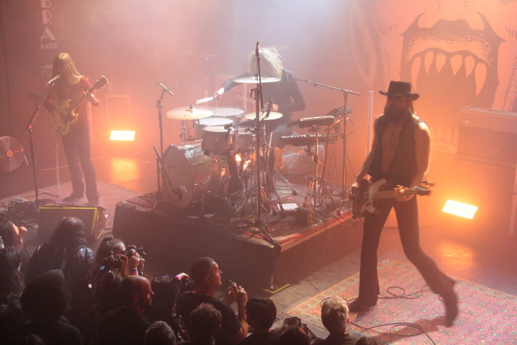 Quand le barnum Kadavar se déplace, autant vous dire qu’il ne reste que poussière et gravats derrière lui. Kadavar, c’est une force de la nature qui donne l’impression de ne jamais forcer… Et ceux qui les ont déjà vus sur scène vous le diront : les patrons, ce sont eux ! Dès l’installation du groupe, on n’est pas dépaysés : Christoph « Lupus » Lindemann, sa barbe et sa guitare à gauche, Simon « Dragon » Bouteloup, son chapeau et sa basse à droite et au milieu, Christoph « Tiger » Bartelt, sa nouvelle superbe moustache (bye bye la barbe ZZTopienne) et sa batterie bien au centre, presque collée au nez du premier rang.