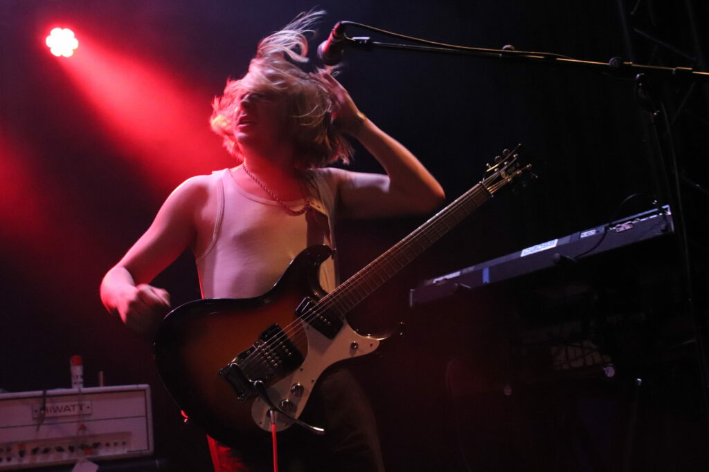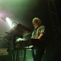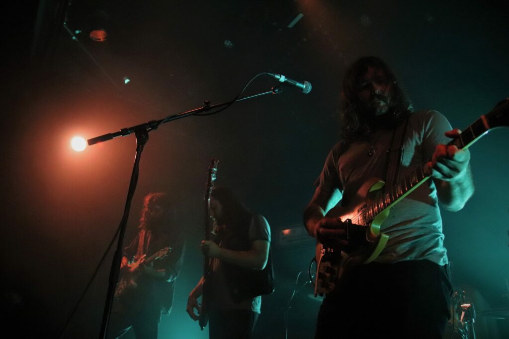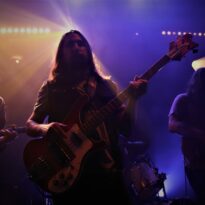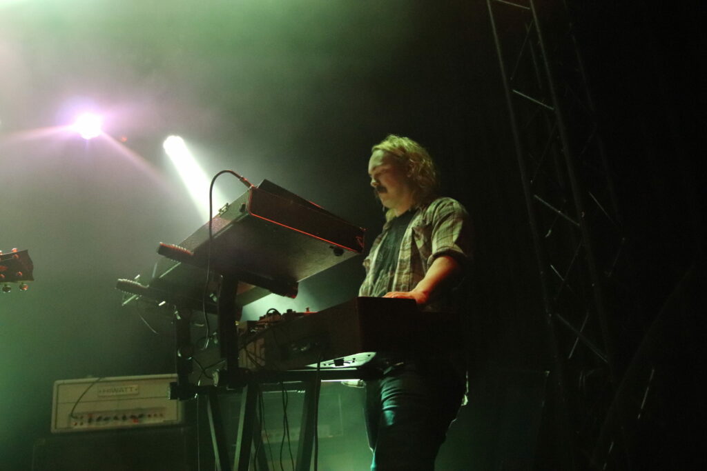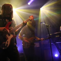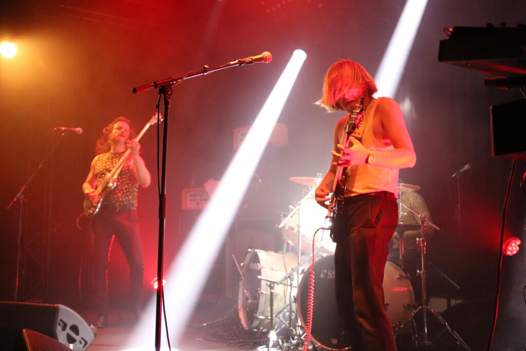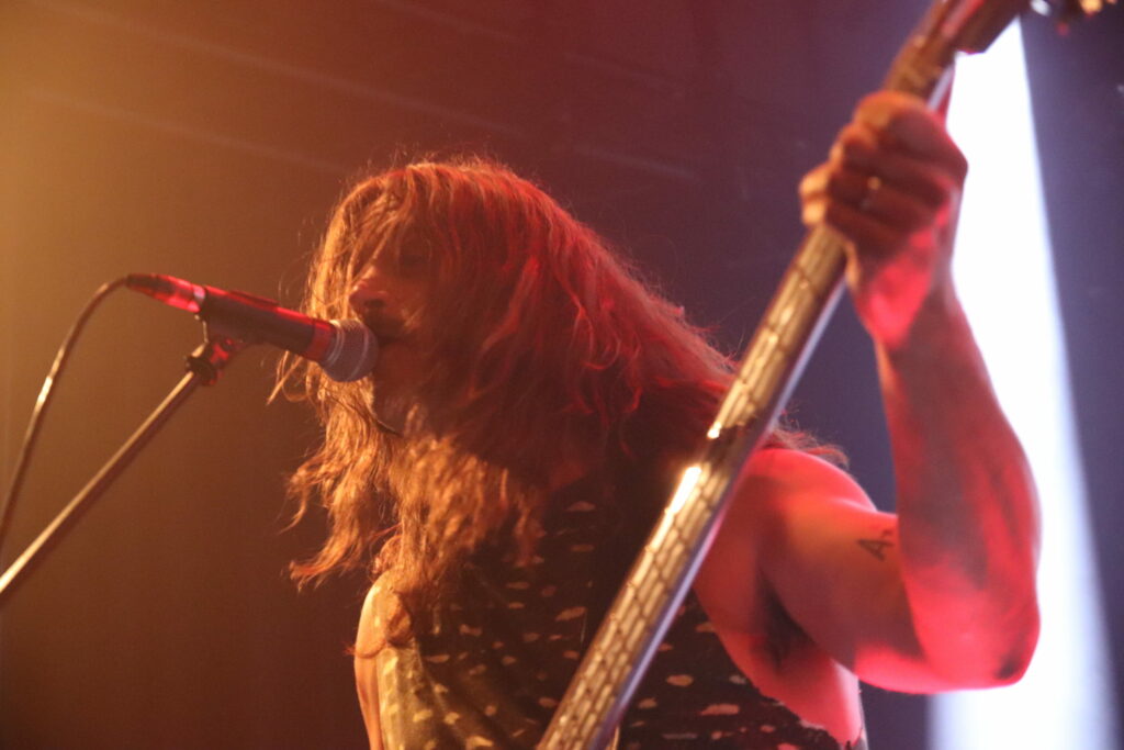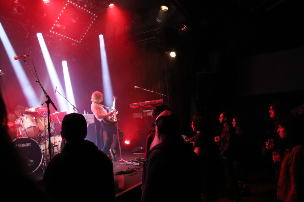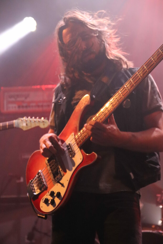 Le son de la Rickenbacker écrase l’assemblée de sa présence et sous les doigts de Anthony Meier qui tient aussi le même manche pour Radio Moscow, autant dire qu’en termes de maîtrise, cela se pose là. N’allons pas croire cependant que les autres musiciens sont des perdreaux de l’année, ils emportent les cœurs et les âmes, livrant des duos de guitare qui se répondent et se complètent à merveille ou encore assommant l’assemblée de la frappe puissante mais précise du batteur. La musique est brillante, intelligente et sensible et il est difficile (Pour ne pas dire impossible) en regardant autour de soi de trouver quelqu’un qui ne soit pas conquis. Sacri Monti illumine la scène de sa cohésion, porté par sa musique et un set light parfait pour cette salle qui n’est pas un Zenith mais qui a su investir dans des atours faits pour mettre en avant les artistes. Avec un clavier qui ne sombre pas dans le cliché tout babos, Sacri Monti convoque néanmoins des vibrations Kraut dans des compositions qui donnent du grain à moudre à chacun des musicien. Voilà une formation que l’on a hâte de retrouver tant en live que sur album