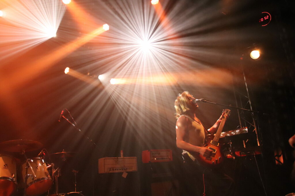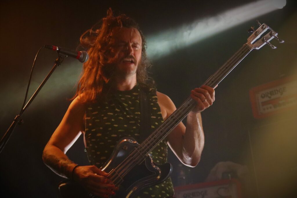 Je dois reconnaître que si les gars m’avaient laissé un souvenir impérissable lors de leurs derniers passages en France, cette fois il y a un je ne sais quoi d’absent. Un truc indéfinissable qui laisse songeur sans pour autant nous pousser à bouder notre plaisir. Il faut dire que Kaleidobolt est abonné aux plateaux contrastés, ouvrant avec leur musique puissante et échevelée pour des groupes bien plus “sages” et portés sur les riffs planants. Il est impossible cependant de nier l’incroyable puissance vocale du guitariste ainsi que la force de frappe quasi destructrice de la batterie pendant que le bassiste joue de dextérité sur ses quatre cordes. Une belle entrée en matière cependant qui aura laissé une salle à bonne température pour la suite.