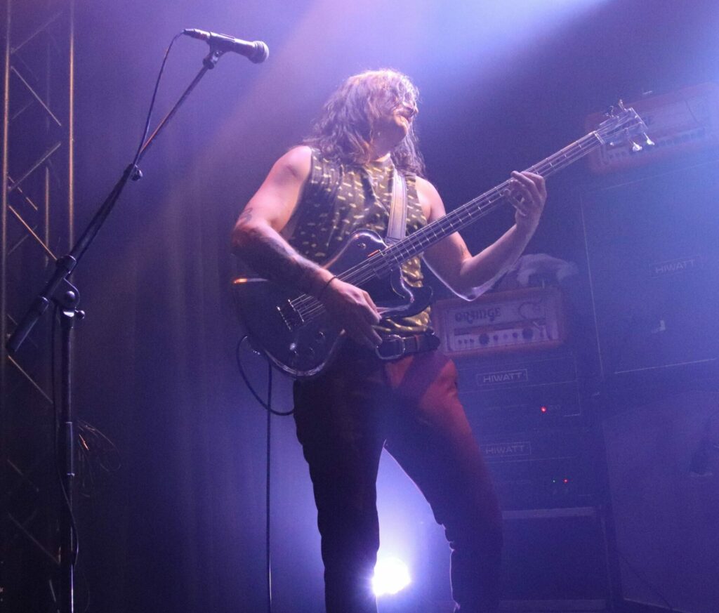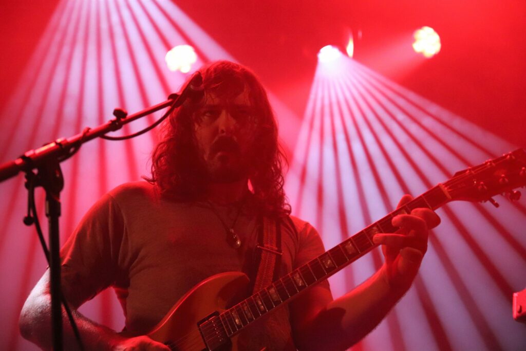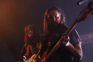 Sacri Monti trouve une salle un peu plus pleine qu’à l’ouverture de leurs camarades de planches. Les Américains malgré une maigre discographie vont avoir tout le loisir de prouver leur talent à de multiples reprises. L’ampleur déjà est tout autre, puisqu’avec deux guitaristes, un clavier et une section rythmique basse batterie le quintet a de quoi afficher une densité plus importante.