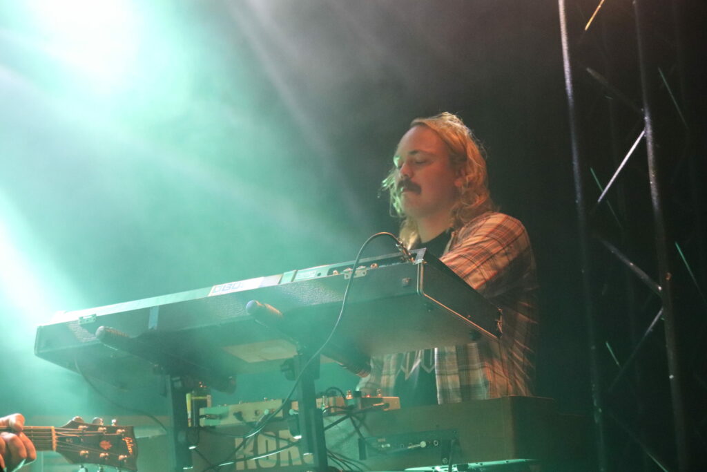 L’entrée en matière est un peu froide, la faute à la salle sans doute qui peine à se remplir. Mais rien ne saurait contrarier le trio finlandais Kaleidobolt. Il accuse le coup et encourage le public à se réveiller un peu. Petit à petit leur énergie fait son office et on sent l’atmosphère se réchauffer. Il faut dire que la musique sur vitaminée du groupe a de quoi inviter à la libération. Leur son psychédélique et foutraque part dans tous les sens et ne se satisfait d’aucun carcan. Les morceaux déroulés à la vitesse d’un éclair piochent dans la discographie du groupe et laissent une part non négligeable au nouvel album fraîchement sorti.